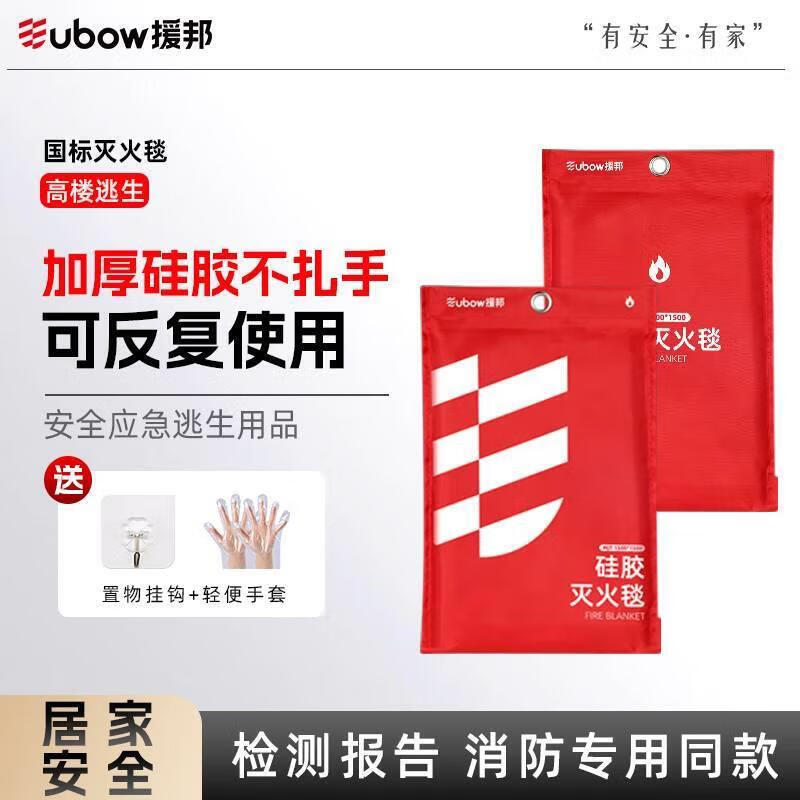 Fire extinguishing blanket, special fire blanket for fire protection, national standard kitchen household commercial fire escape coat, cloak, flame retardant blanket, 1*1 meter bag - free hook gloves, upgraded and thickened
