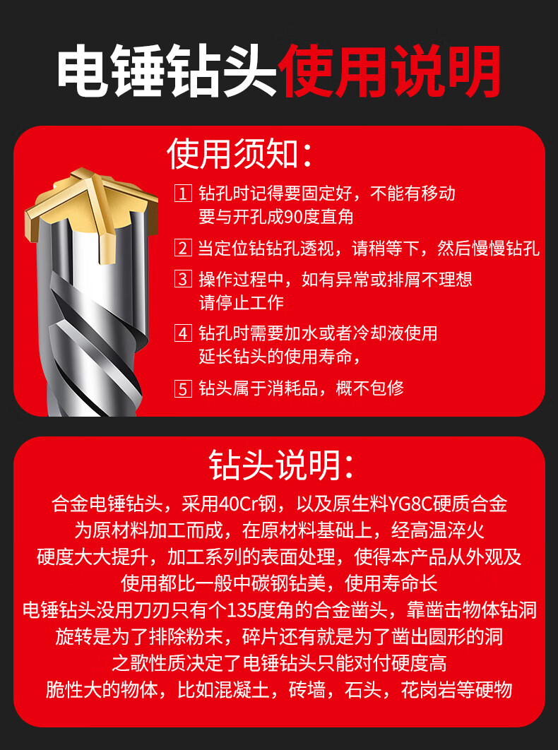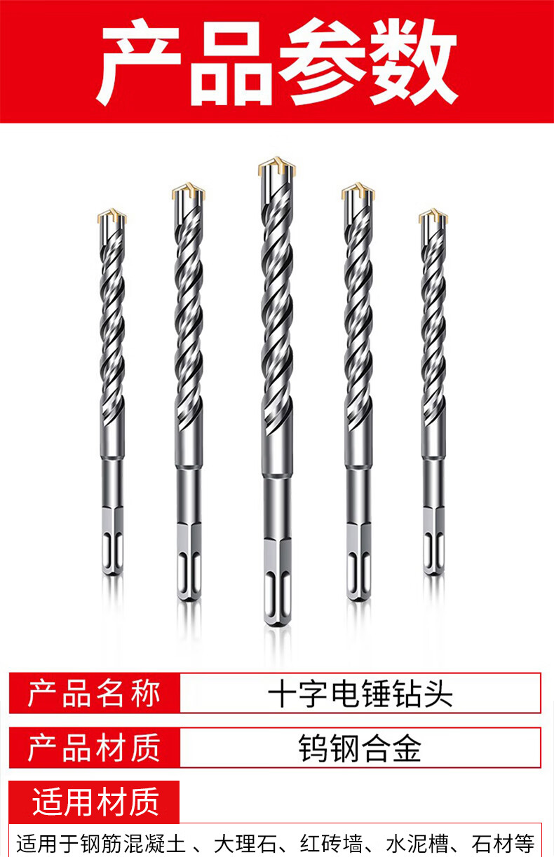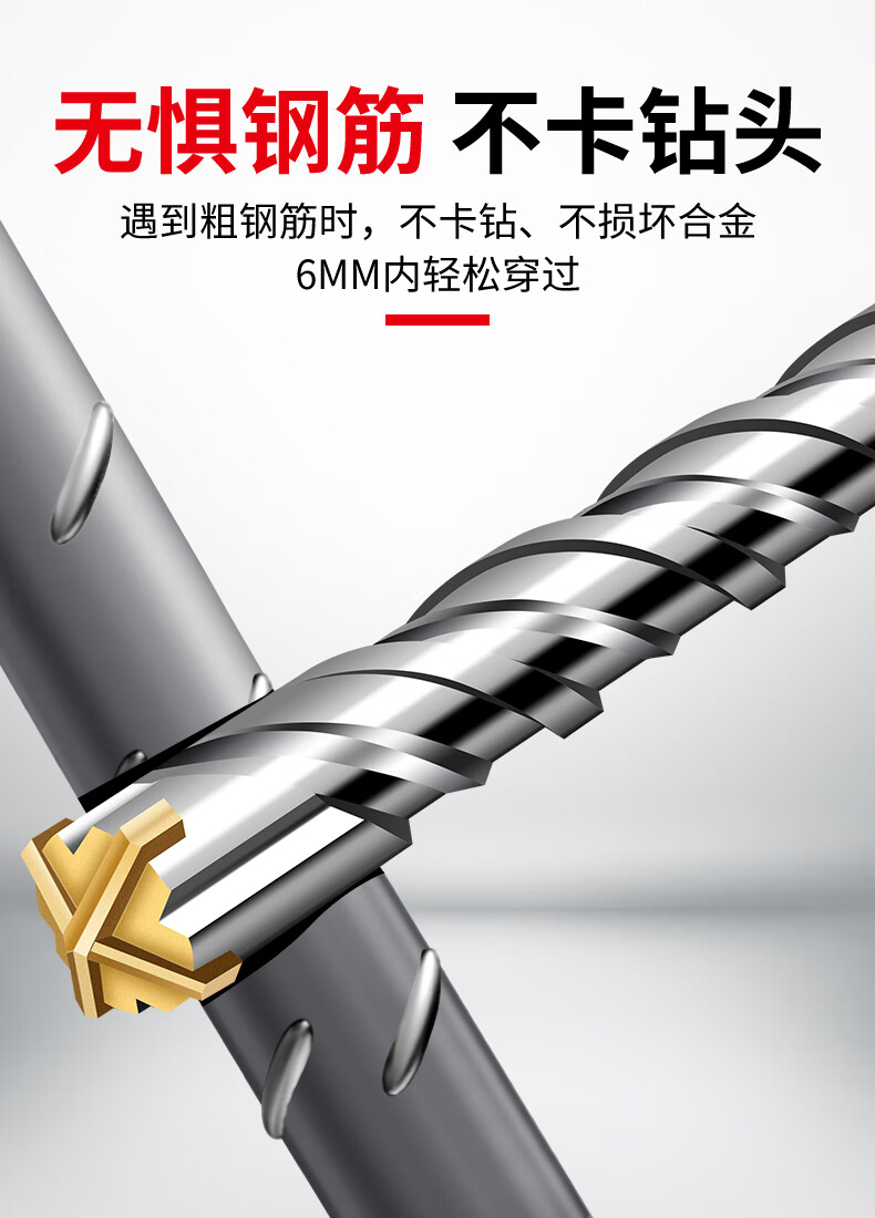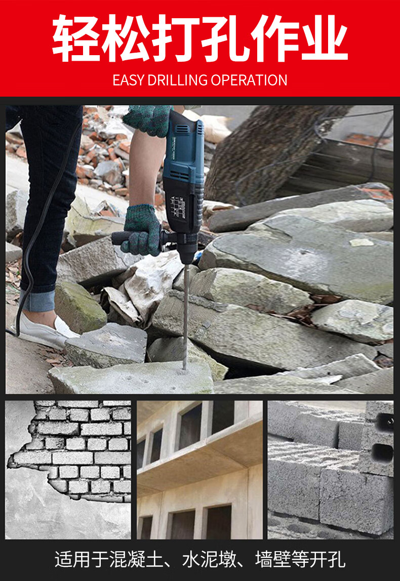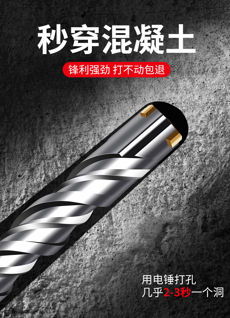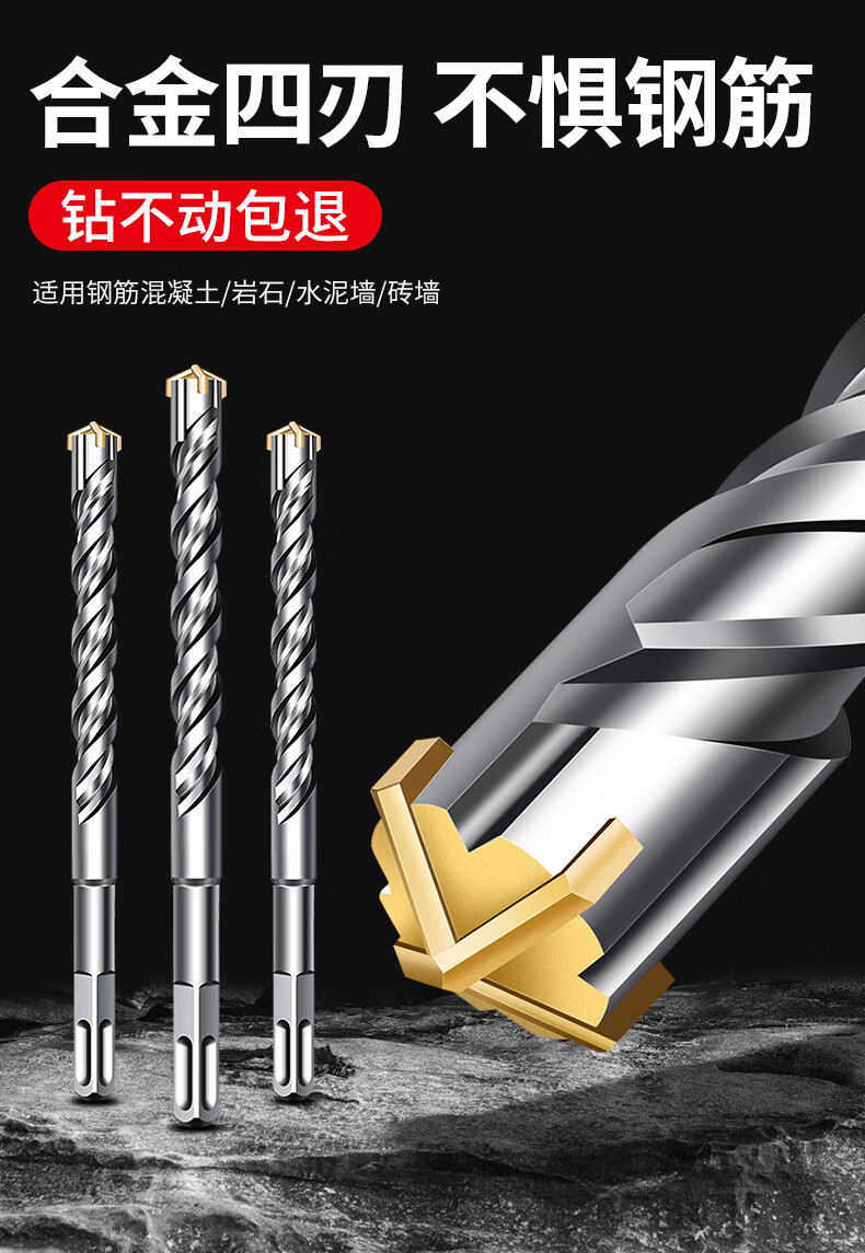 Baolian cross impact drill bit electric hammer concrete round handle through the wall square handle through the wall turn head four-pit alloy extended four-blade drill 14*350 (square handle)