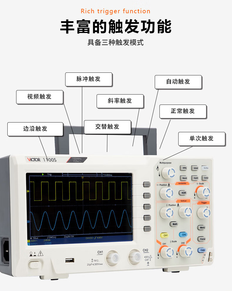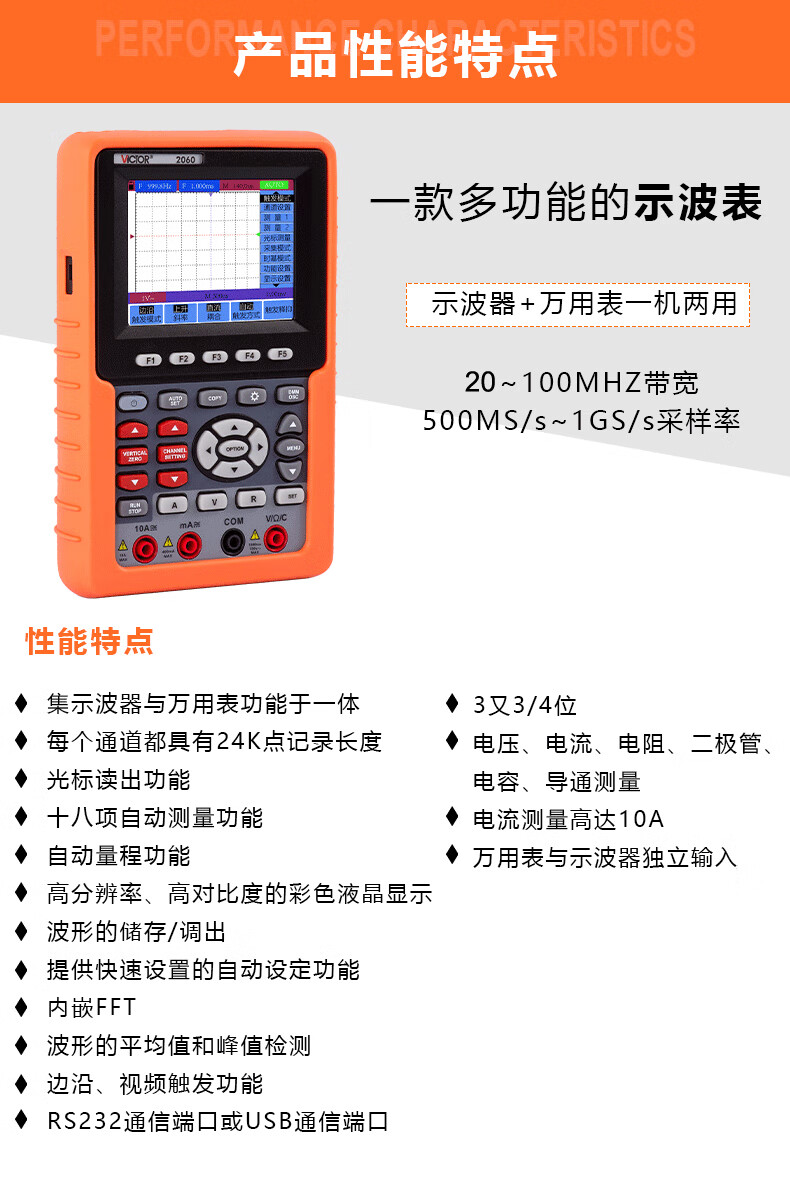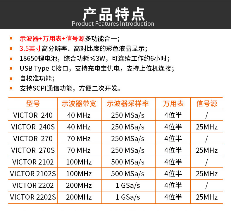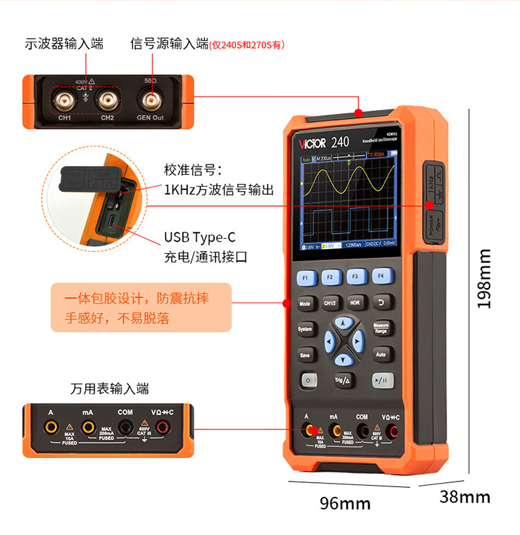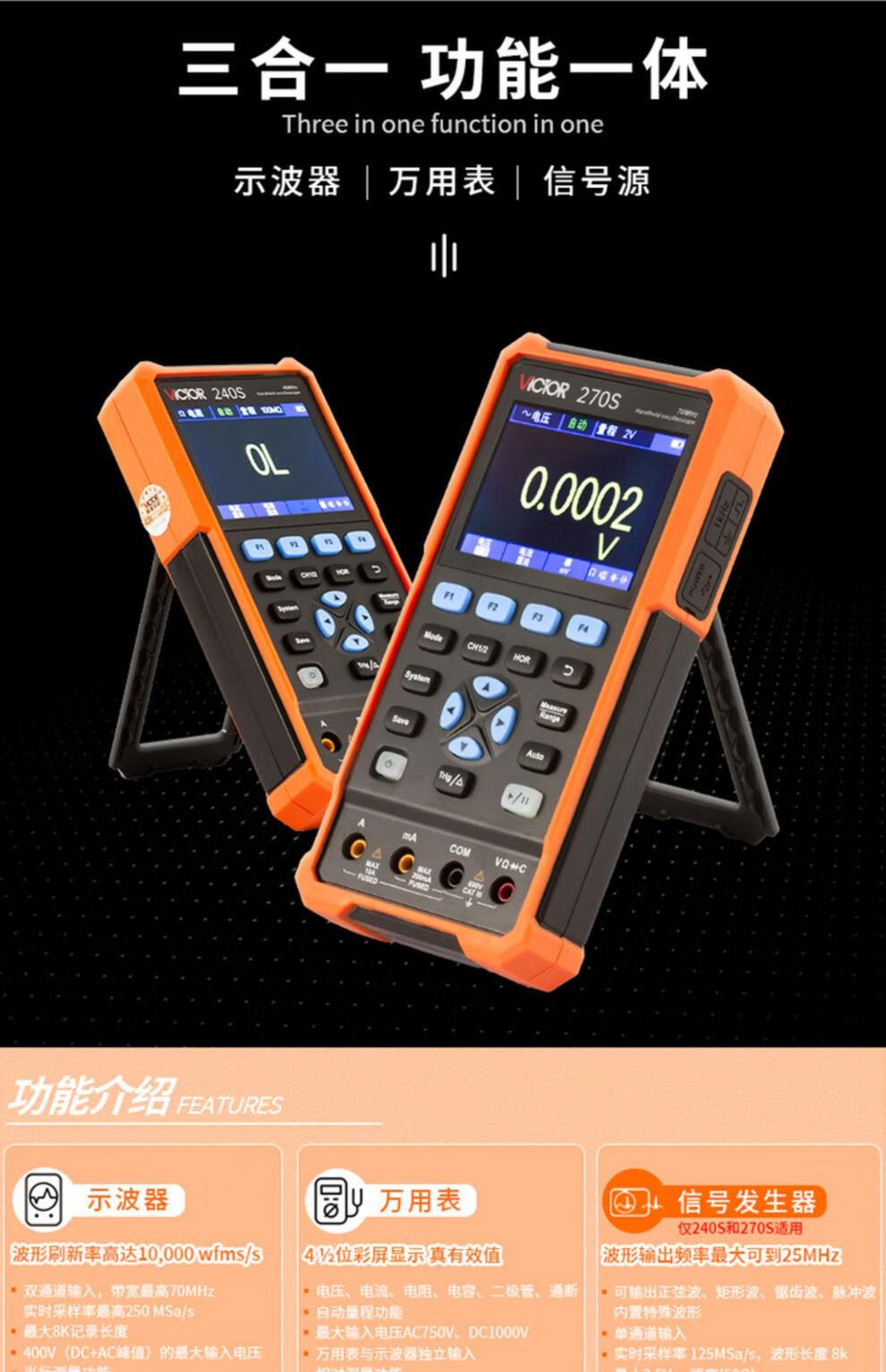 Victory Instruments Victory Oscilloscope VC240S/270 Handheld Auto Repair Instrument High Performance Digital Multi-Function Signal Source Multimeter VC152S Three-in-One 50MHz + Multimeter + Signal Source