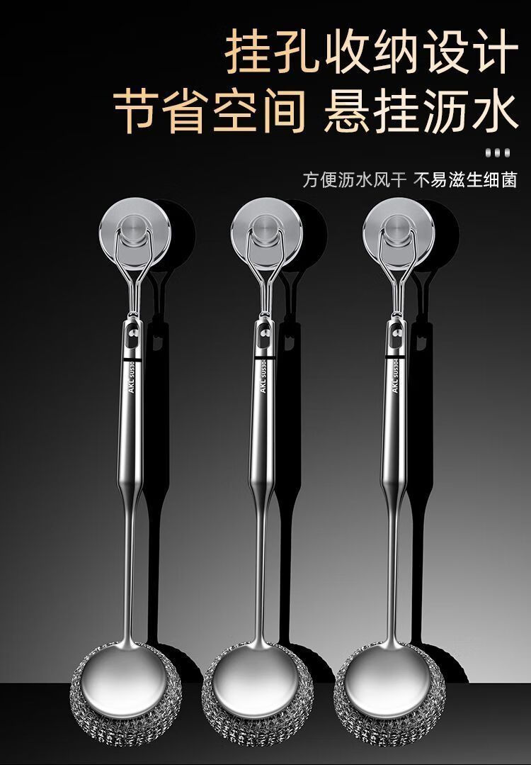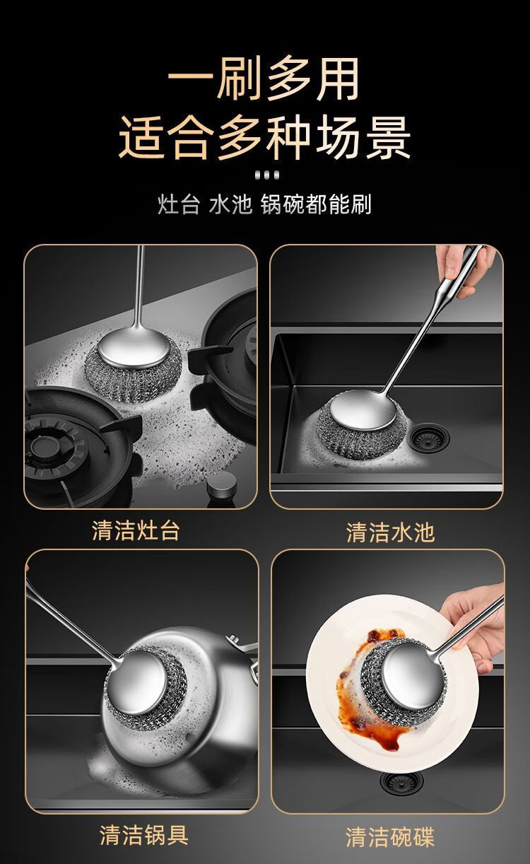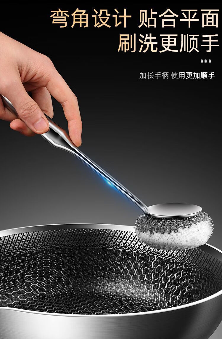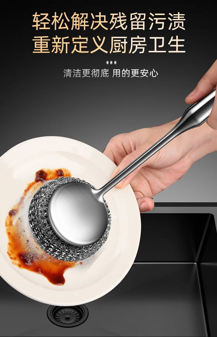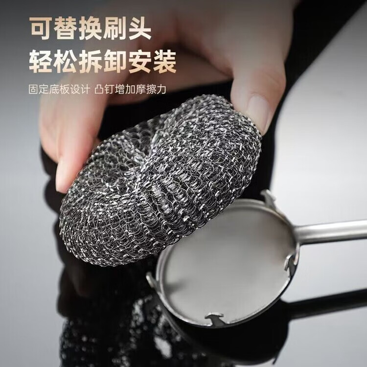 Steel wire ball does not shed wire 304 pot brush artifact 316 stainless steel long handle does not dirty hands kitchen decontamination pot and bowl cleaning ball brush extra thick 316 steel descaling and decontamination. Long handle pot brush + 2 brush heads*