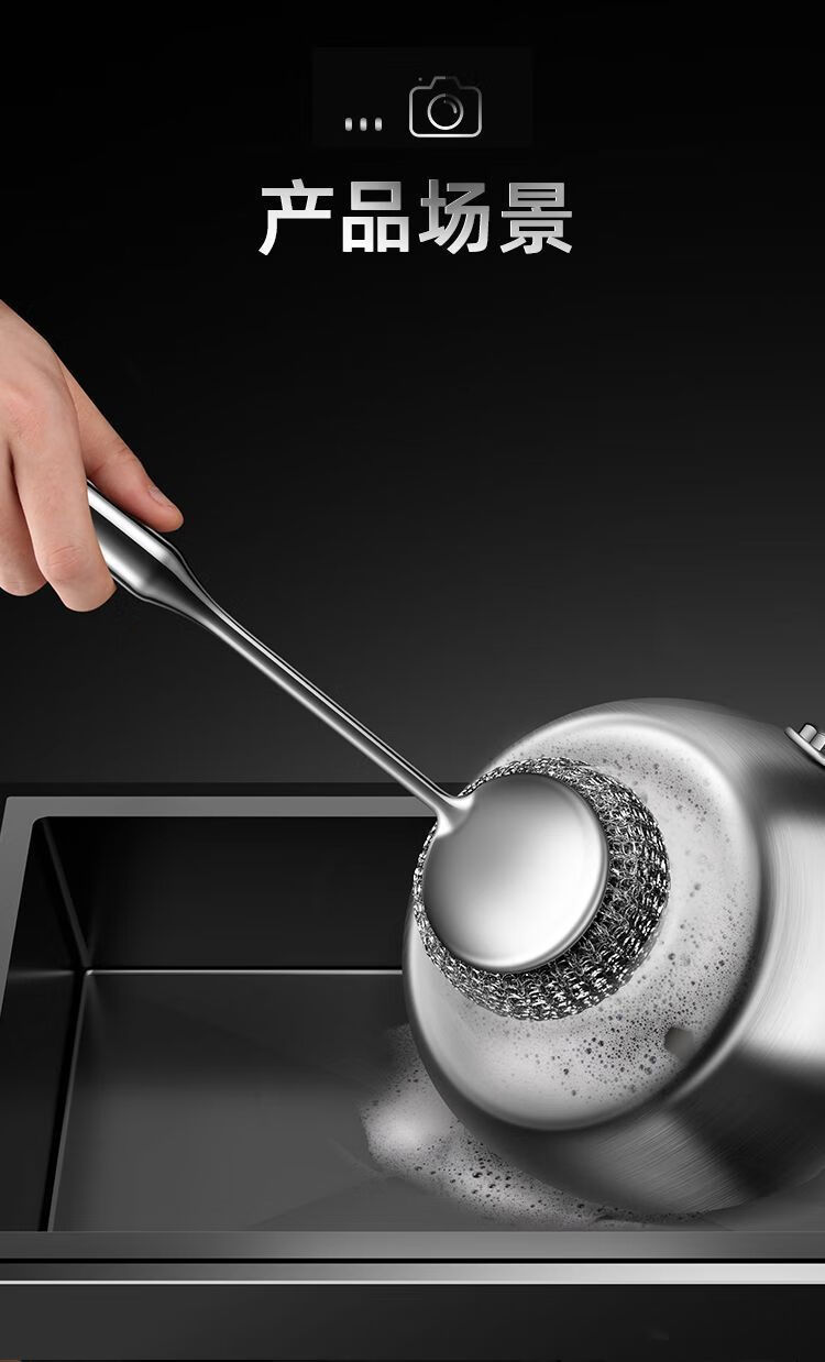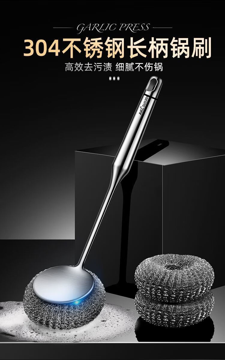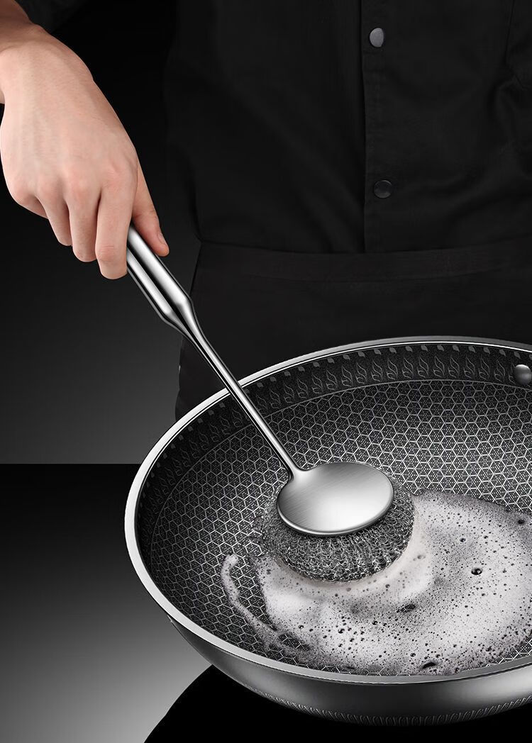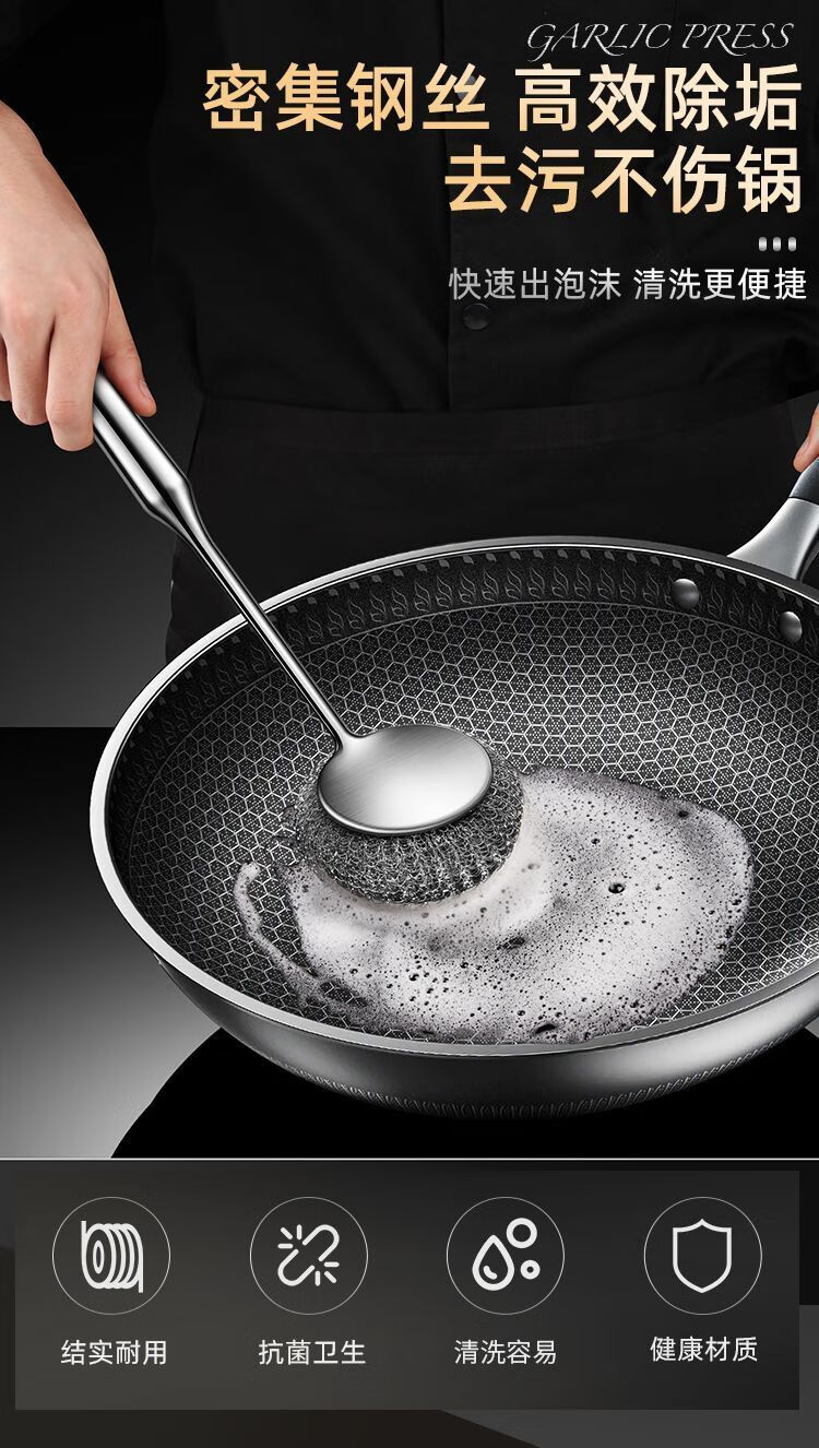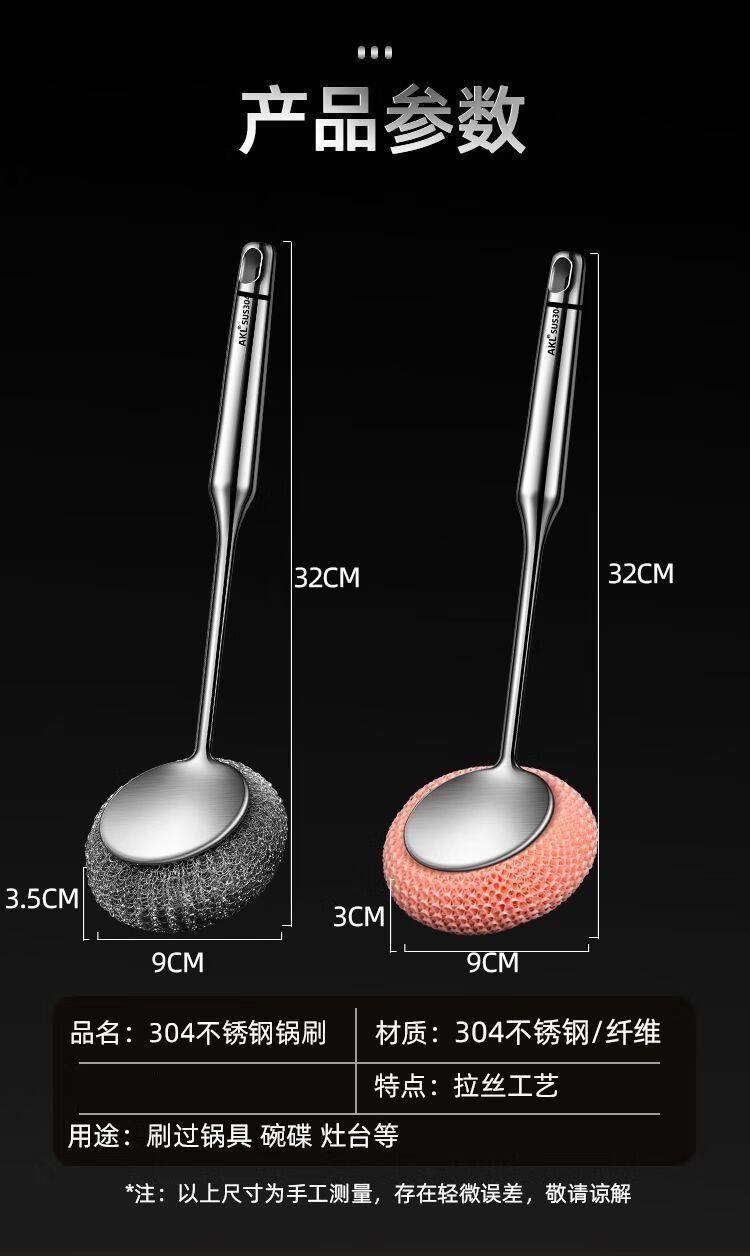 Steel wire ball does not shed wire 304 pot brush artifact 316 stainless steel long handle does not dirty hands kitchen decontamination pot and bowl cleaning ball brush extra thick 316 steel descaling and decontamination. Long handle pot brush + 2 brush heads*
