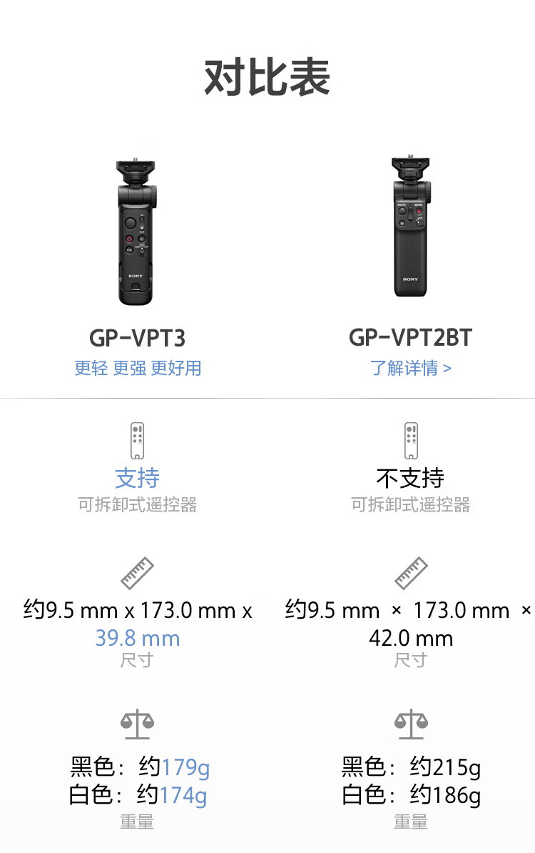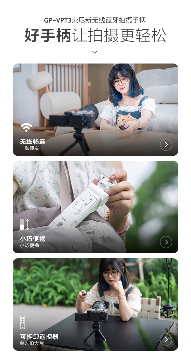 Sony (SONY) handle black card mirrorless camera Vlog video shooting handle GP-VPT3 white new wireless Bluetooth shooting handle official standard
