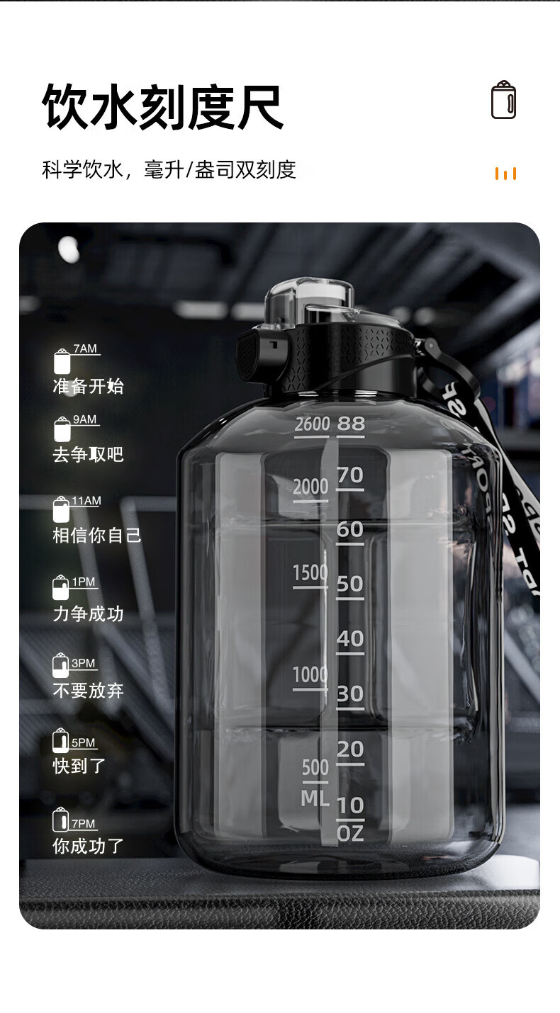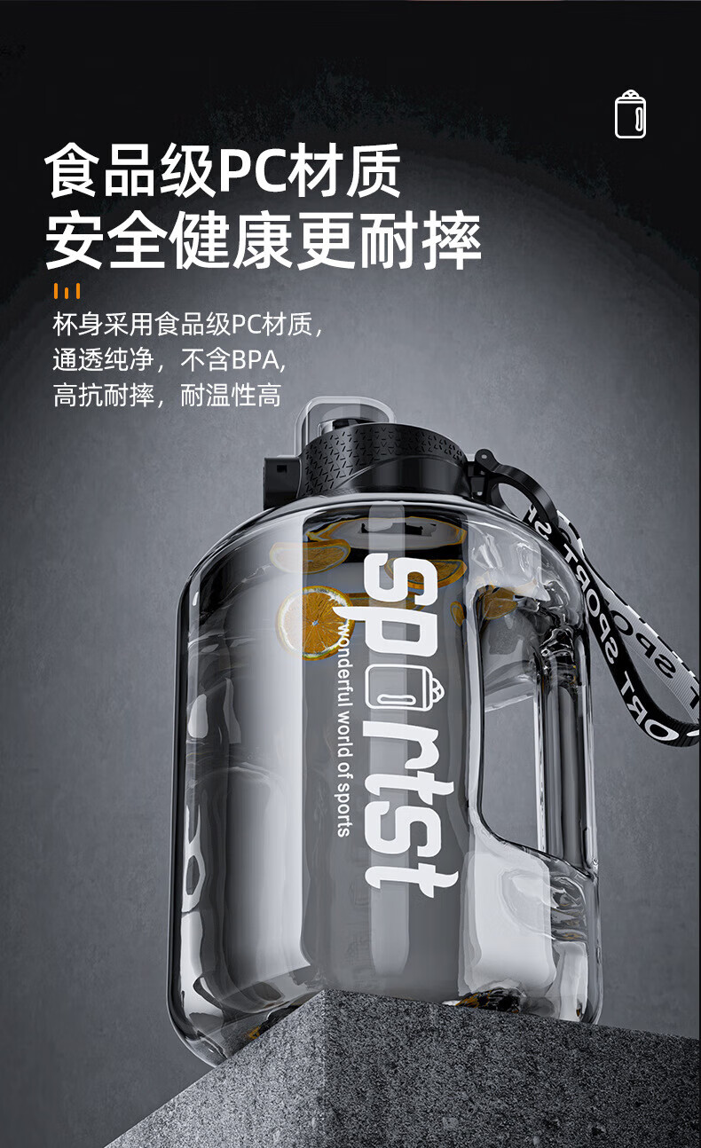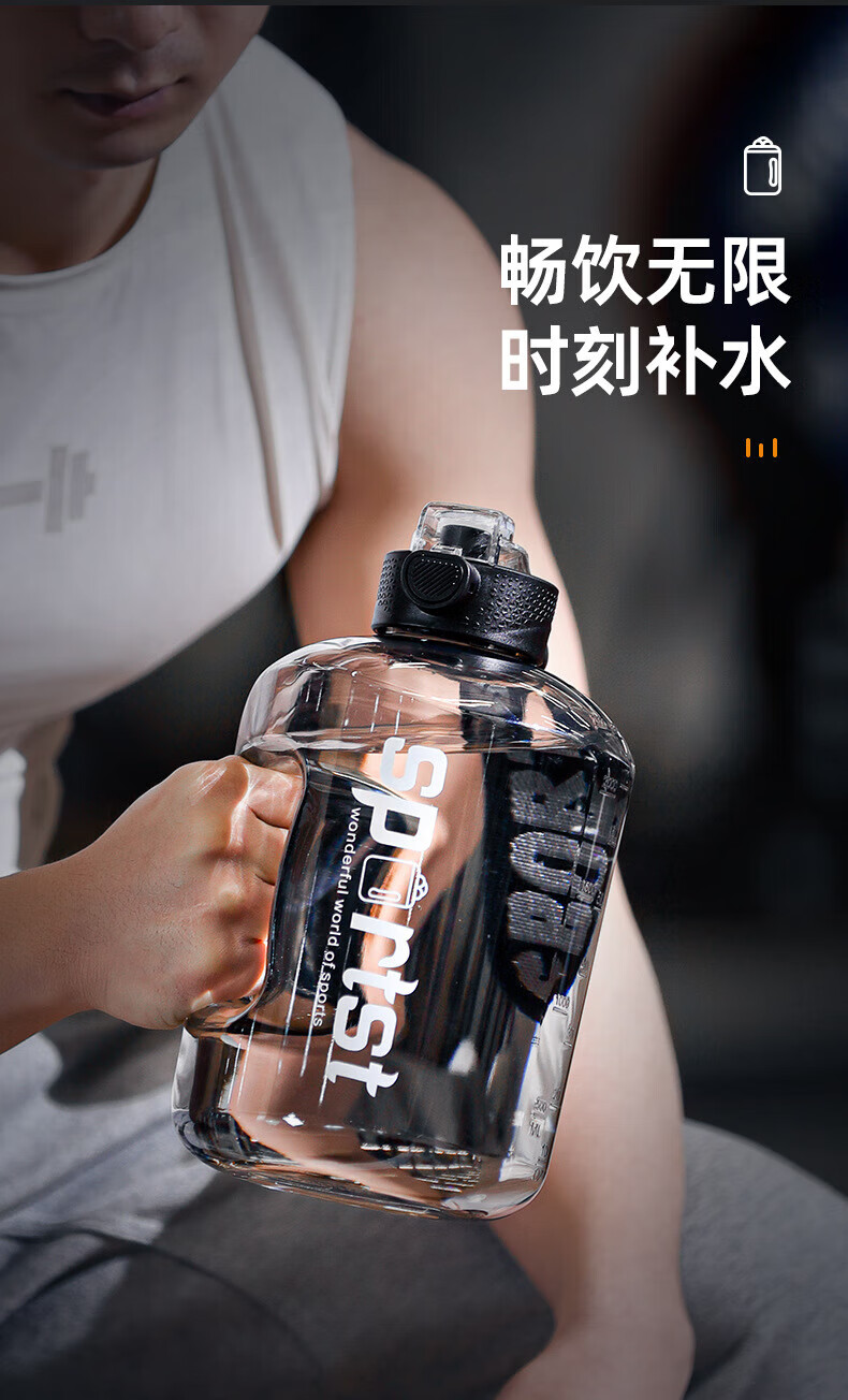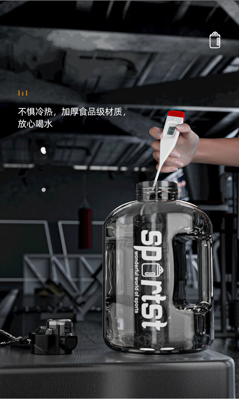 Jingdie Ton Bucket Fitness Sports Water Cup Large Capacity Kettle Cup Big Belly High Temperature Resistant Men's Space Dayton 2000ml ST Black Straw + Leather Case 4L 4000ml