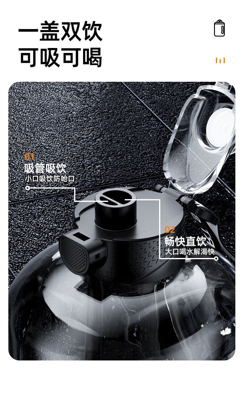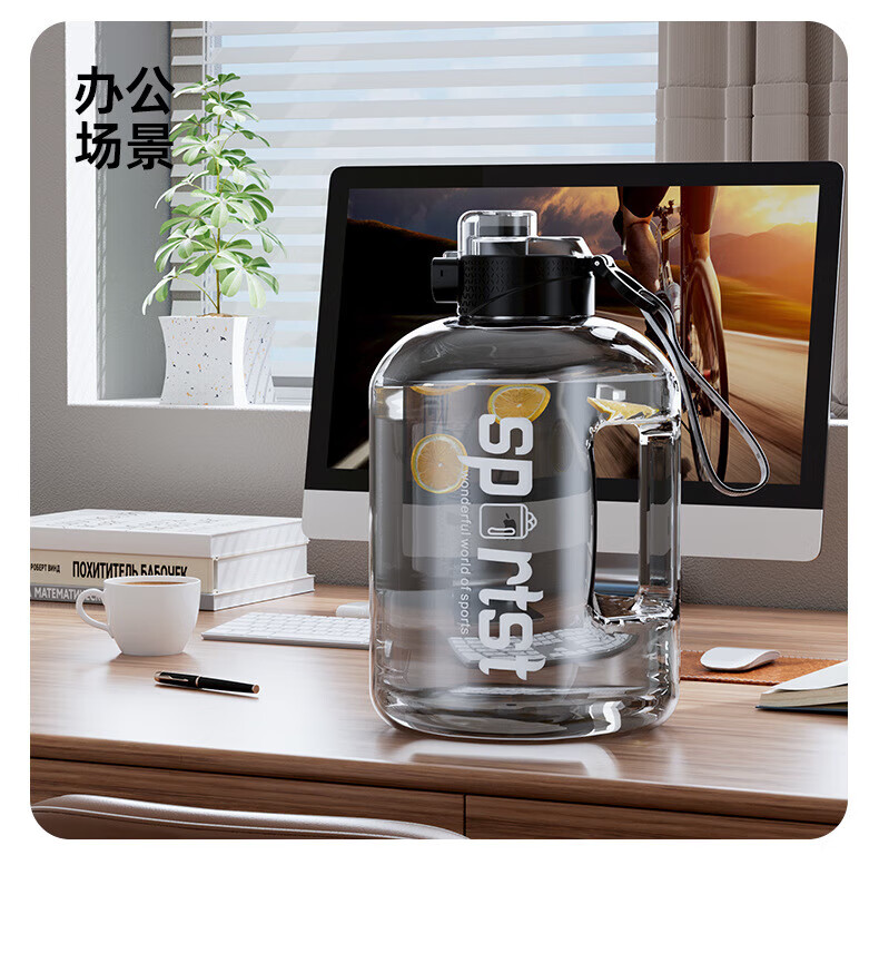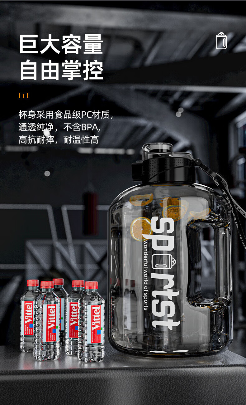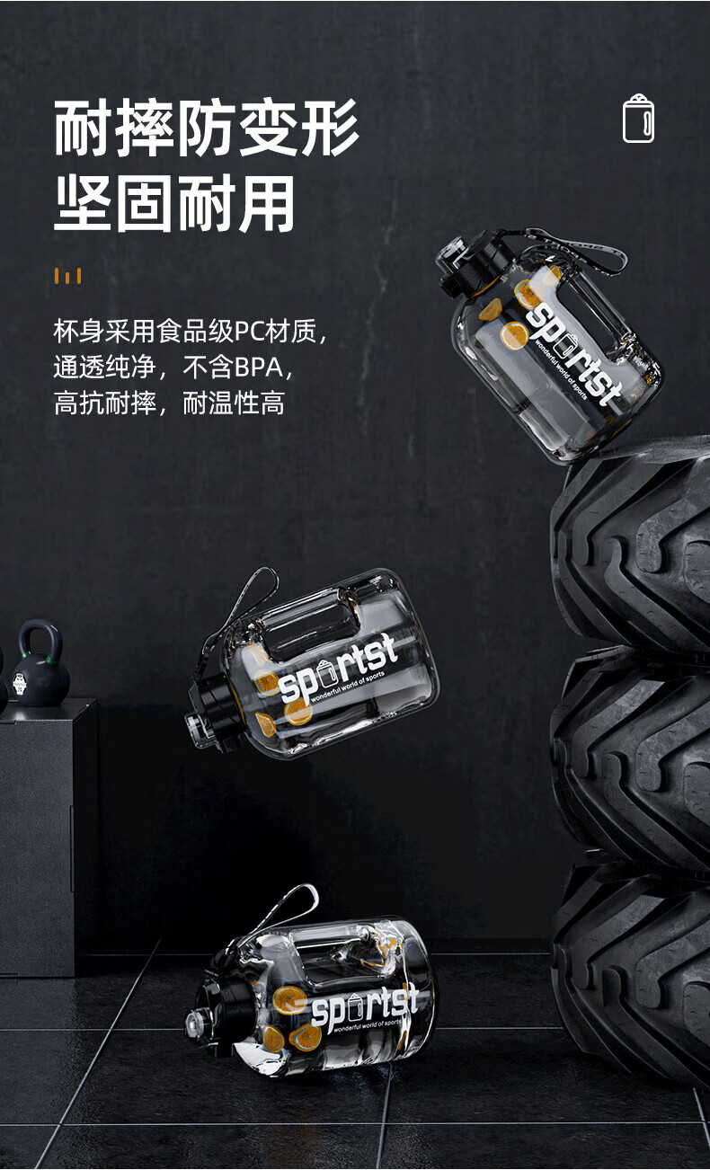 Jingdie Ton Bucket Fitness Sports Water Cup Large Capacity Kettle Cup Big Belly High Temperature Resistant Men's Space Dayton 2000ml ST Black Straw + Leather Case 4L 4000ml