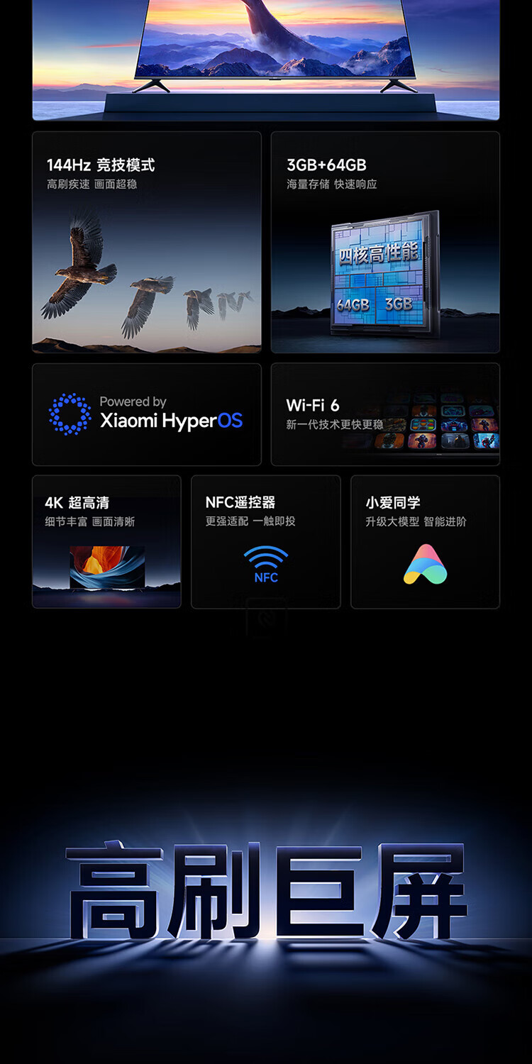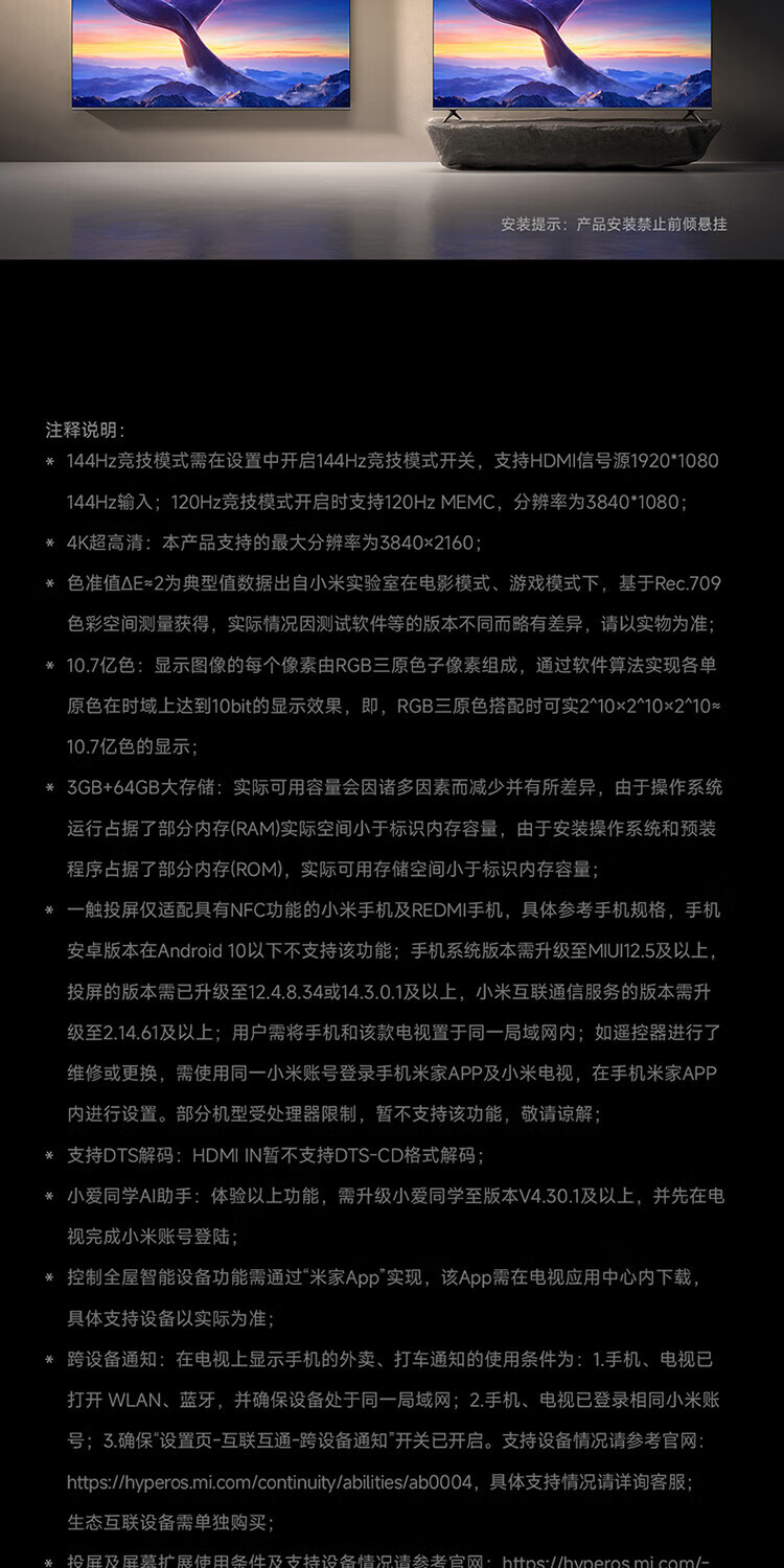Xiaomi TV 85-inch 144Hz high brush WiFi6 ThePaper OS REDMI MAX85 2025 model/ESPRO90 home giant screen theater office conference large-screen TV 85-inch worry-free package installation MAX85 TV + door-to-door package installation