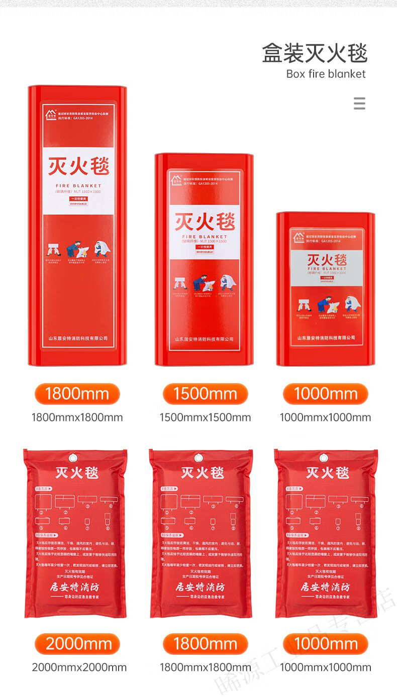 Juant fire-fighting special fire blanket household fire-fighting certified fiberglass commercial kitchen home set escape fire blanket 1 meter * 1 meter (soft bag)