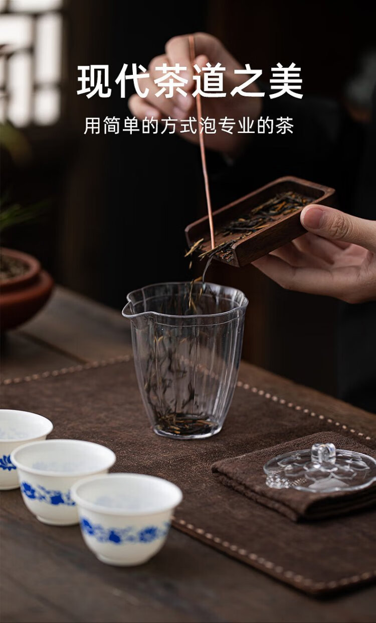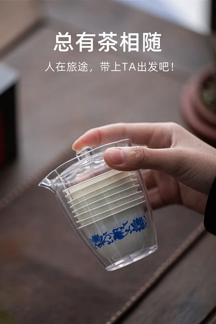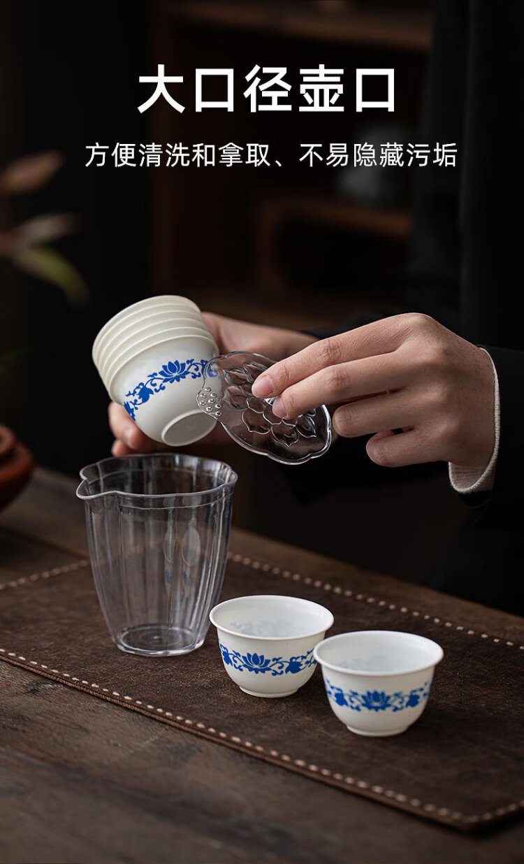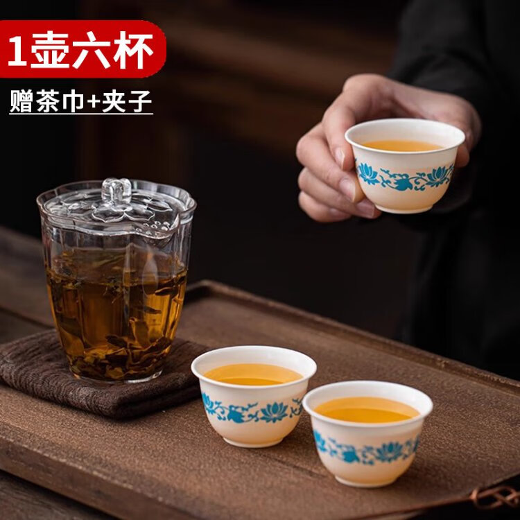 Yu Boyan 6 blue and white disposable kung fu tea cups 60ml tea cup, personal small tea cup with storage cup 6 blue and white tea cups + transparent pot + tea towel + clip