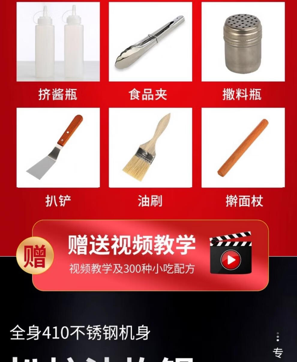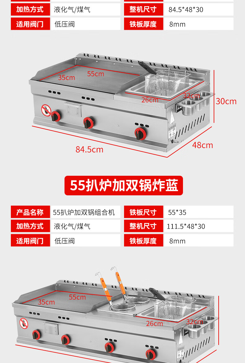Teppanyaki merchants set up stalls with hand-caught cake machines, Teppanyaki fryers, all-in-one griddles, gas fryers, and cold noodle machines, 55 thick griddles + single pots + frying baskets ()