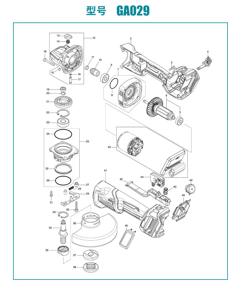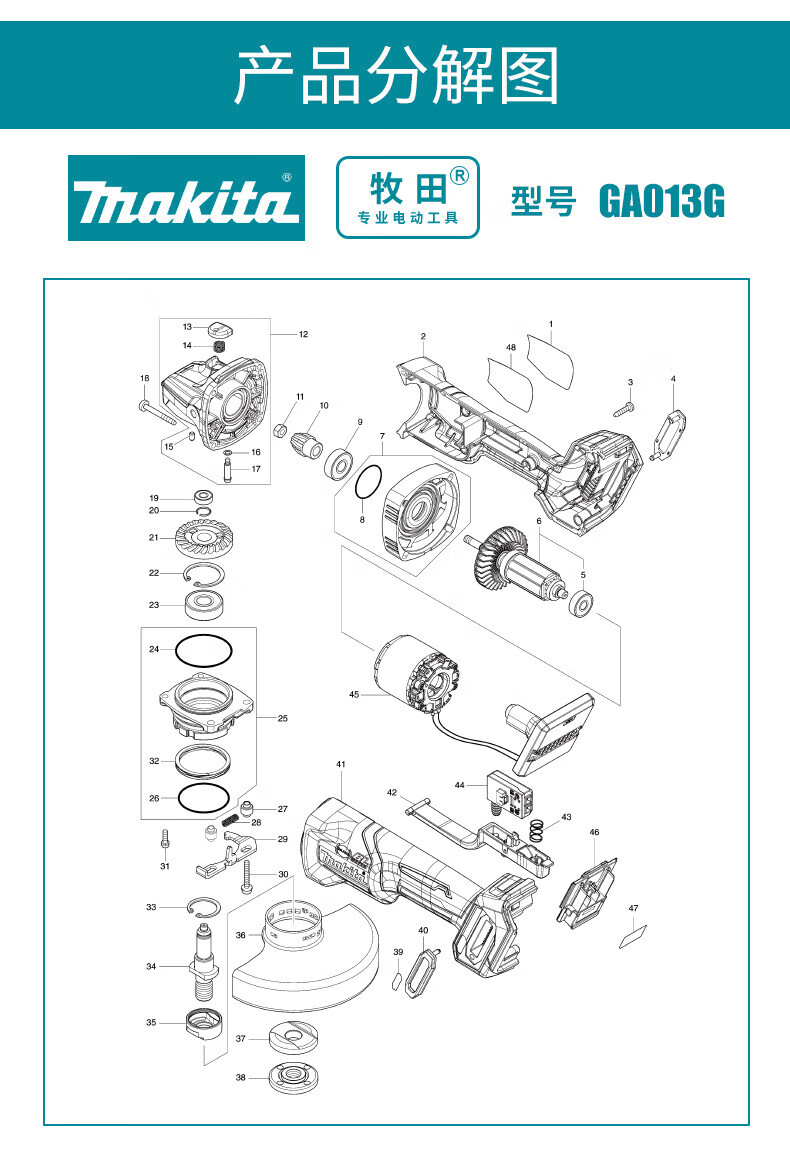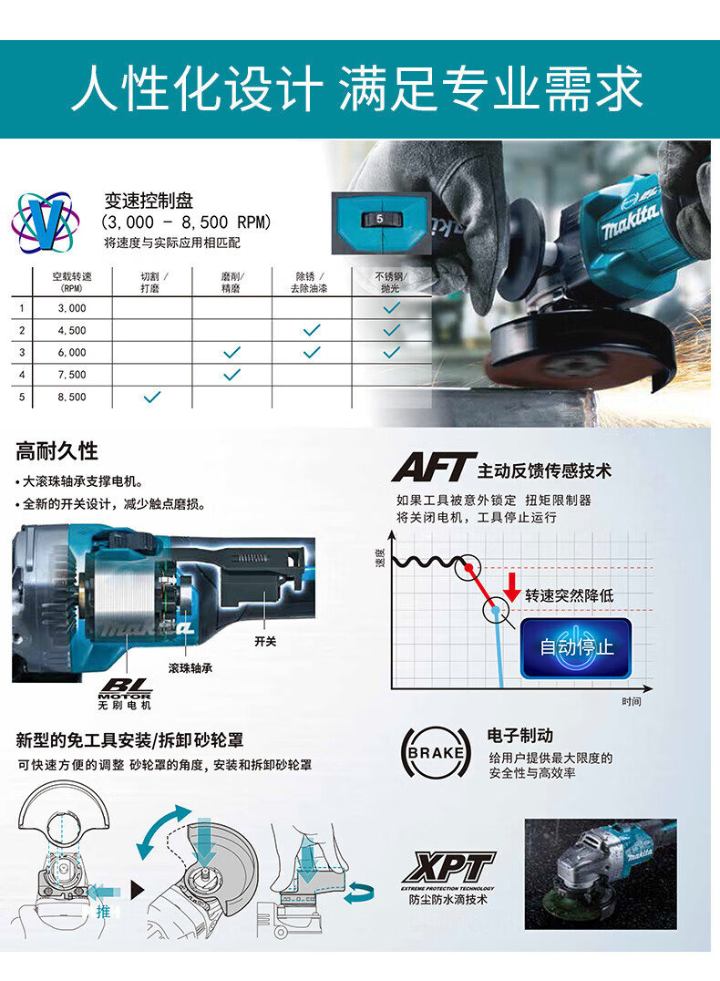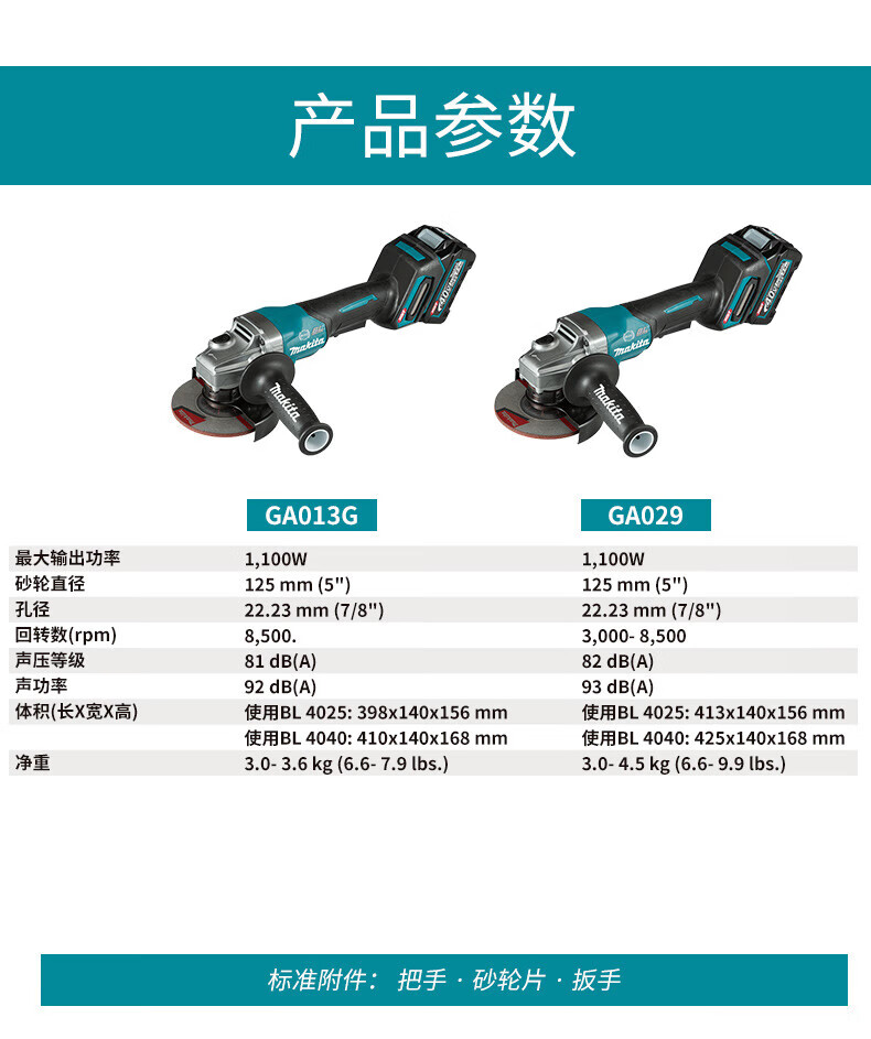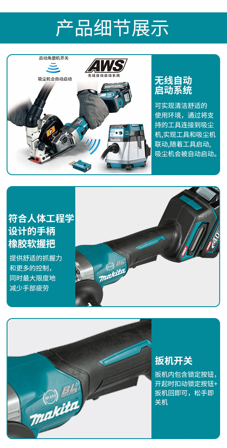 Makita GA013G GA029G angle grinder 40V lithium battery brushless angle grinder trigger type open GA013G 40V2.0 one battery and one charge