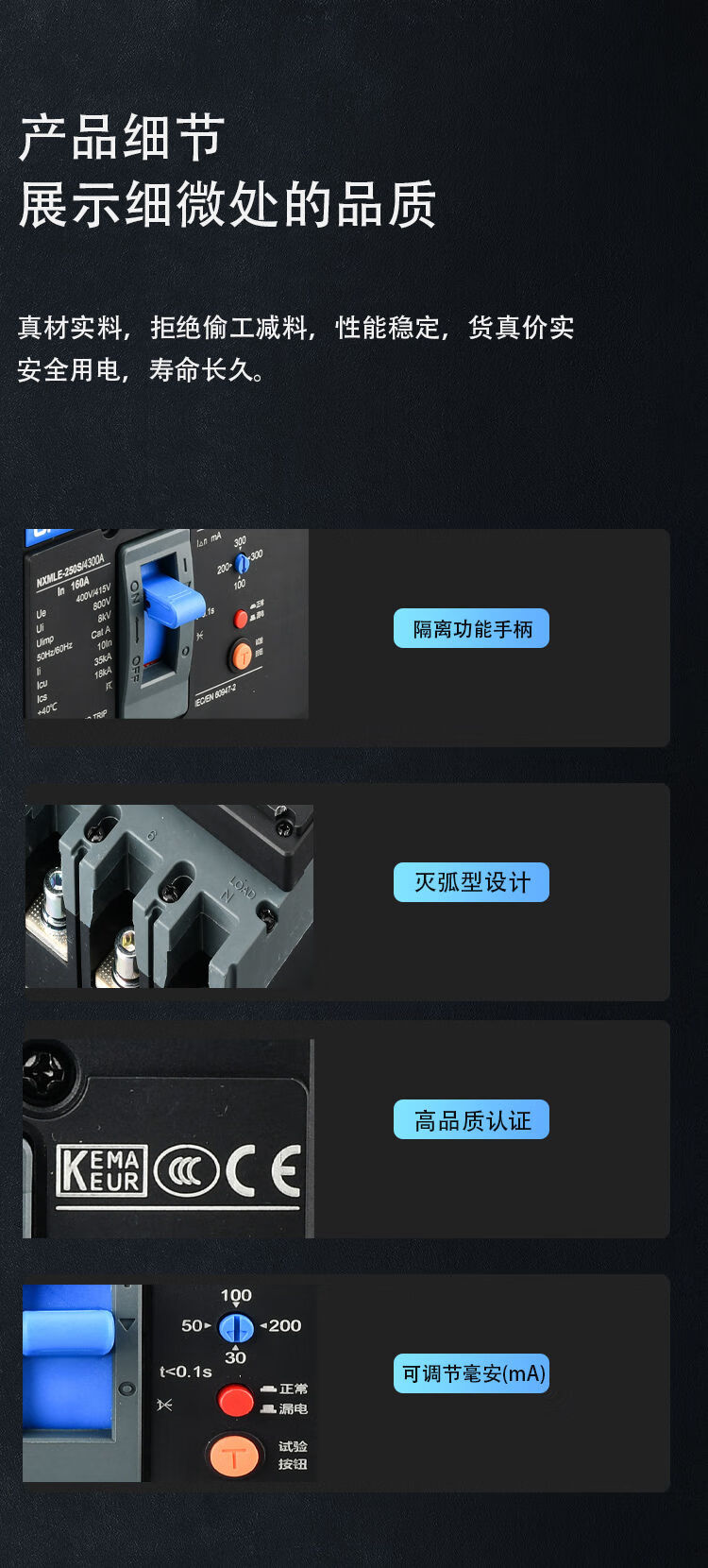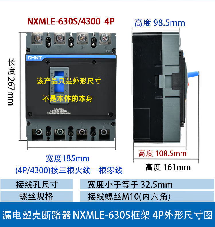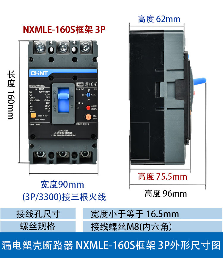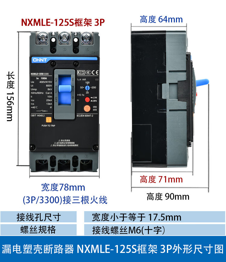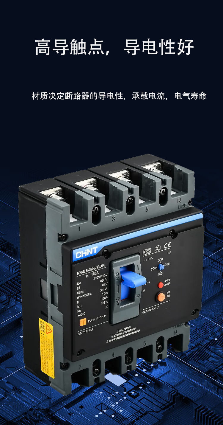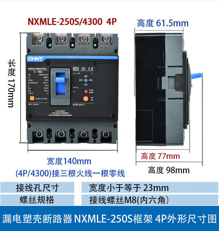 Chint leakage circuit breaker three-phase four-wire leakage NXMLE-125S/250S/400S electric protector leakage protection 400A 3P