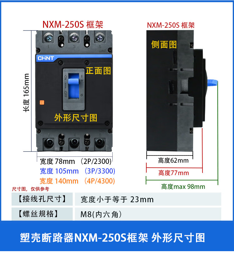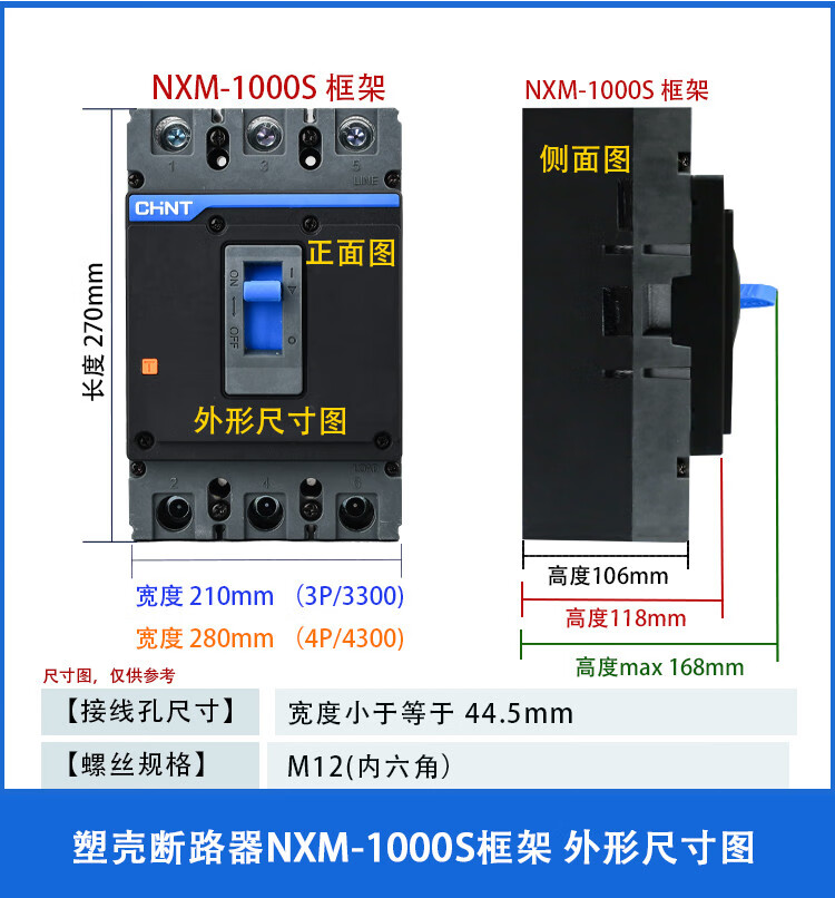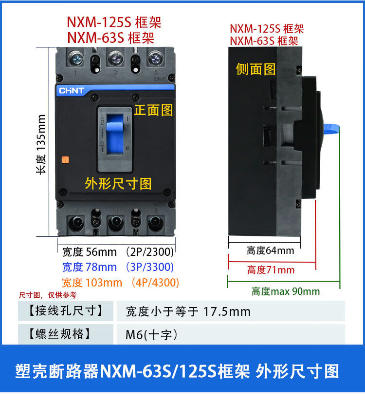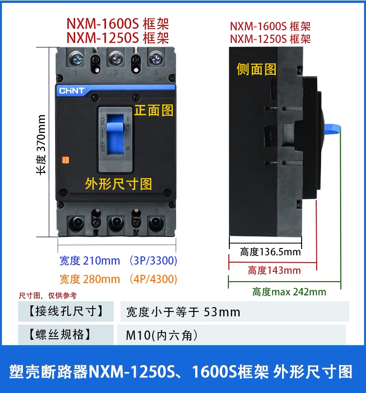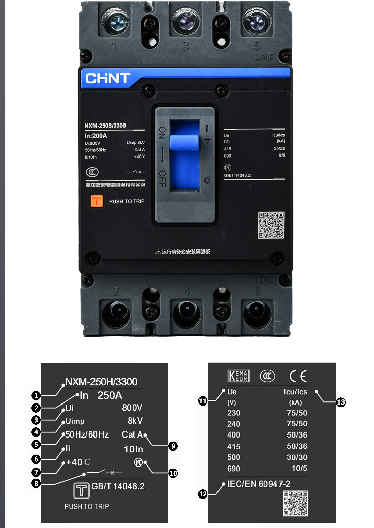 Chint NXM-125S 250S 4300B 3P 4P molded case circuit breaker NXM circuit breaker 400S Kunlun 630S 400A 3P