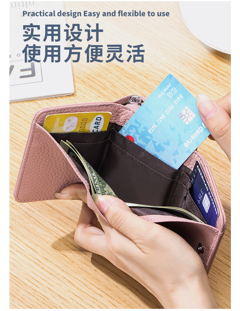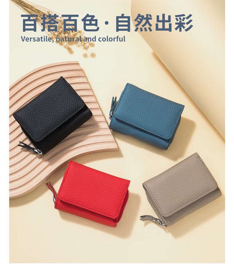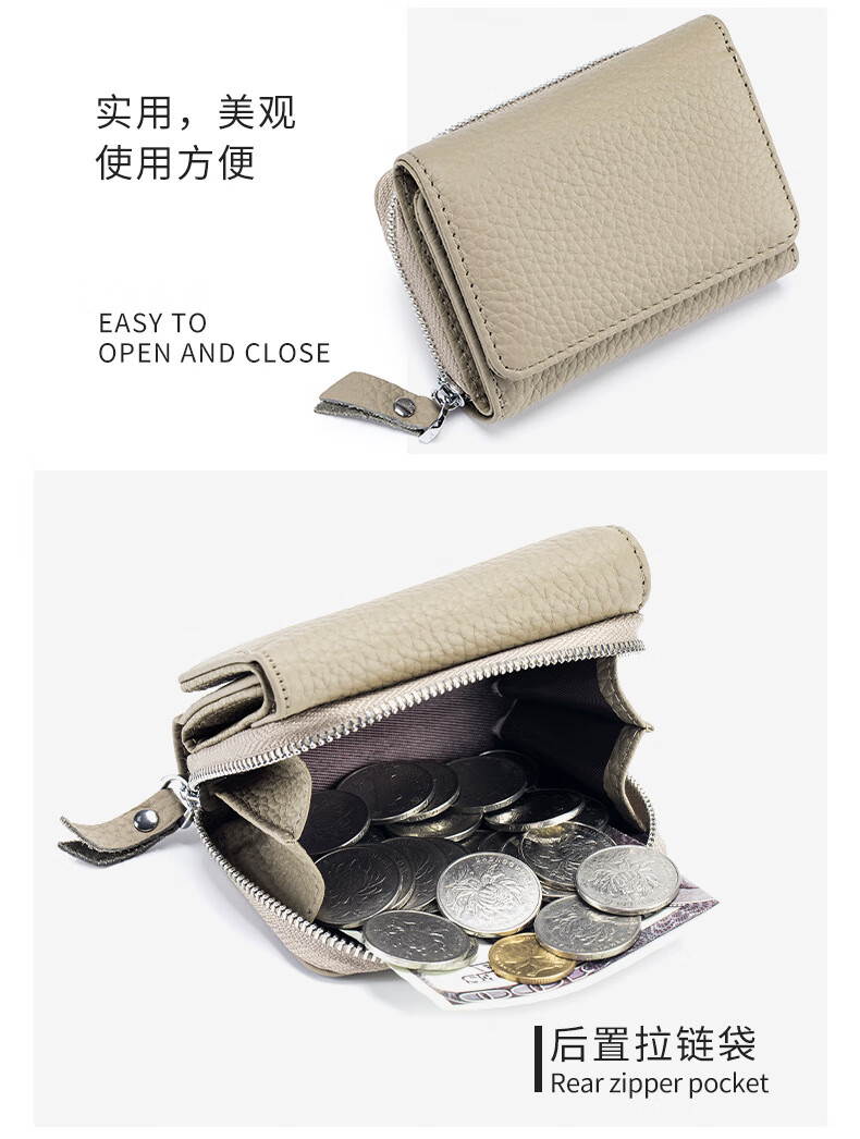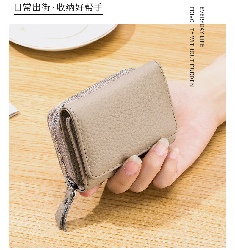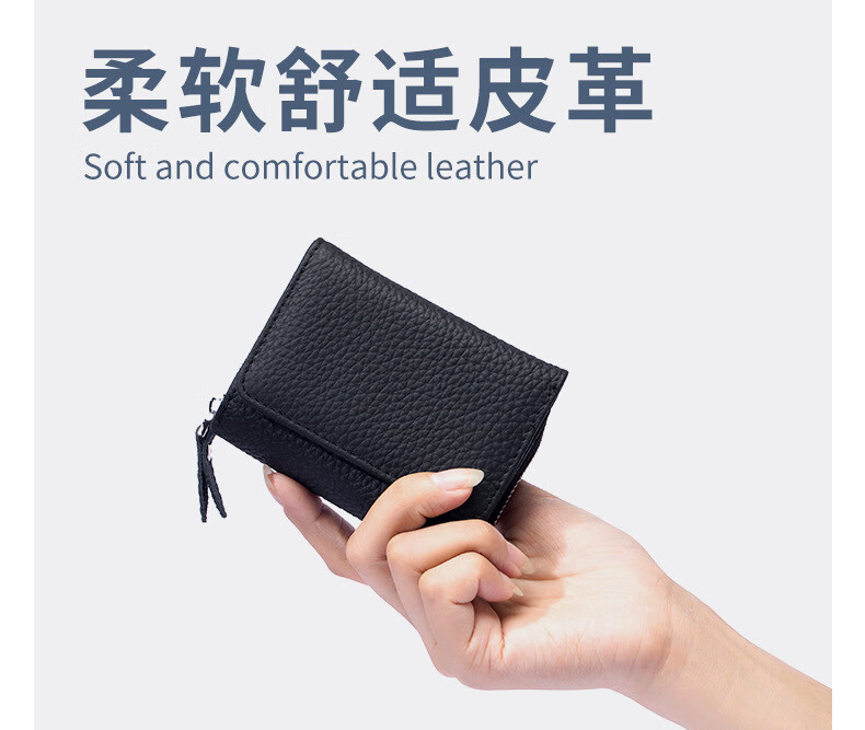 VANLEMN Danish anti-theft brushed cowhide wallet card bag short genuine leather coin purse women's shielded RFID multifunctional storage bag black