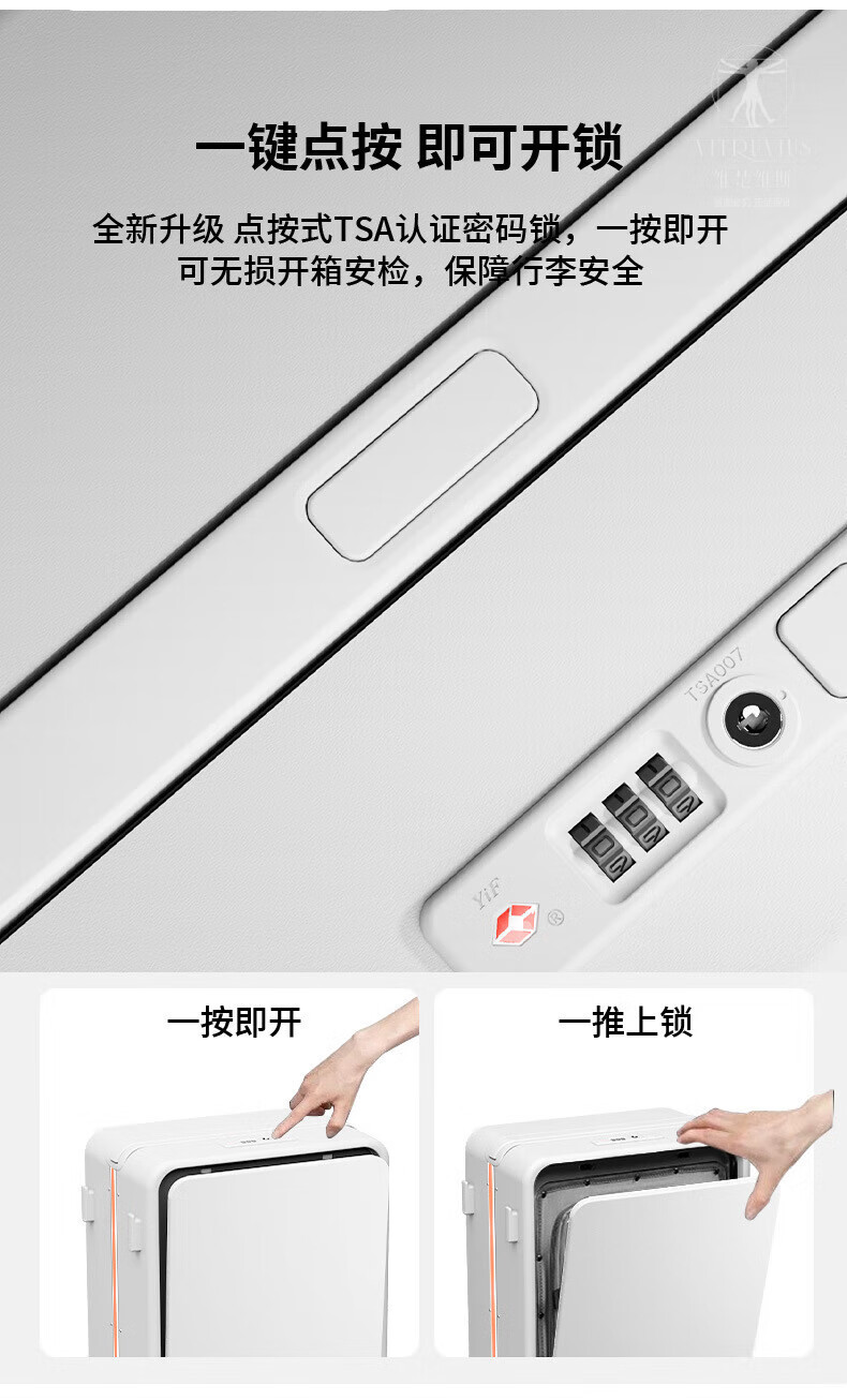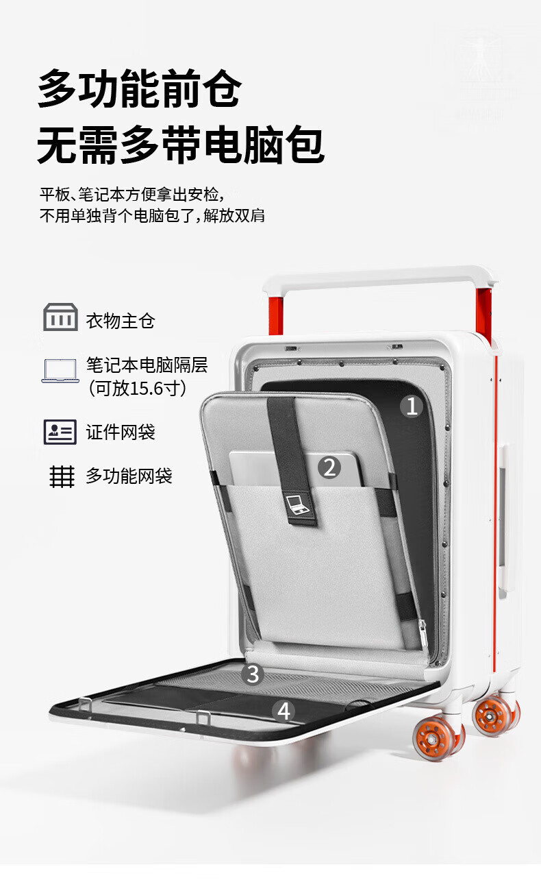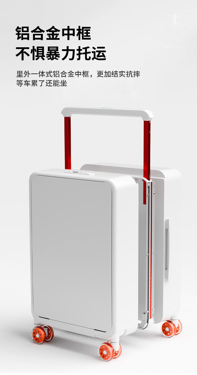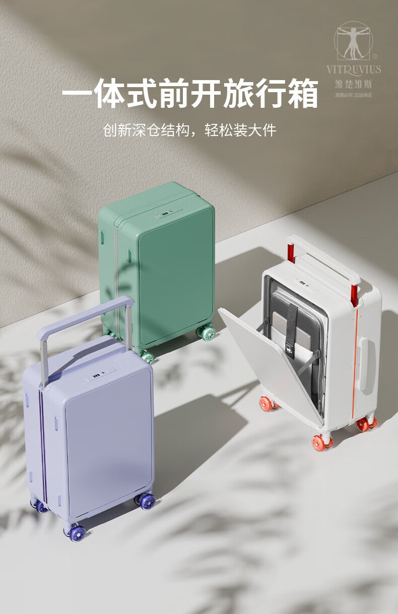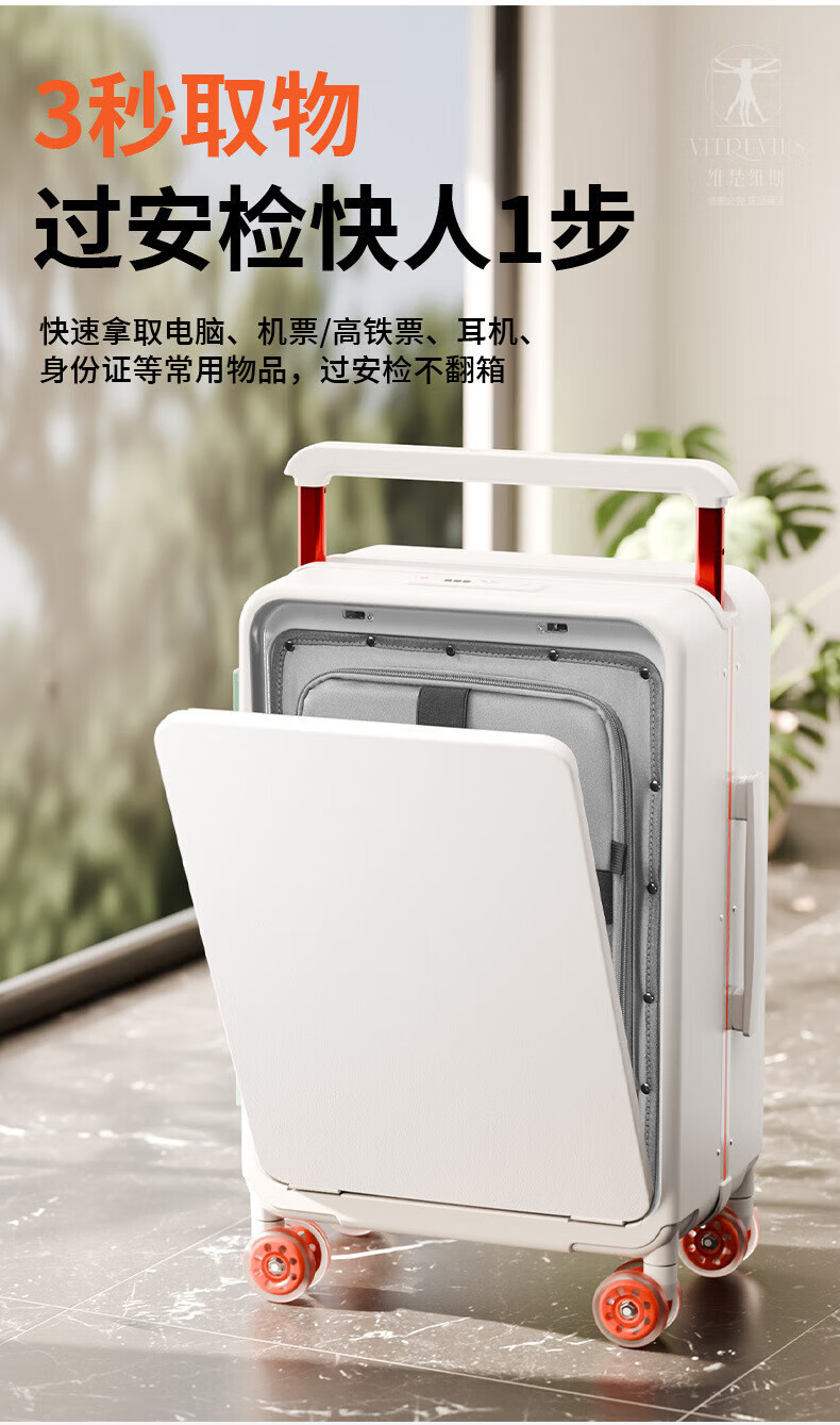 VITRUVIUS suitcase front opening short-distance travel suitcase wide trolley business boarding trolley case minimalist style password box mineral gray 24 inches required to be checked 1 9