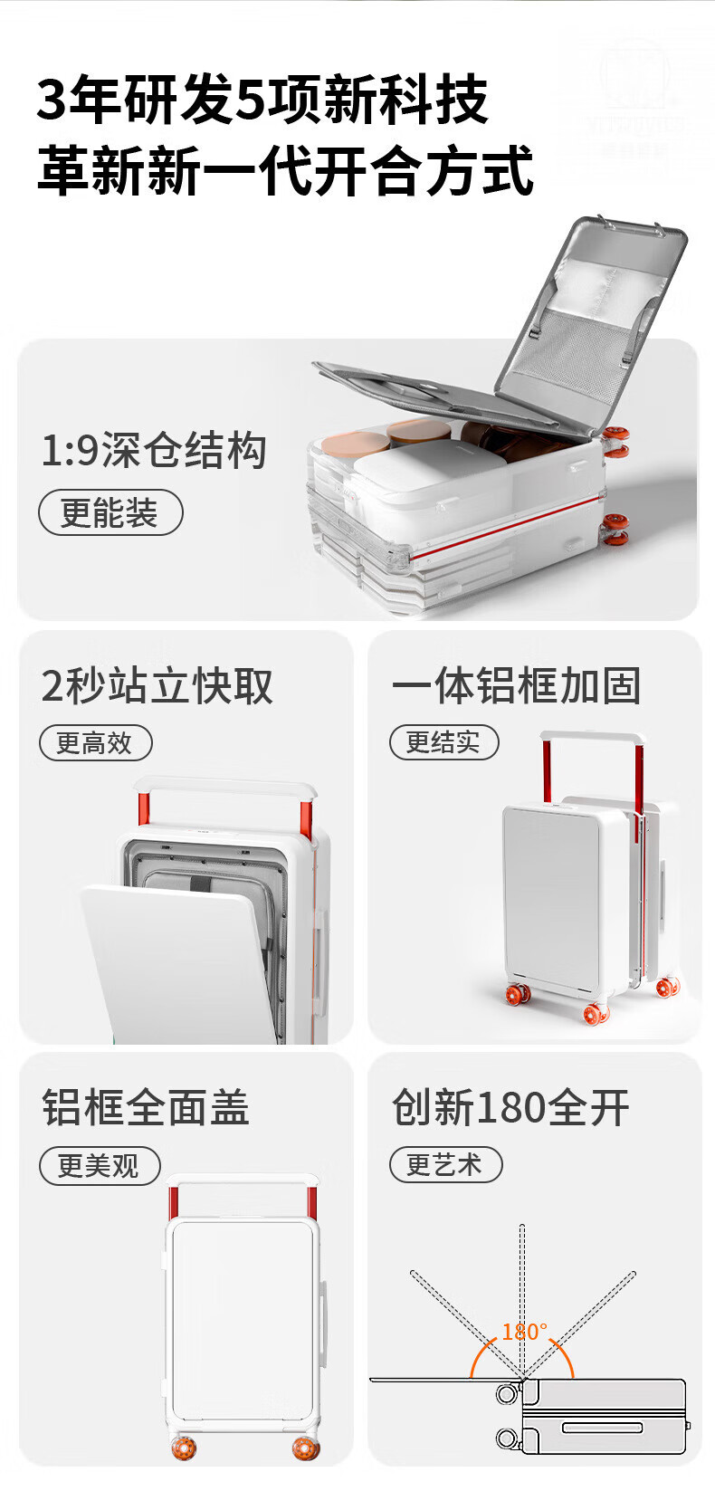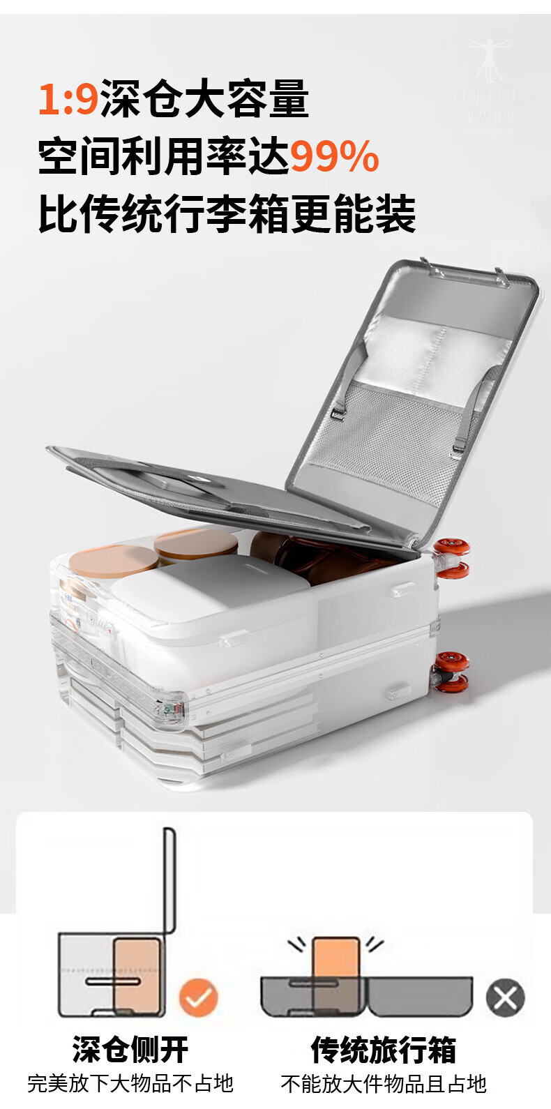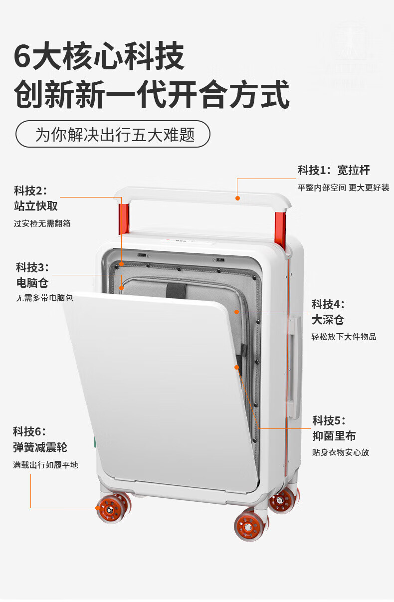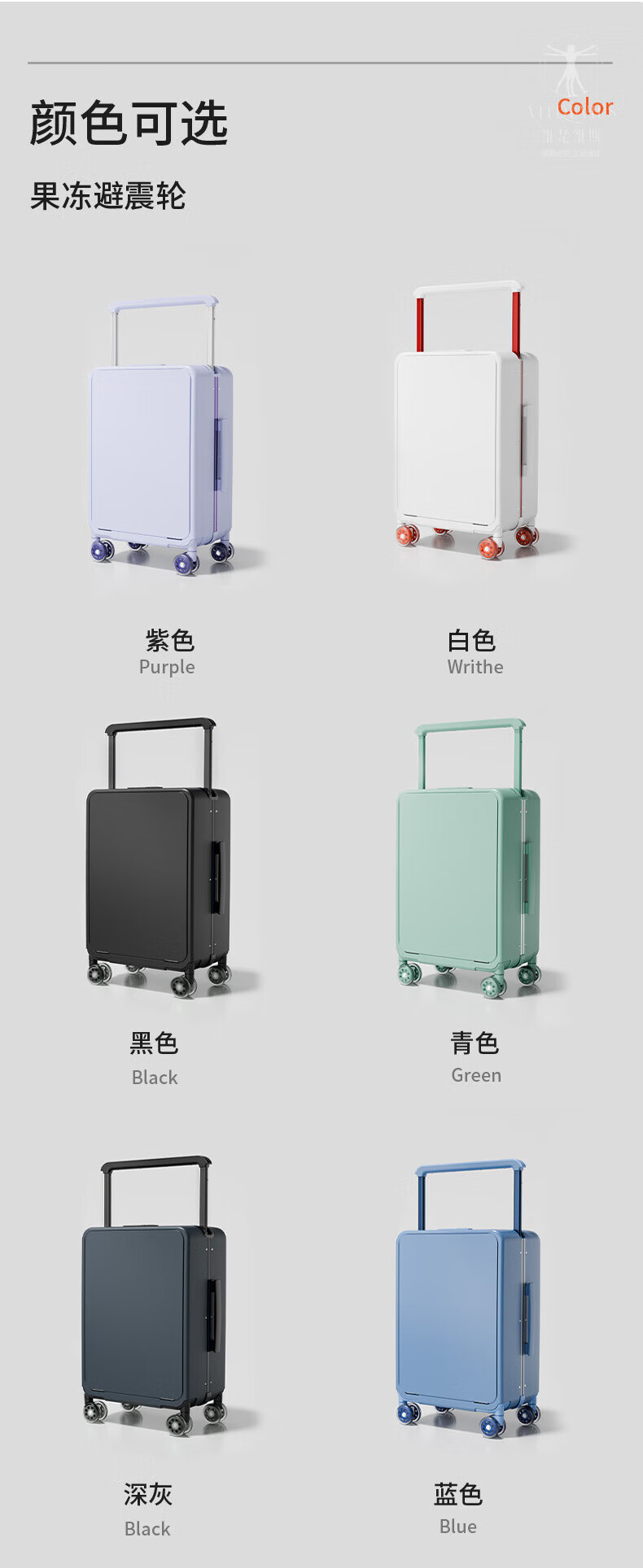 VITRUVIUS suitcase front opening short-distance travel suitcase wide trolley business boarding trolley case minimalist style password box mineral gray 24 inches required to be checked 1 9