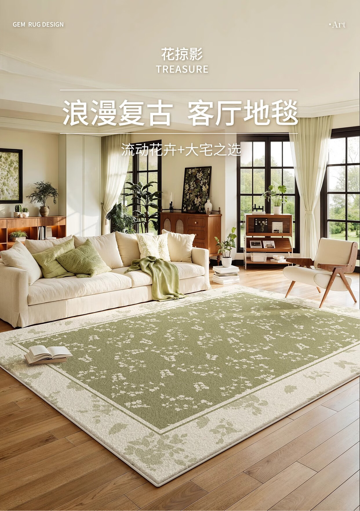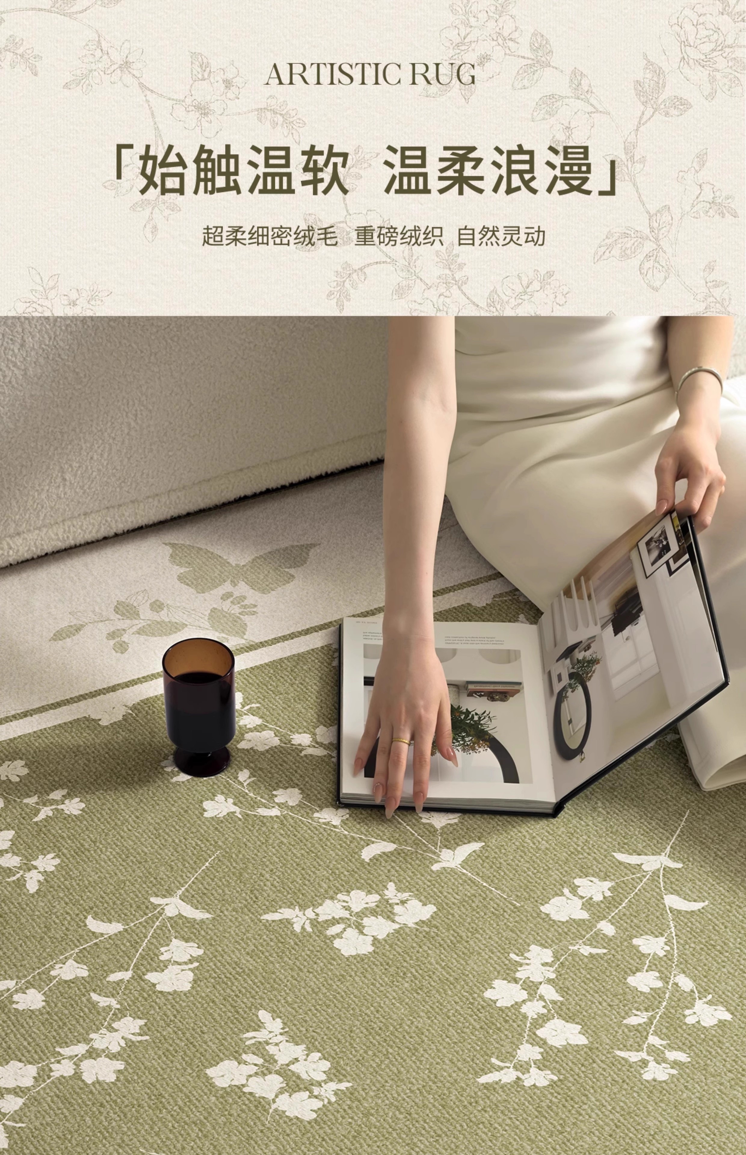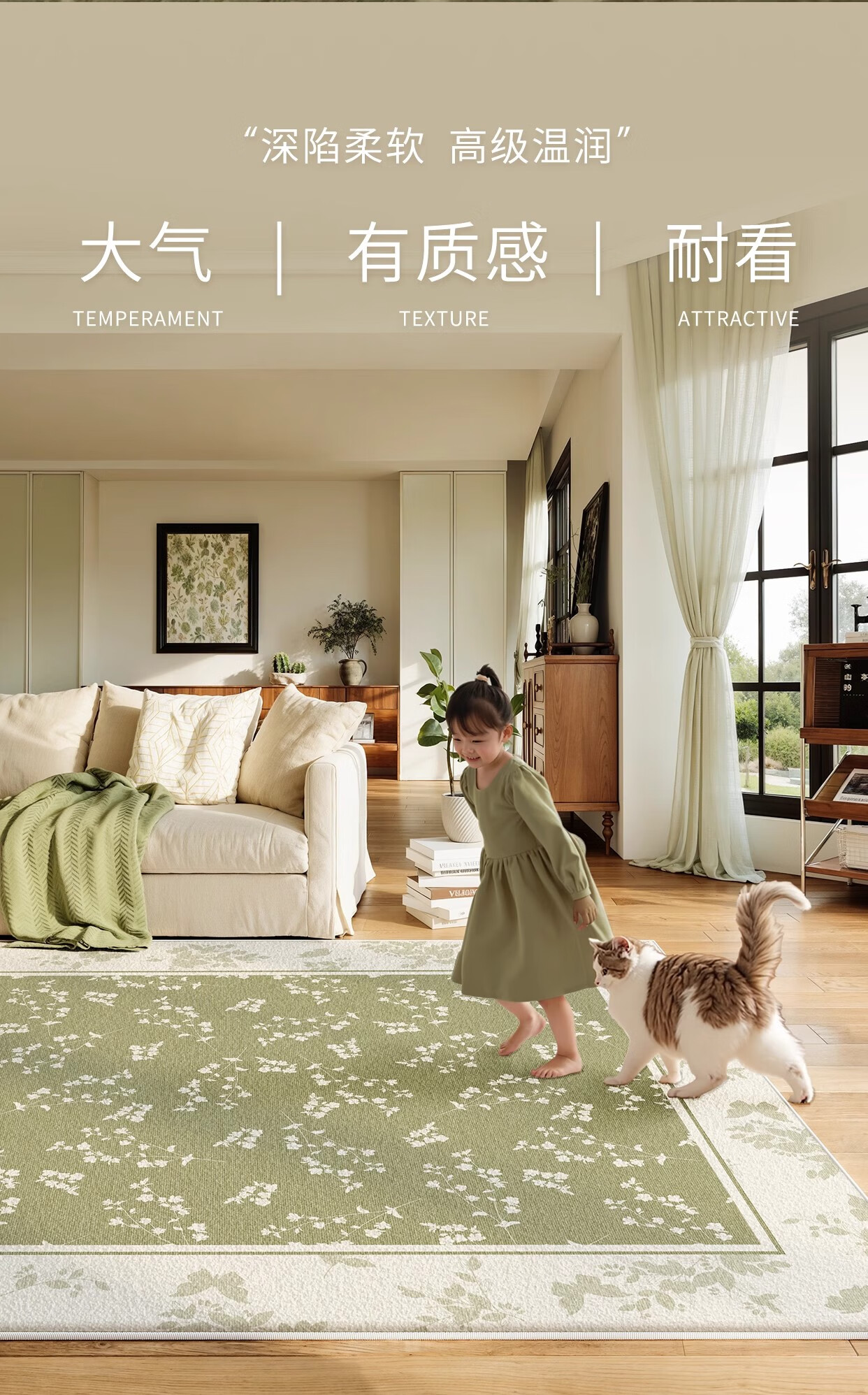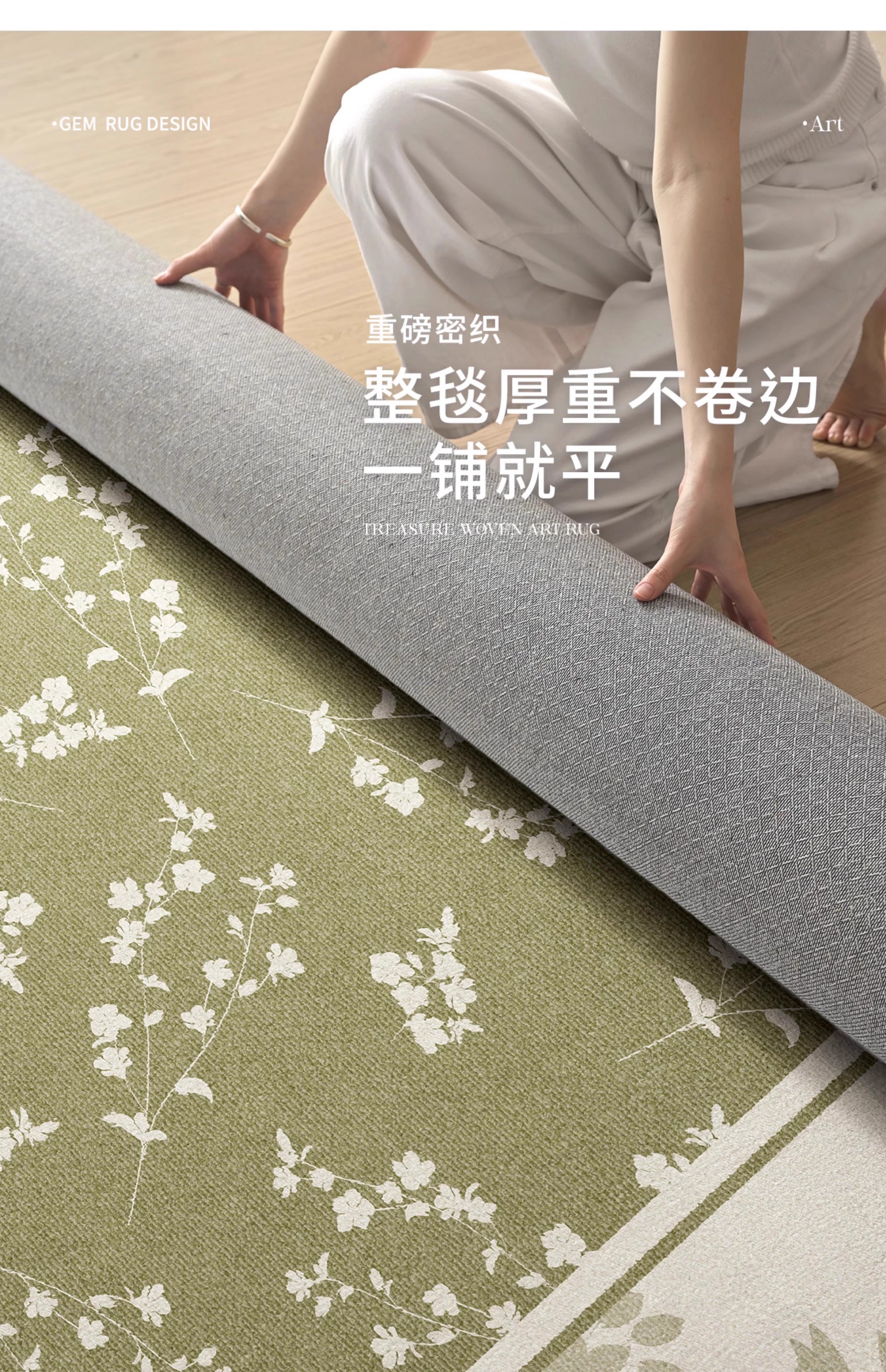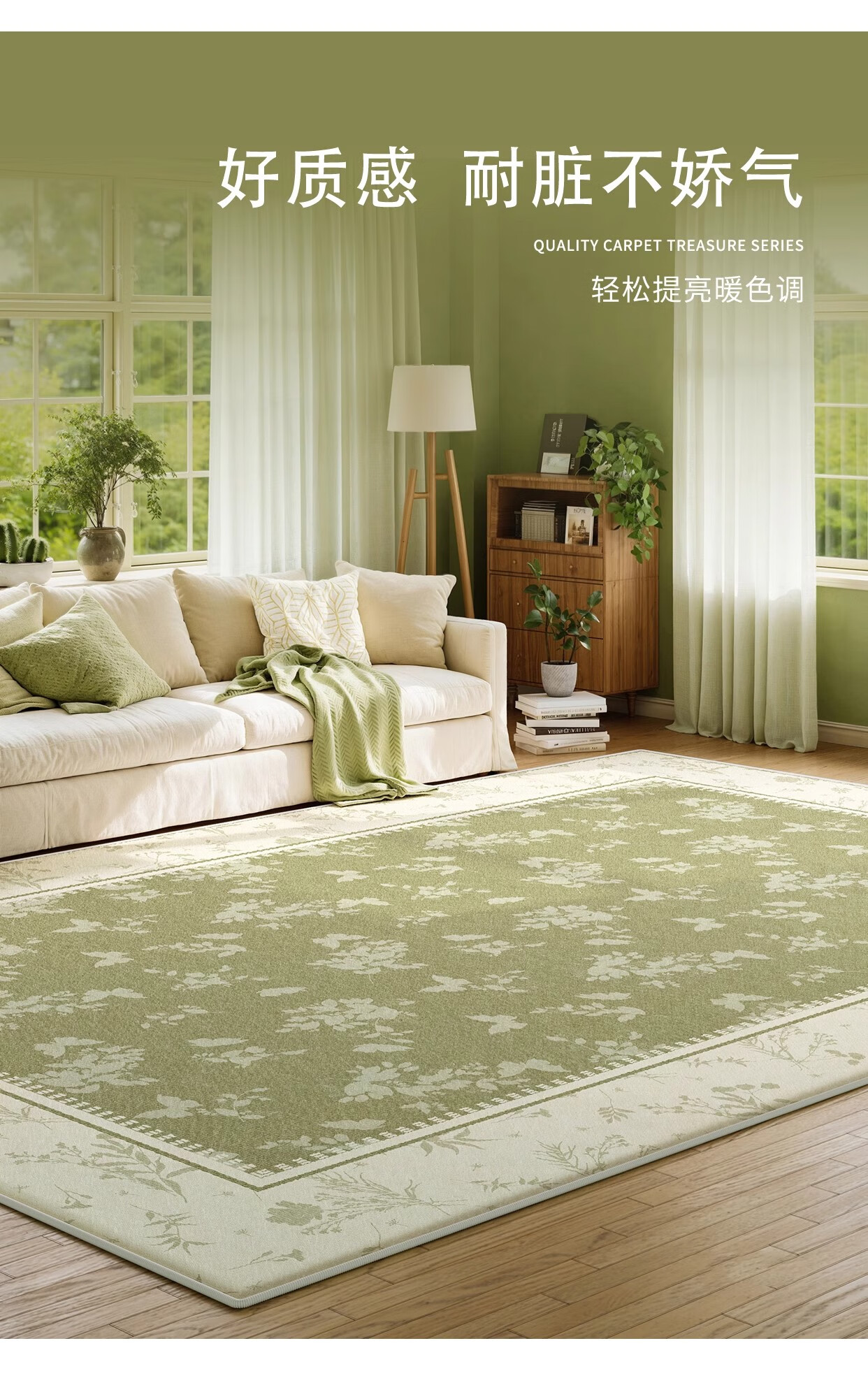 Y U-LIVE carpet living room green French retro cream style 2025 new no-wash wipeable waterproof and anti-fouling floor mat high-end S imitation cashmere-Flower Glimpse 140 200cm classic and versatile, never wrong