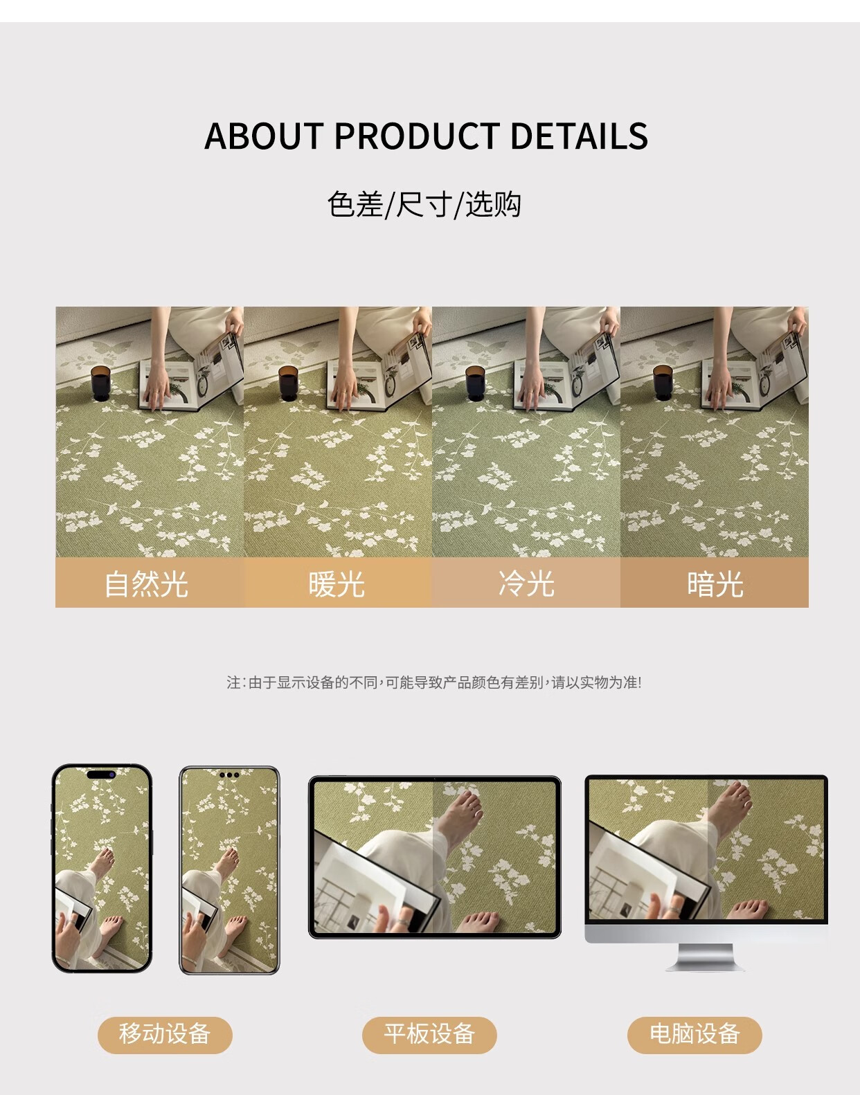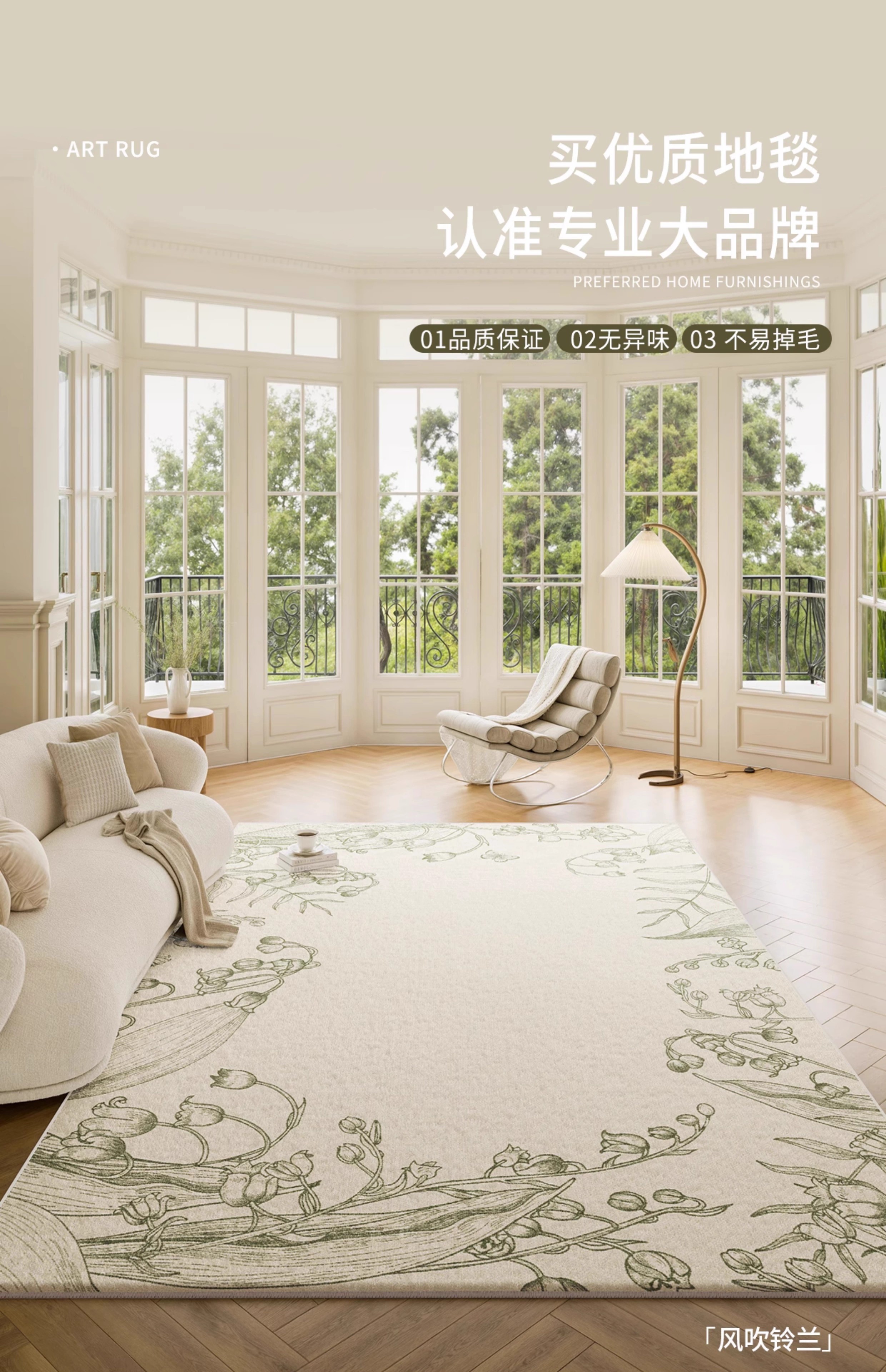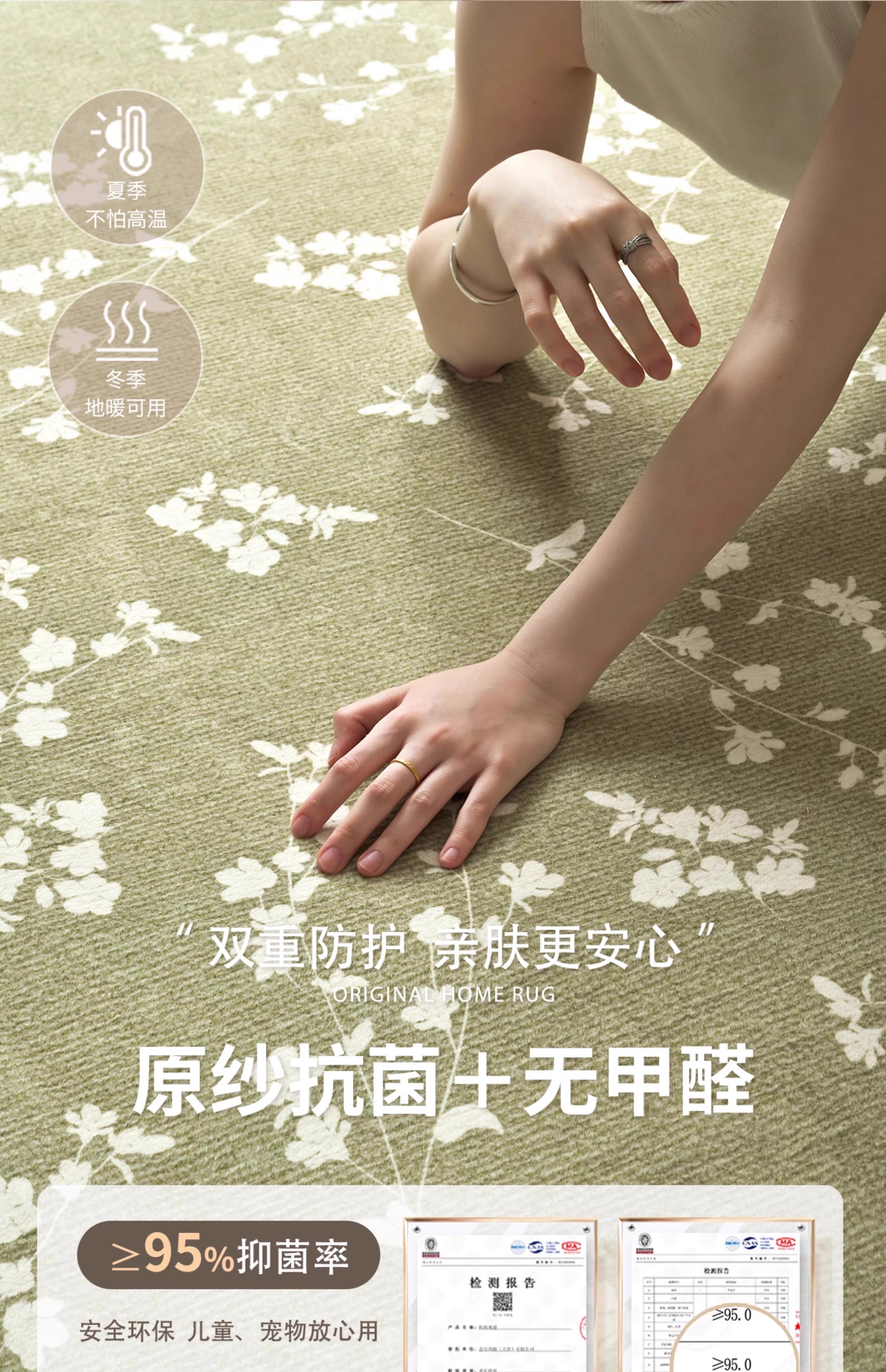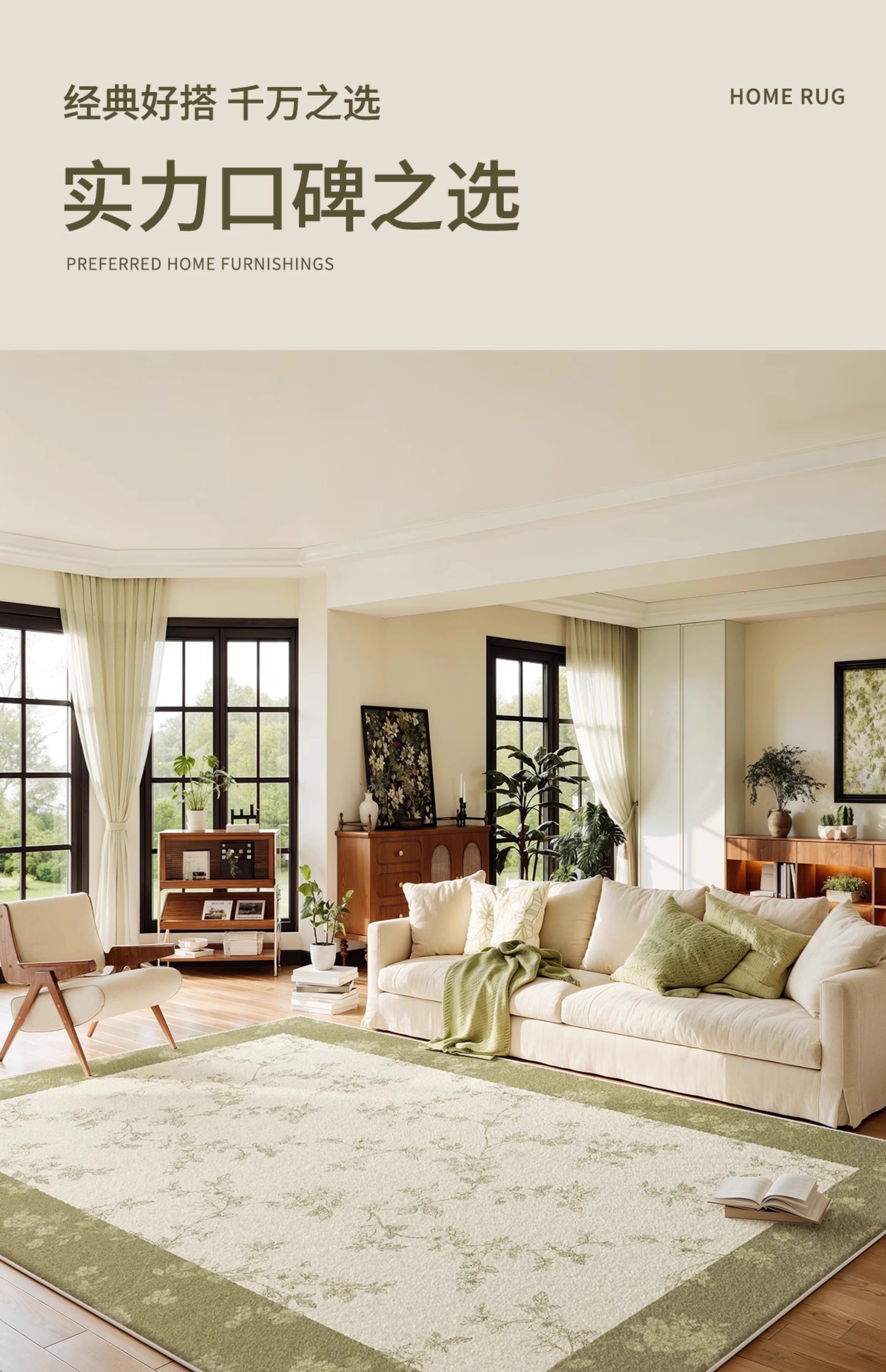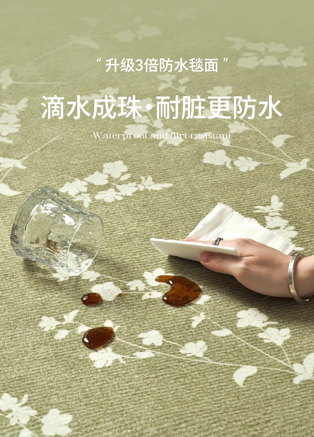 Y U-LIVE carpet living room green French retro cream style 2025 new no-wash wipeable waterproof and anti-fouling floor mat high-end S imitation cashmere-Flower Glimpse 140 200cm classic and versatile, never wrong