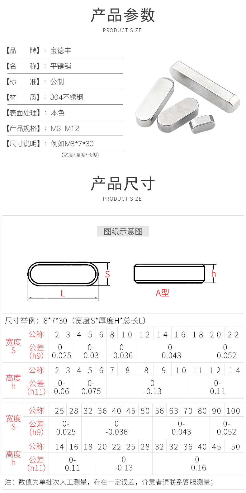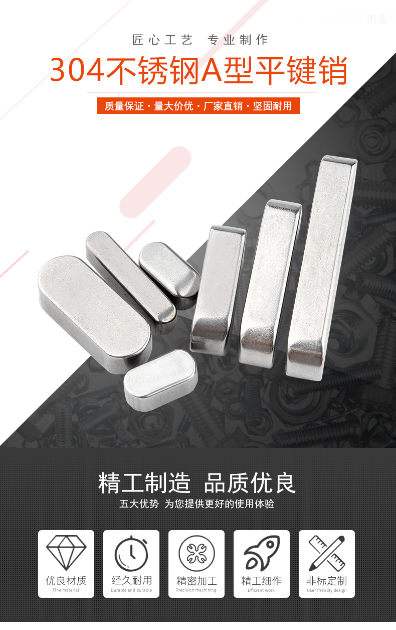 Baodefeng 304 stainless steel flat key pin rounded A-type square key pin material GB1096/square material M3M4/M5M6/M8M10/M12 M6x6x100 (5 pieces)