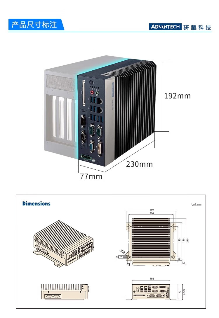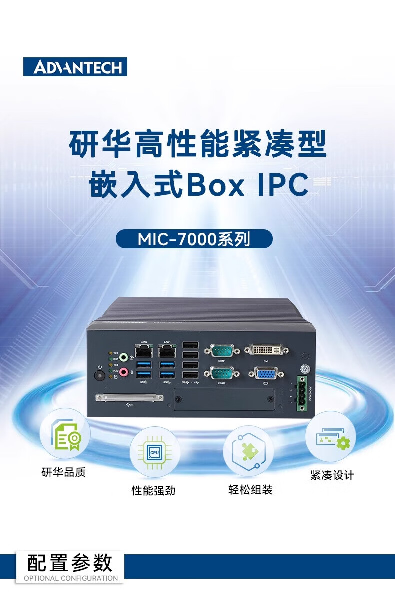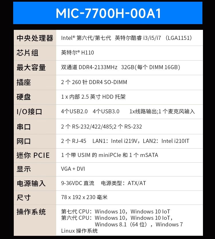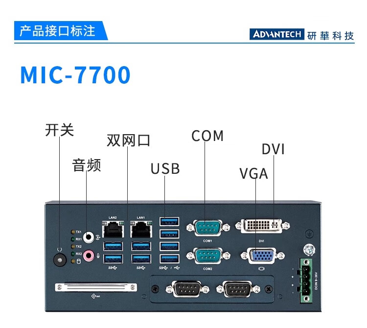Advantech industrial computer MIC-770/7700H original new compact fanless industrial computer Core 6/7 generation embedded mini industrial computer expandable MIC-7700H I5-6500/8G/256G/power adapter