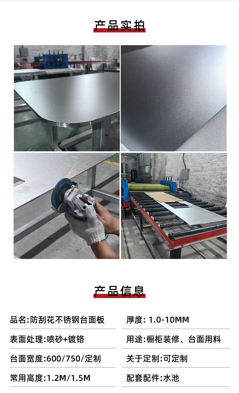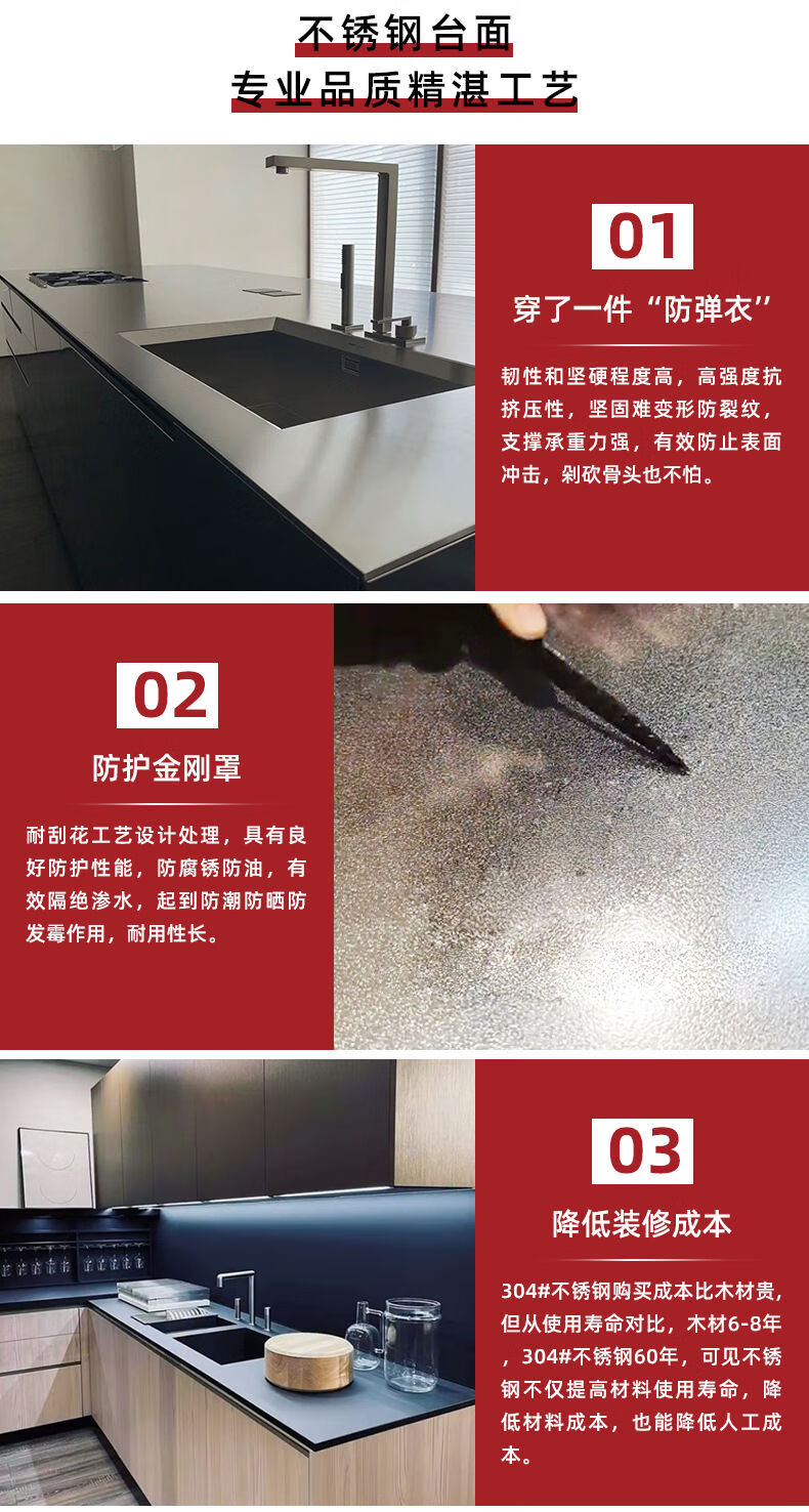 Kezitu stainless steel anti-scratch countertop 304 solid countertop anti-scratch and wear-resistant stainless steel cabinet countertop anti-scratch board snow crystal steel anti-scratch surface 3.0*600
