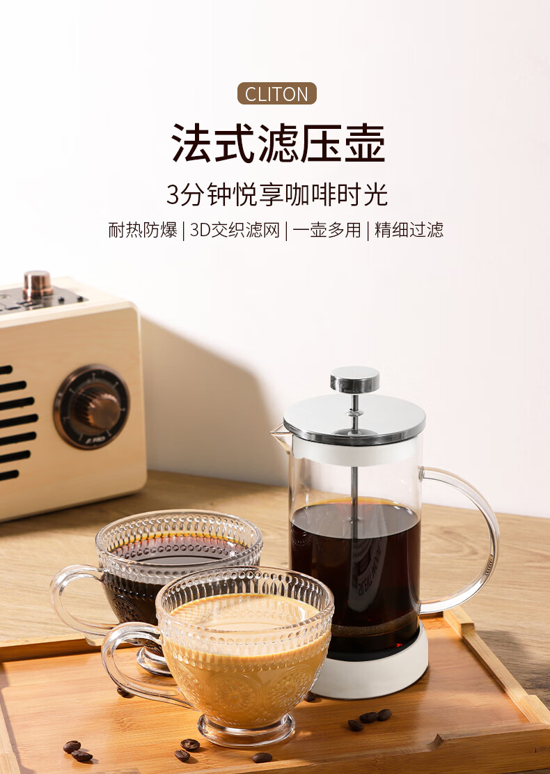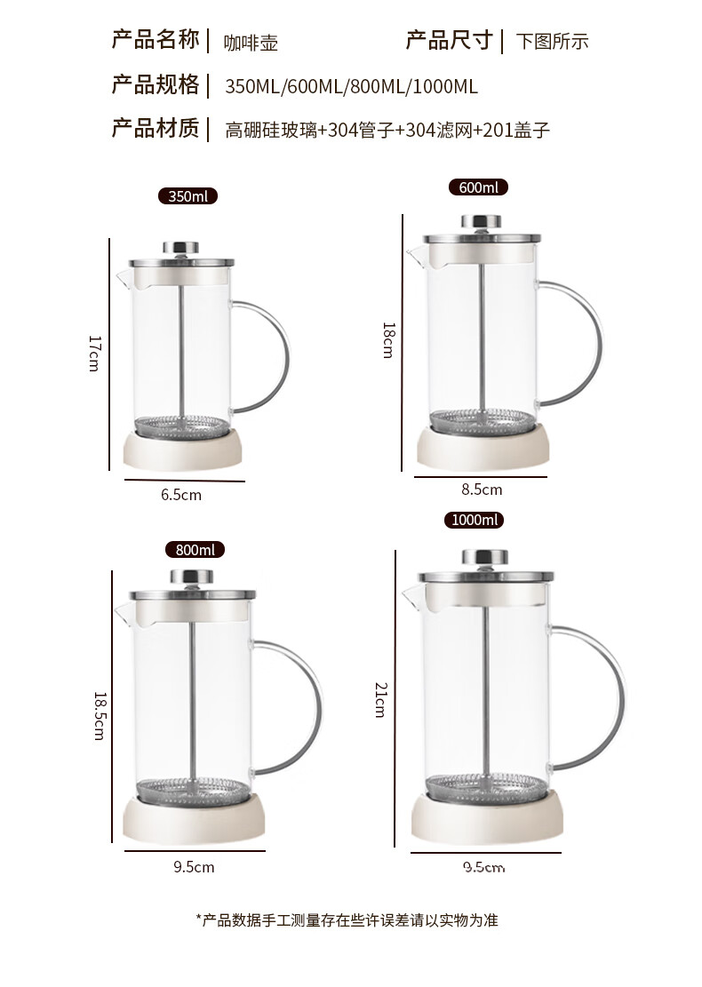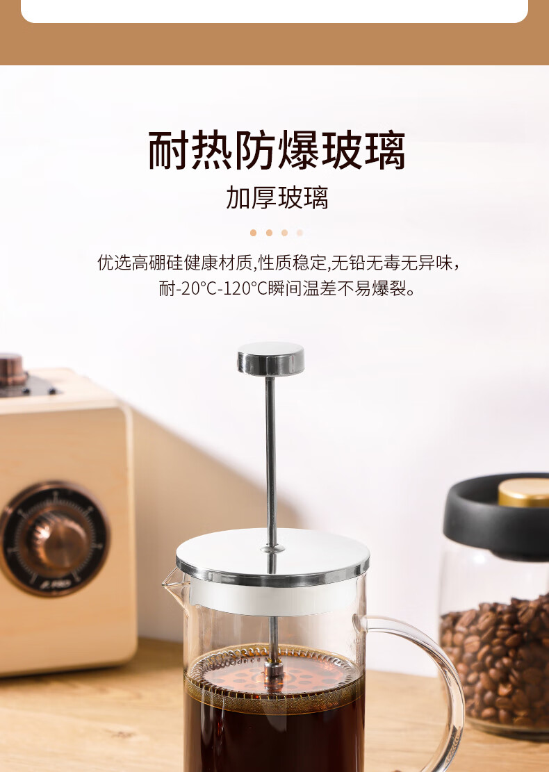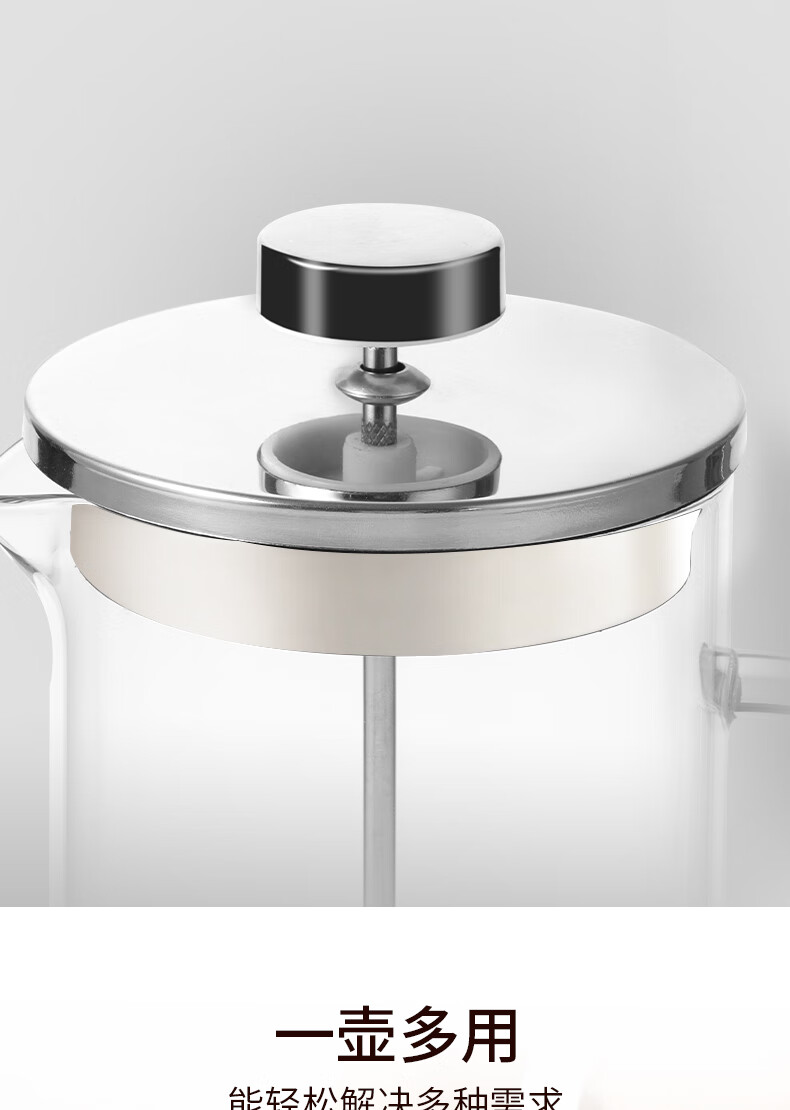 Baijie glass French press coffee pot stainless steel filter press pot for household tea and milk froth French coffee filter French press pot 350ml 1-2 people (snow white) coffee/tea/milk froth all in one pot