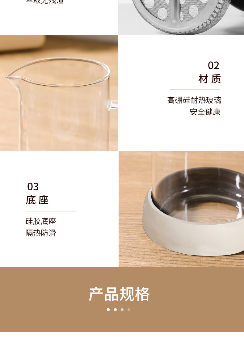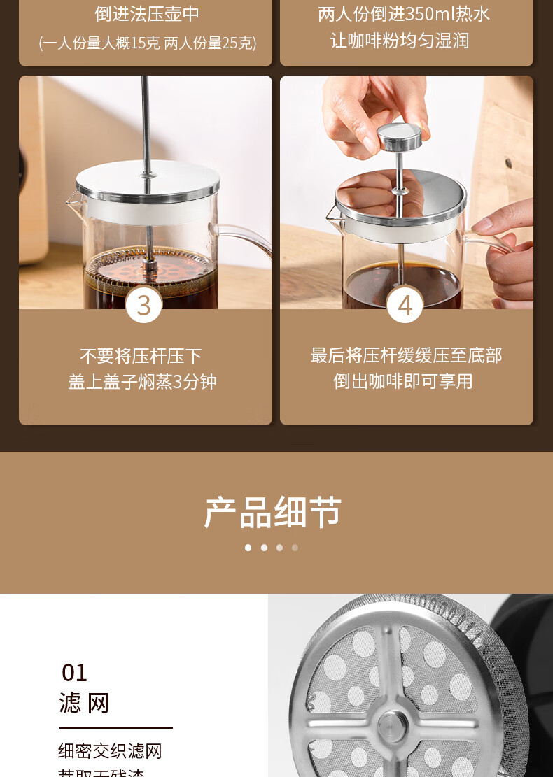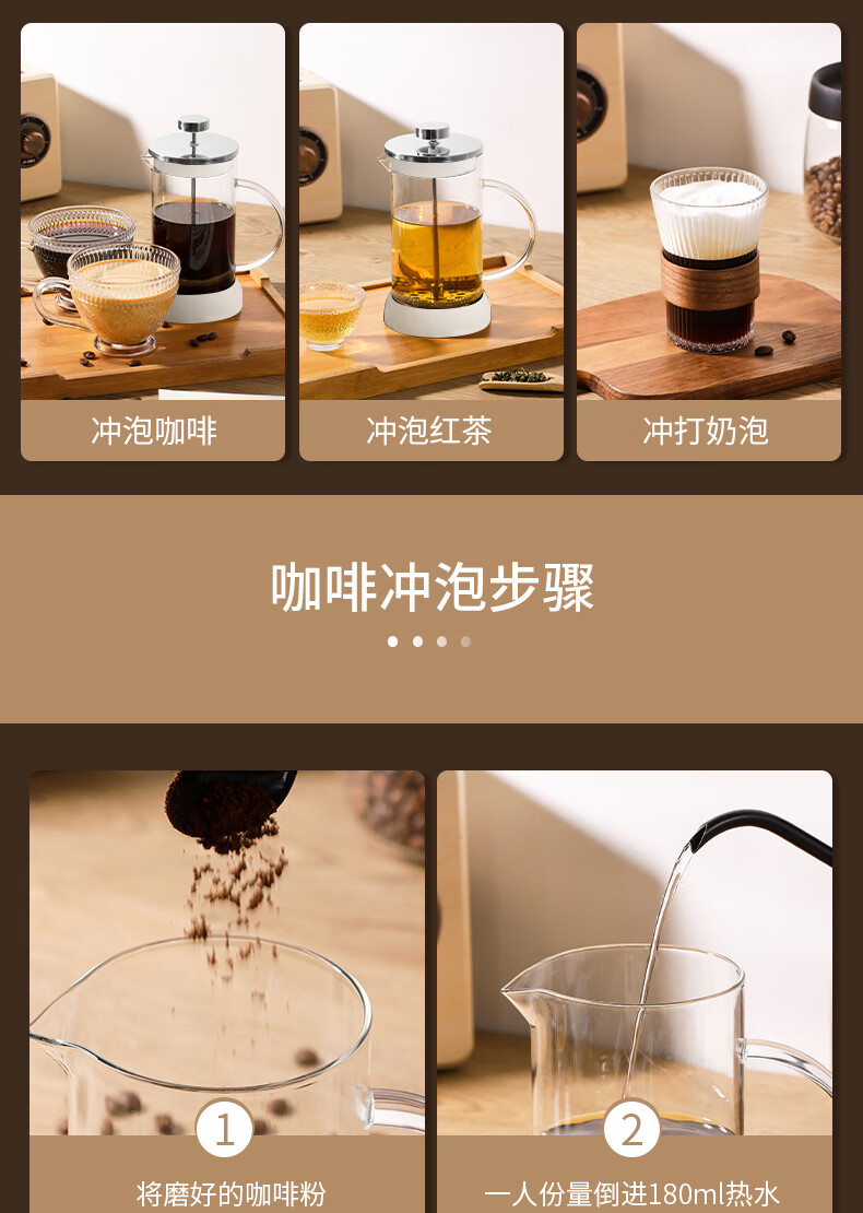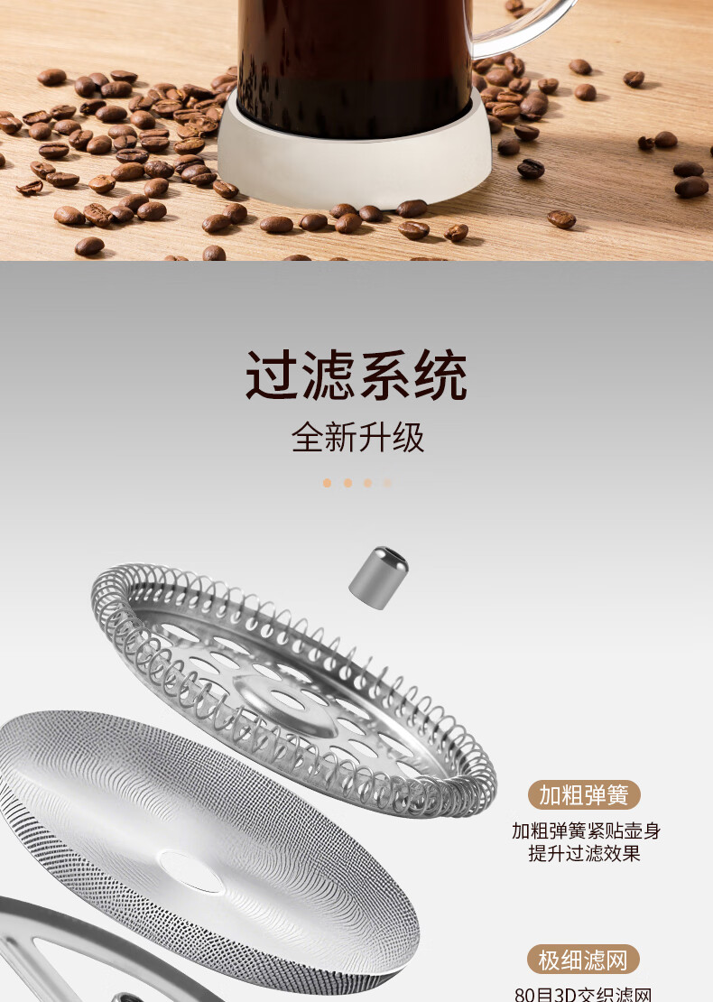 Baijie glass French press coffee pot stainless steel filter press pot for household tea and milk froth French coffee filter French press pot 350ml 1-2 people (snow white) coffee/tea/milk froth all in one pot