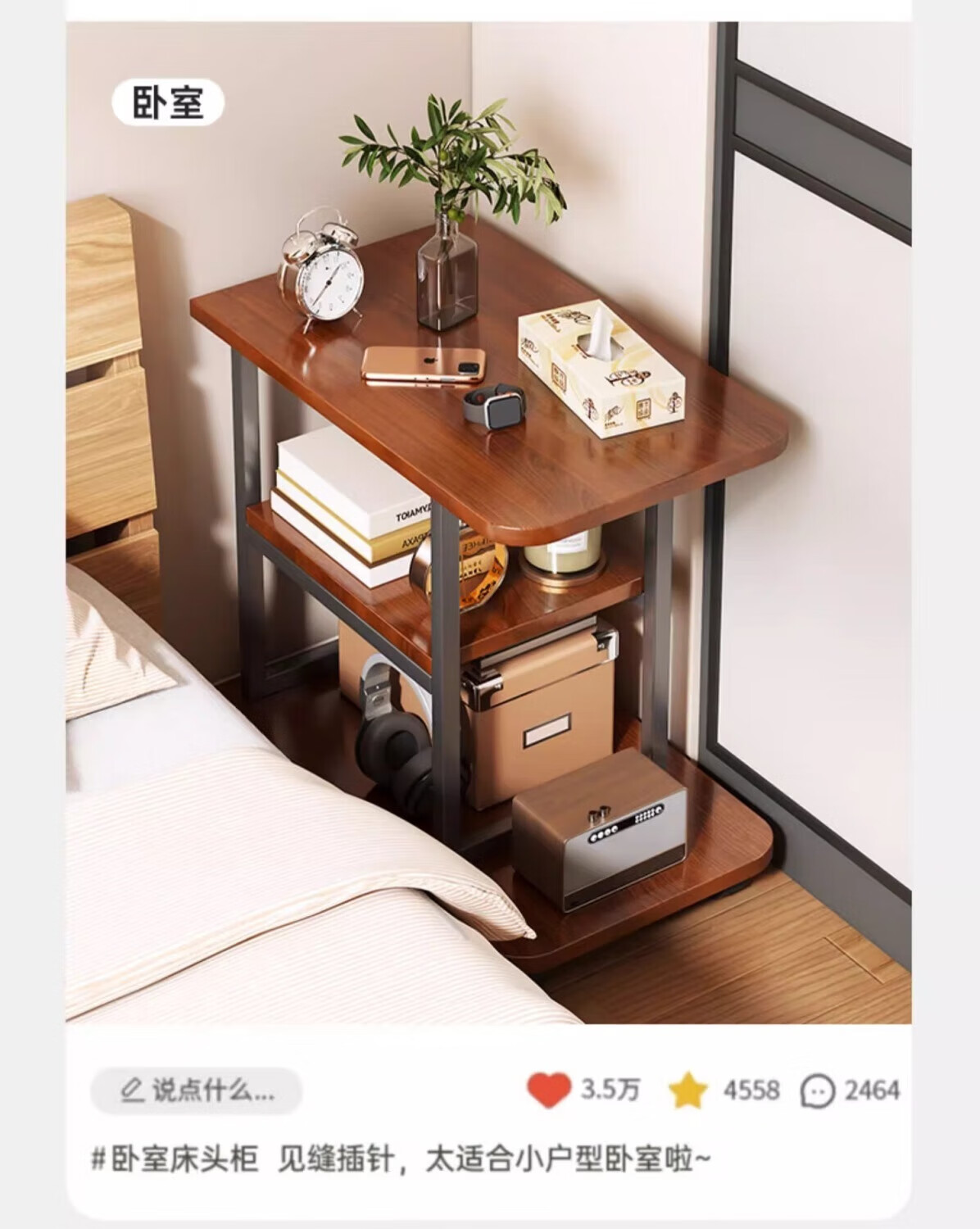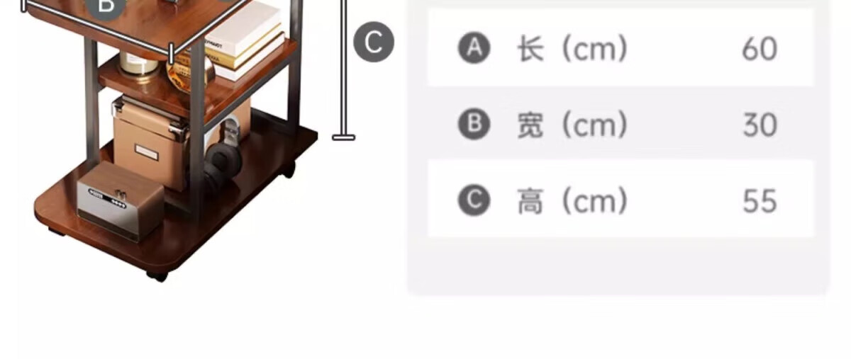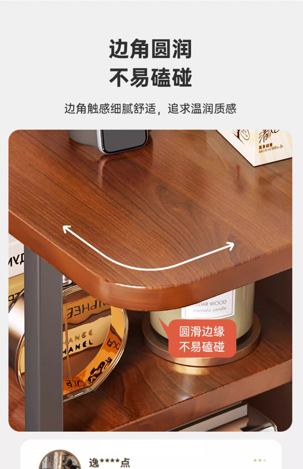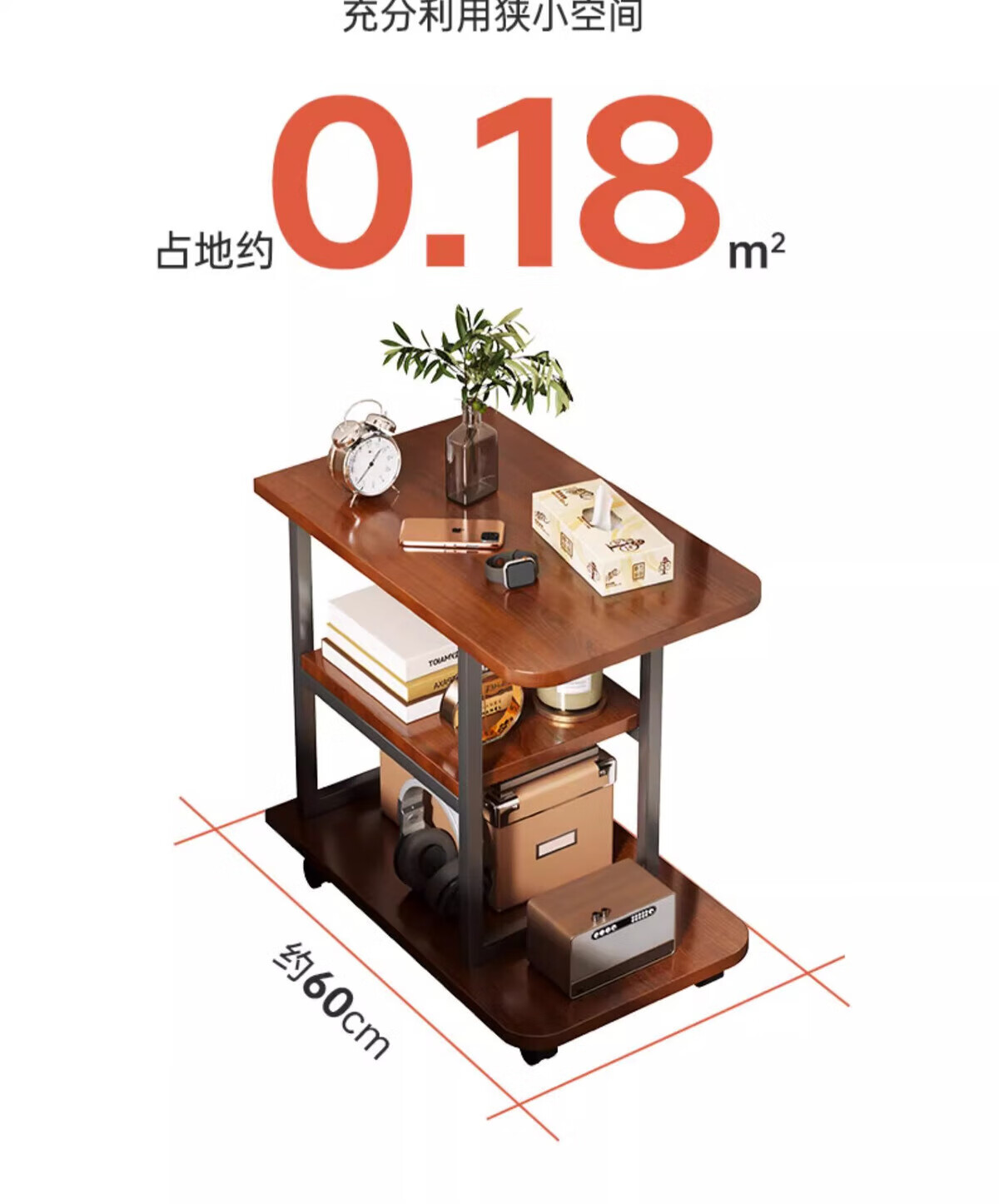 Side table coffee table small apartment sofa side table movable tea table living room multi-functional storage corner table side cabinet tea table H166C walnut + black shelf 60*30cm