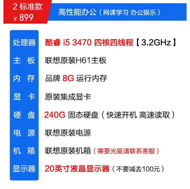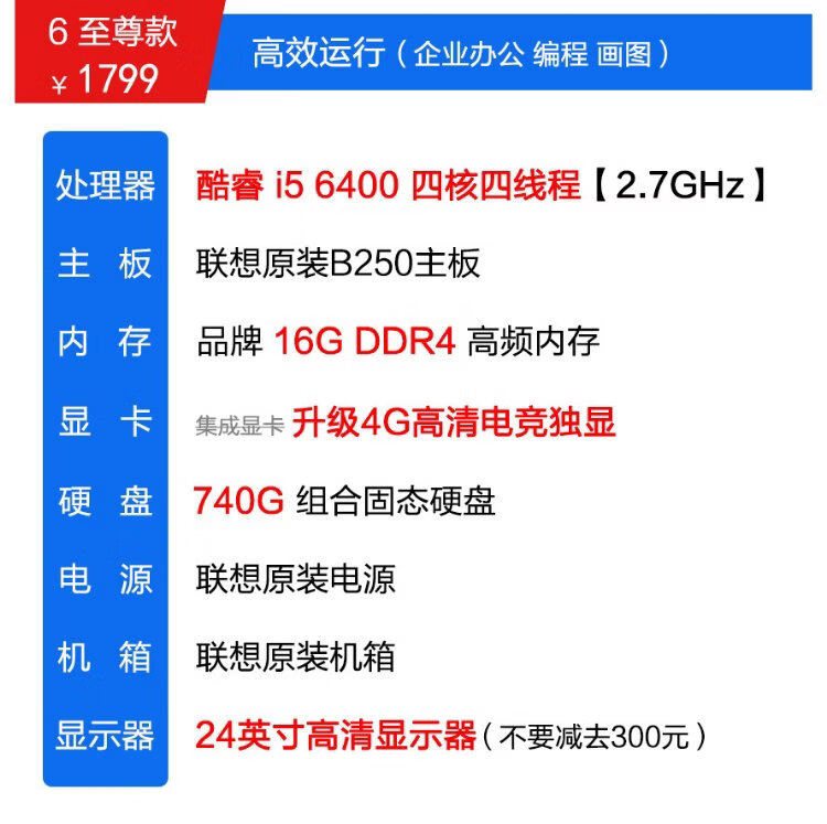 Lenovo desktop Intel Core i5 i7 business office online class ps design editing chicken game second-hand computer 3 Core i5/16G/740G dual hard drive/hot-selling model complete set 90% new