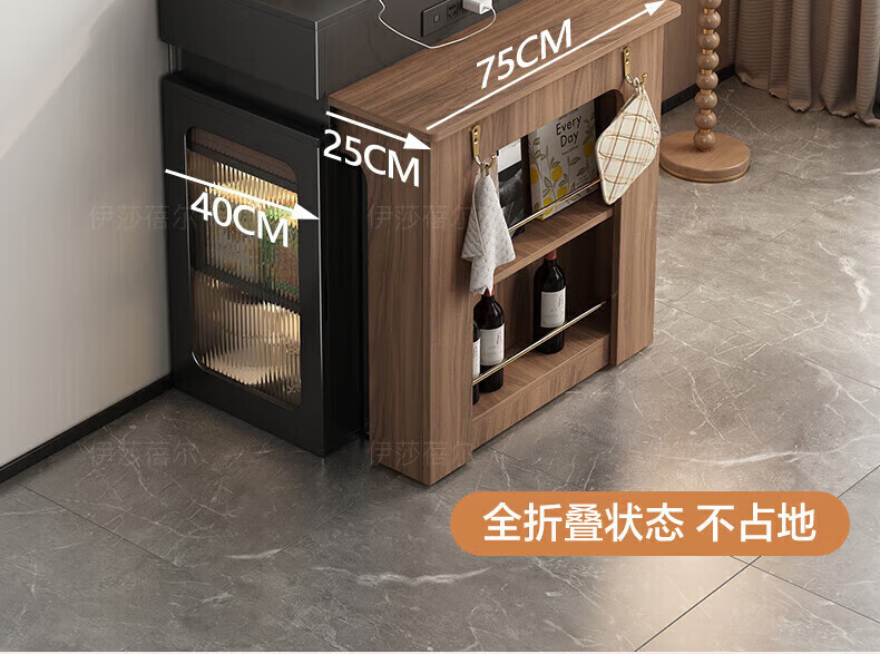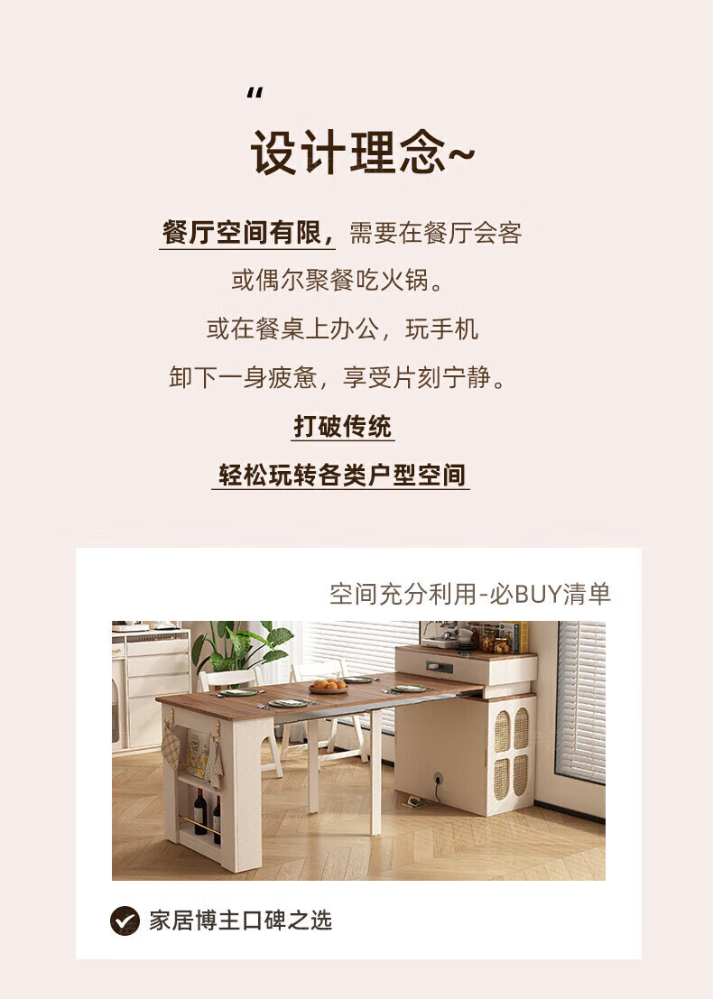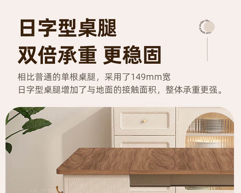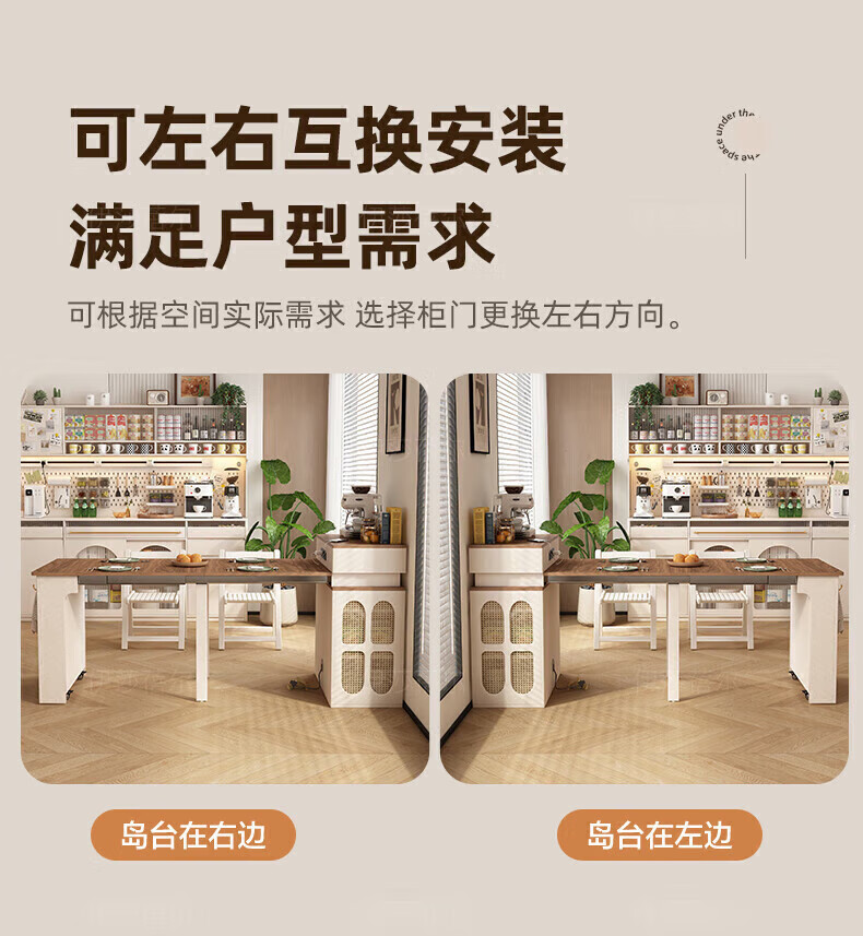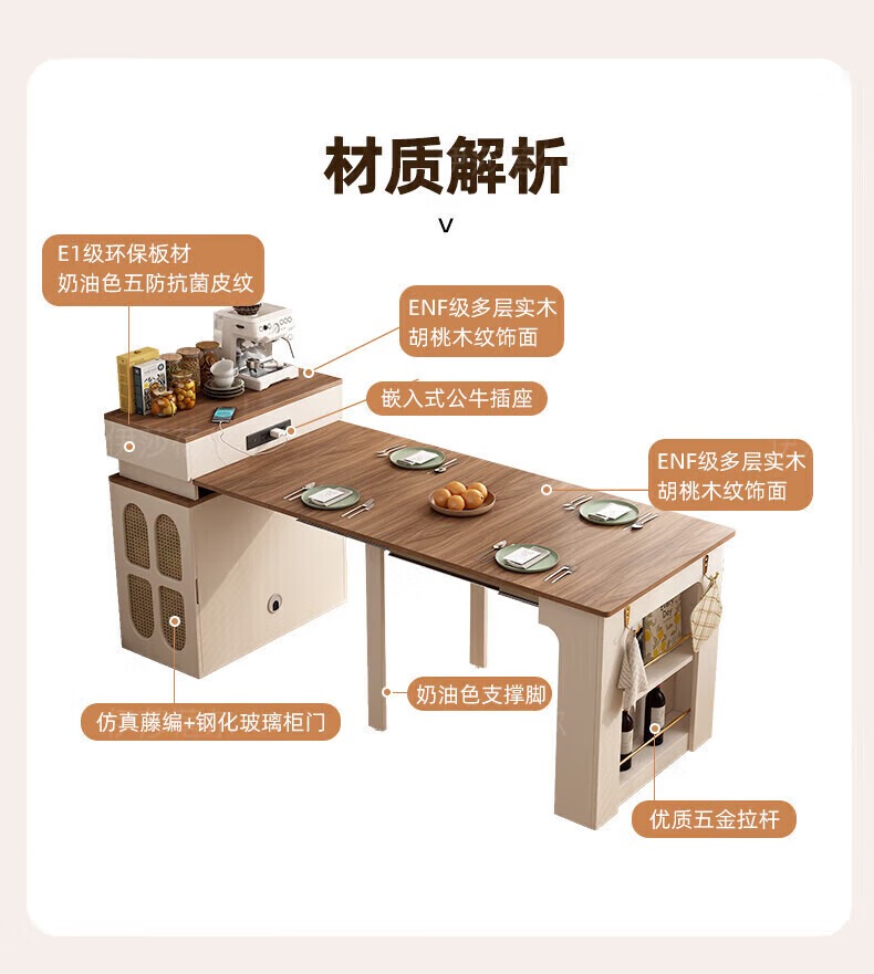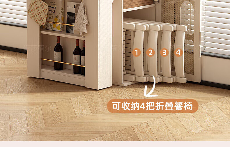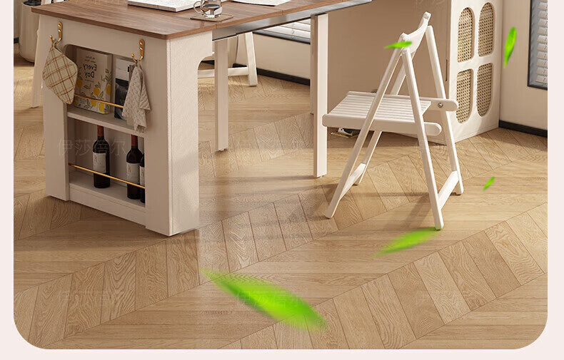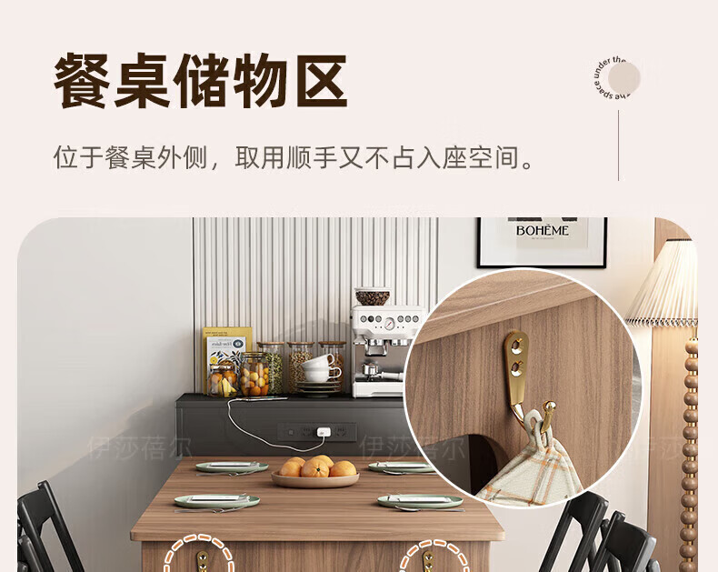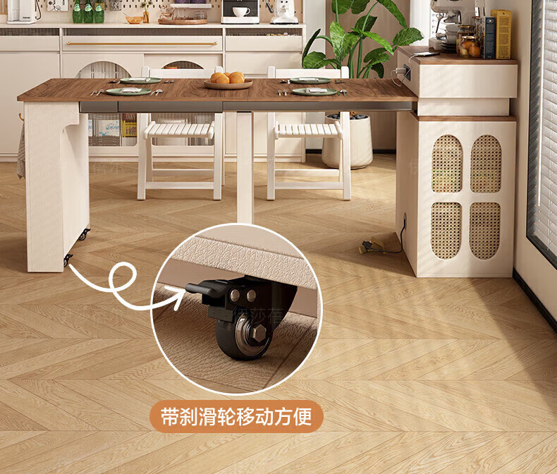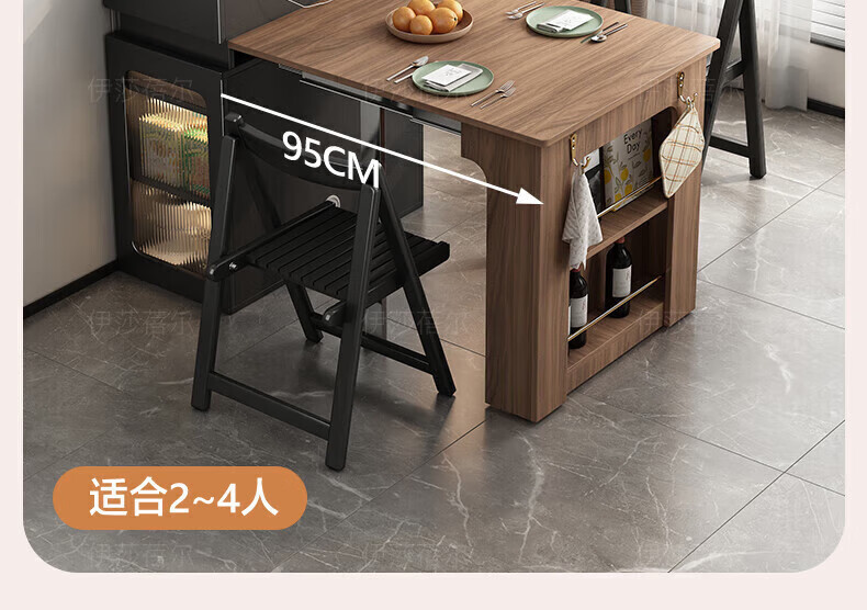 Isabelle dining table, household retractable sideboard, integrated small-sized island storage cabinet, storage cabinet, solid wood foldable dining table, one table and four chairs, removable storage cabinet shelf, latch-fixed table board
