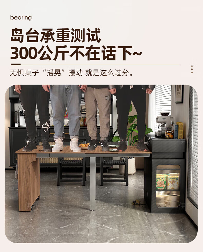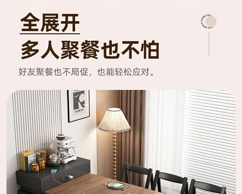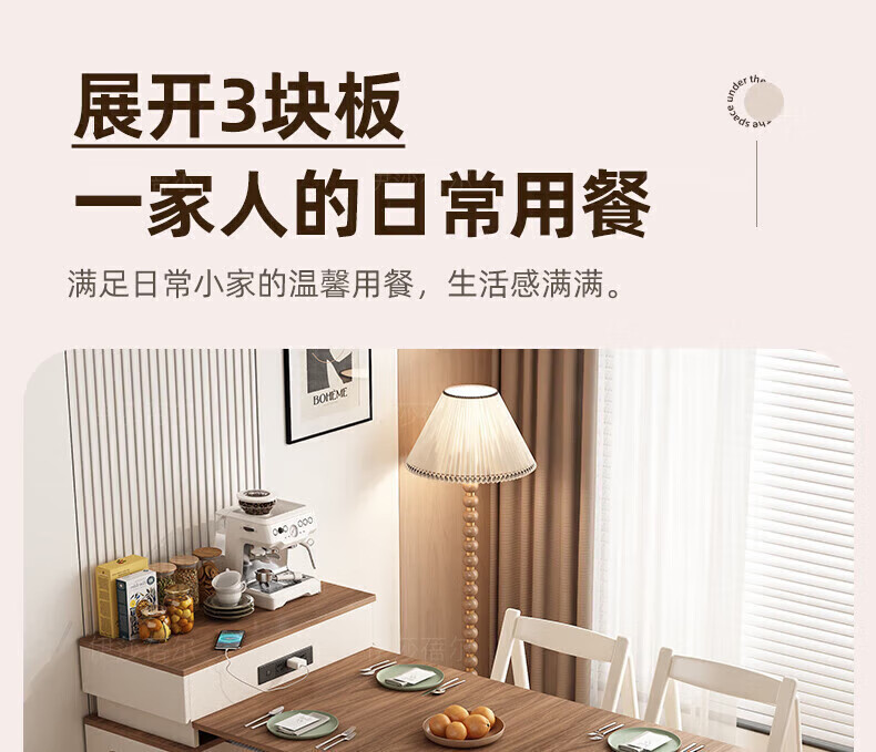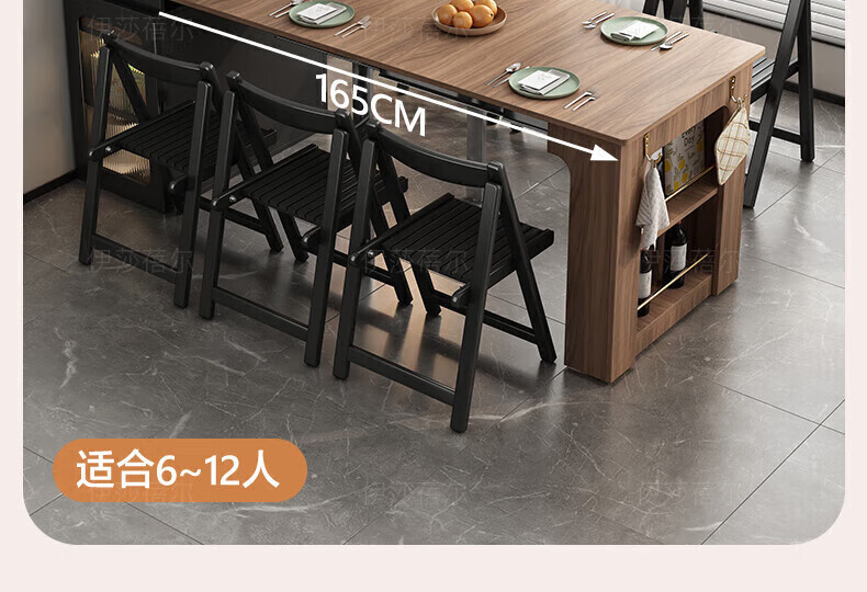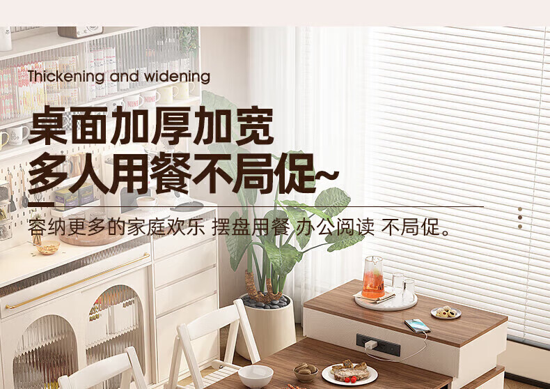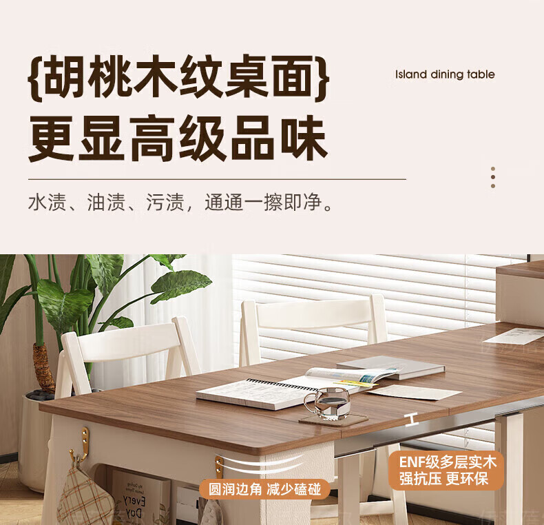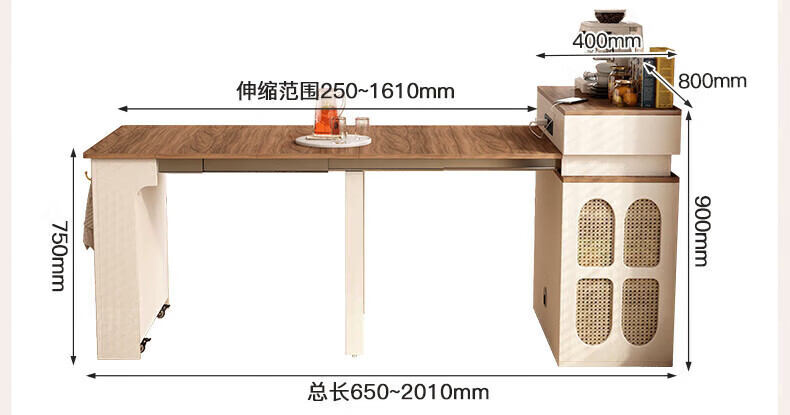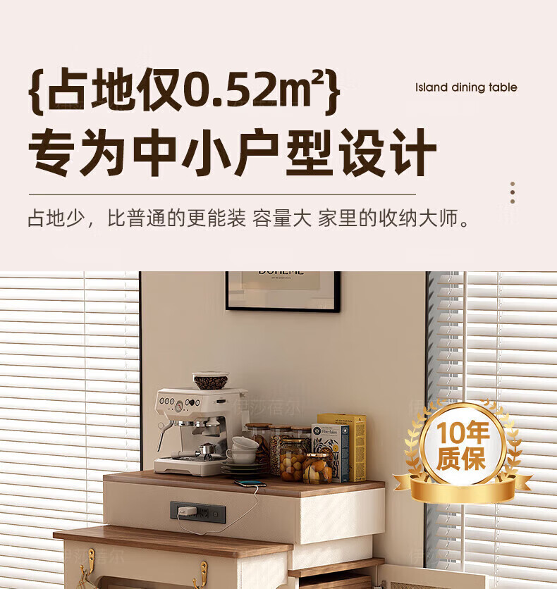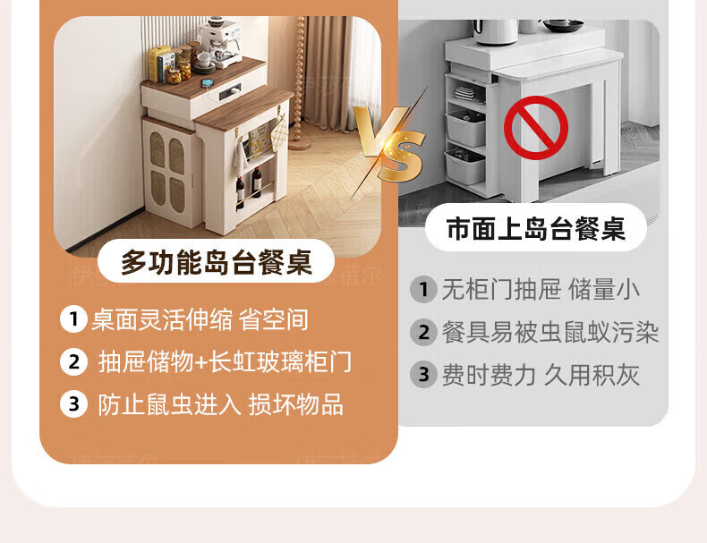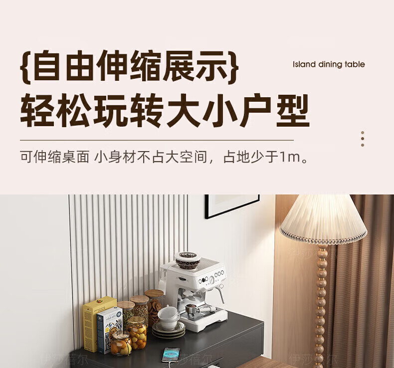 Isabelle dining table, household retractable sideboard, integrated small-sized island storage cabinet, storage cabinet, solid wood foldable dining table, one table and four chairs, removable storage cabinet shelf, latch-fixed table board