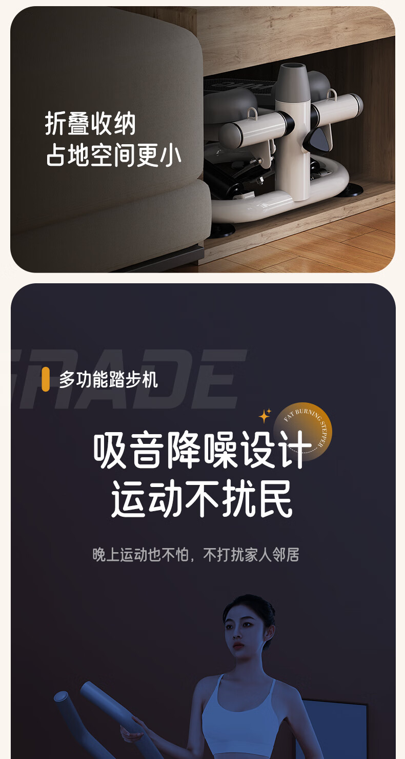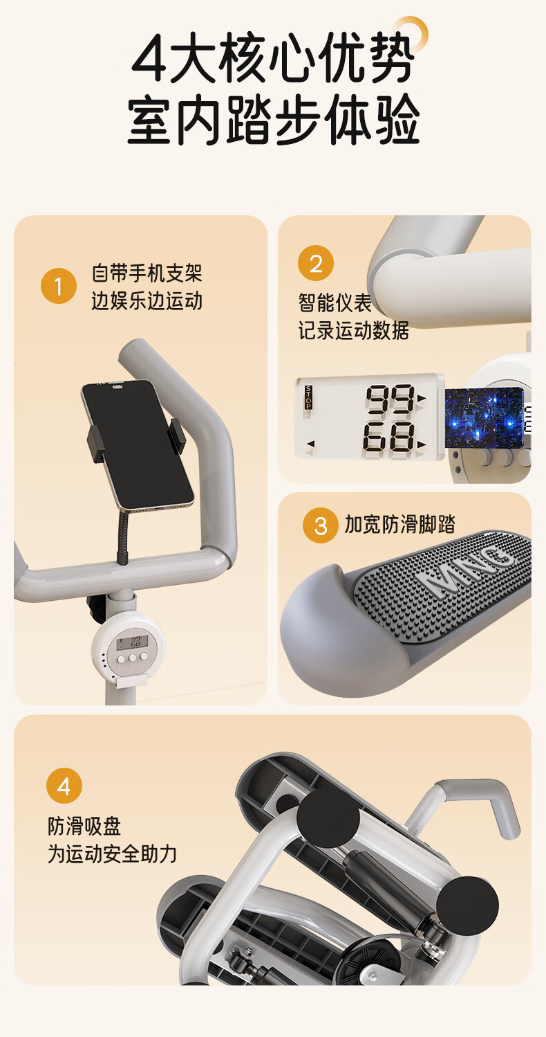 MPPMCK handrail stepper home treadmill silent weight loss in-situ mountain climbing foot pedal small sports fitness equipment stepper + anti-slip floor mat