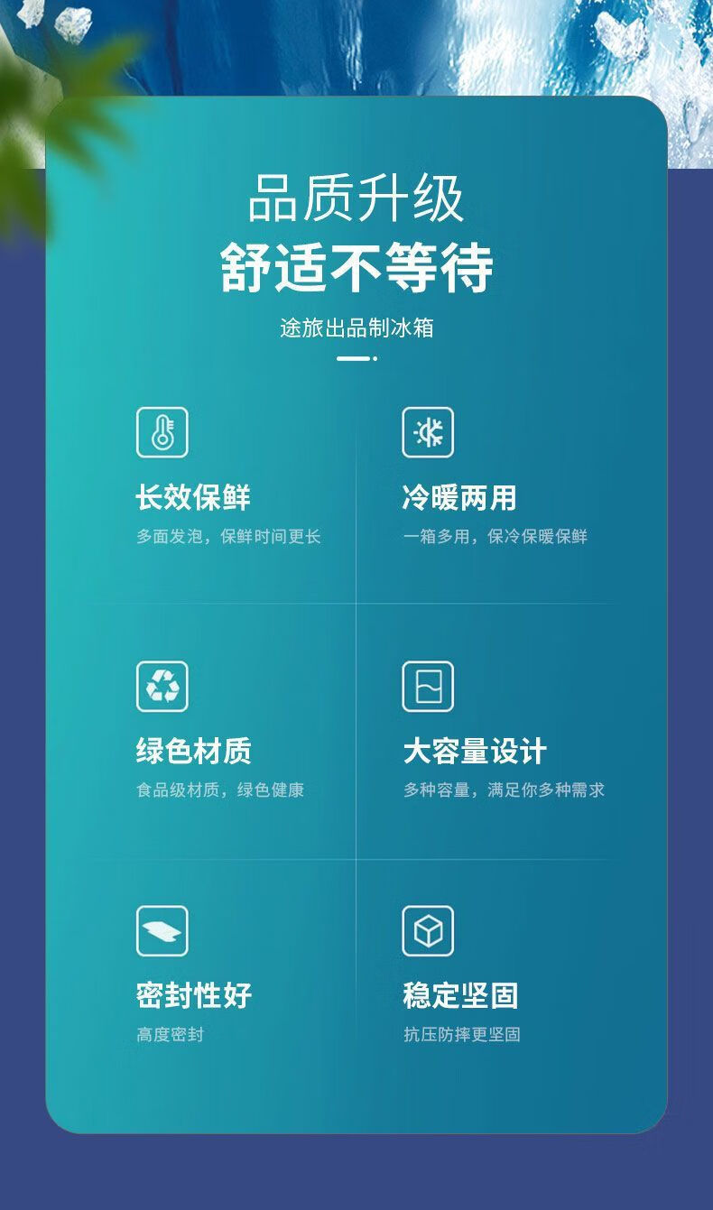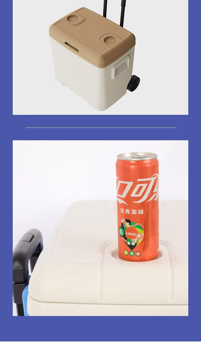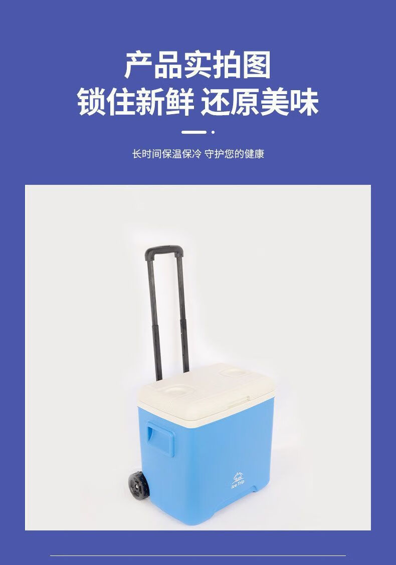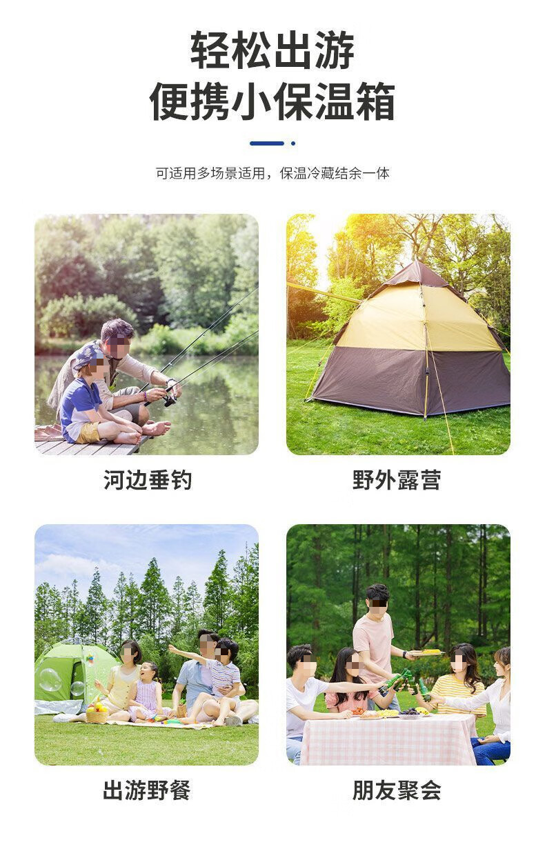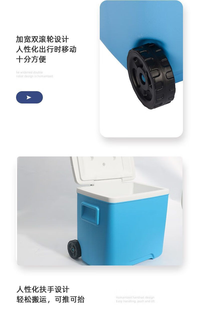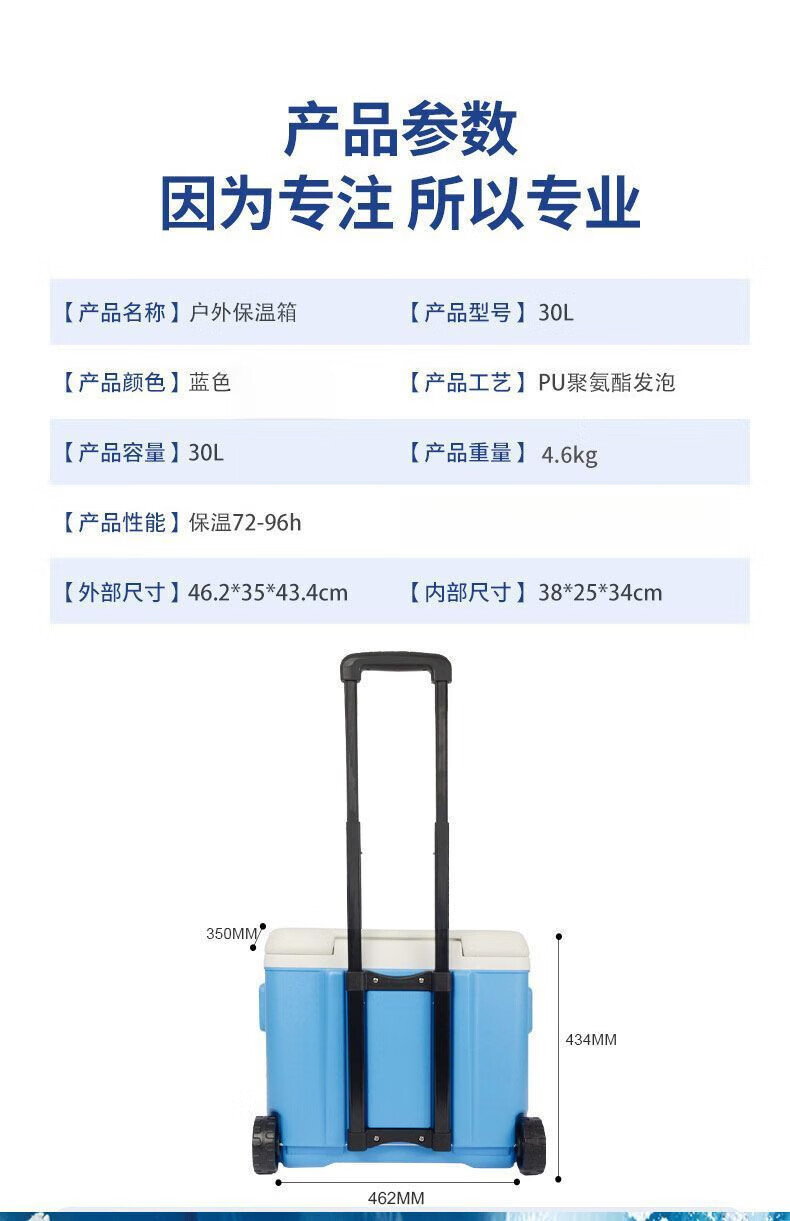 Trolley insulated box cooler portable home car outdoor ice cooler commercial stall takeaway fishing box 22 liters green PU cold storage 48 hours + ice brick ice bag