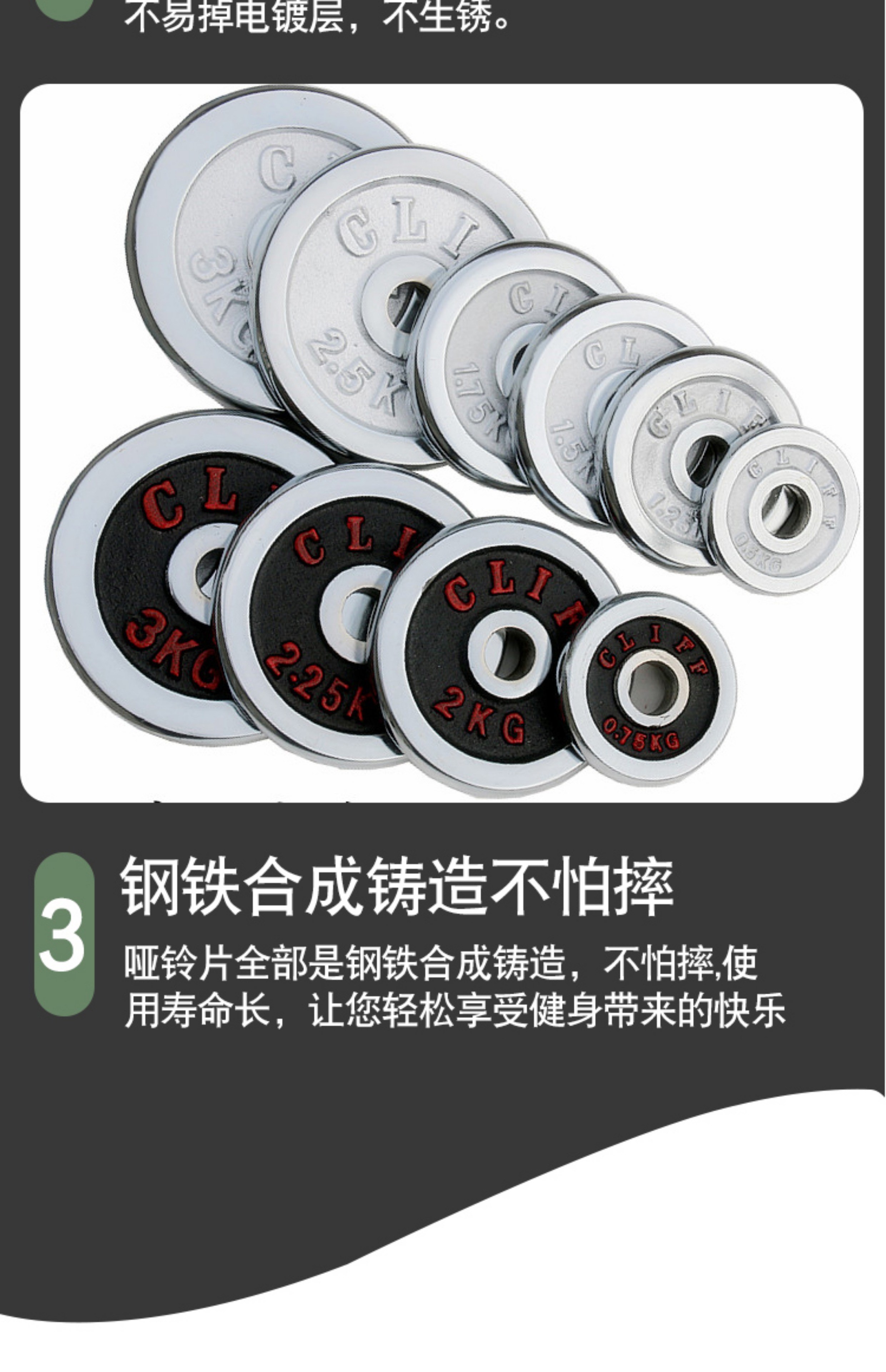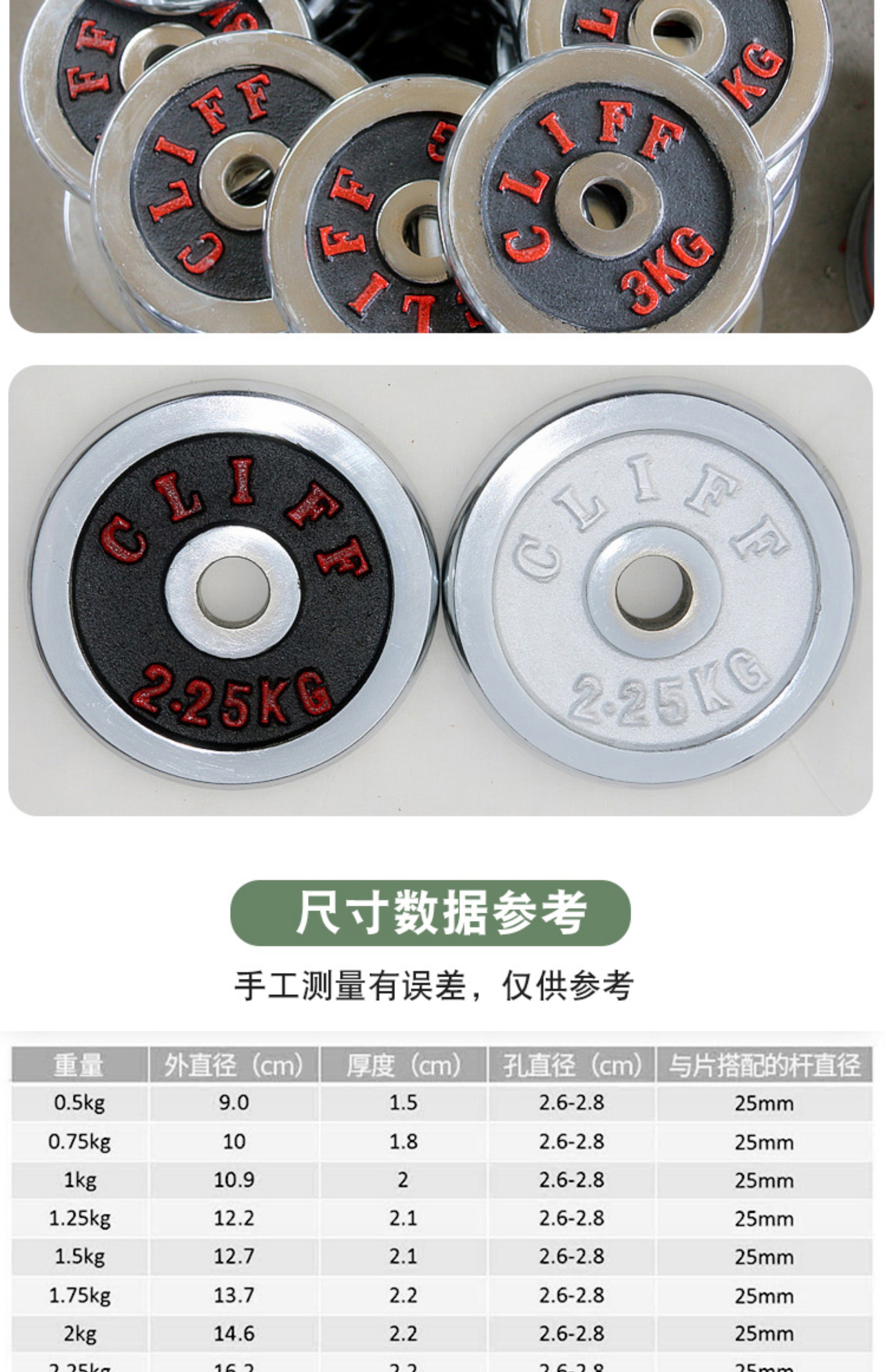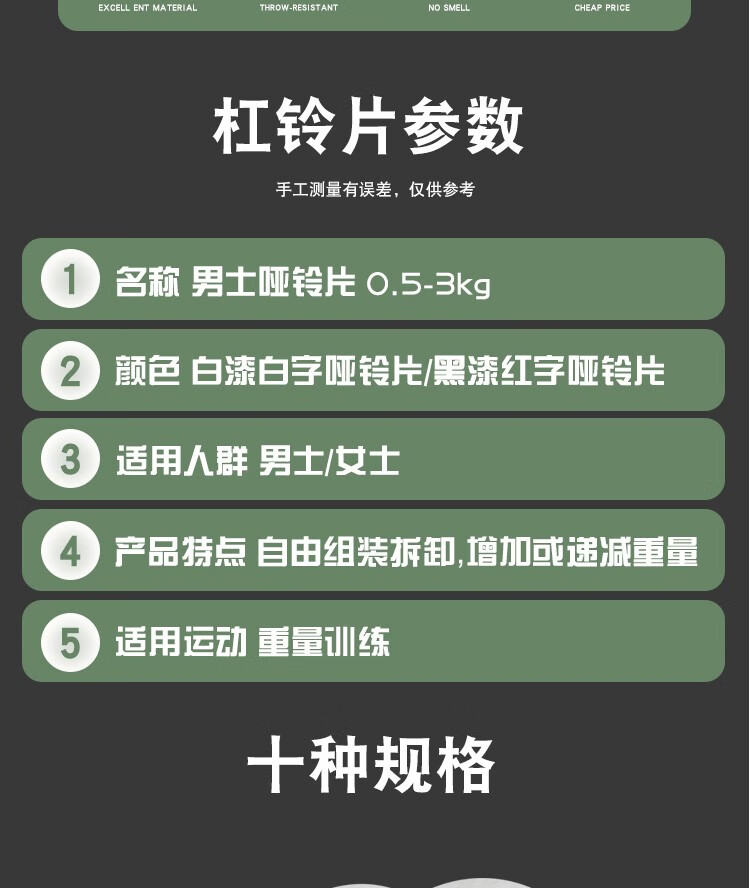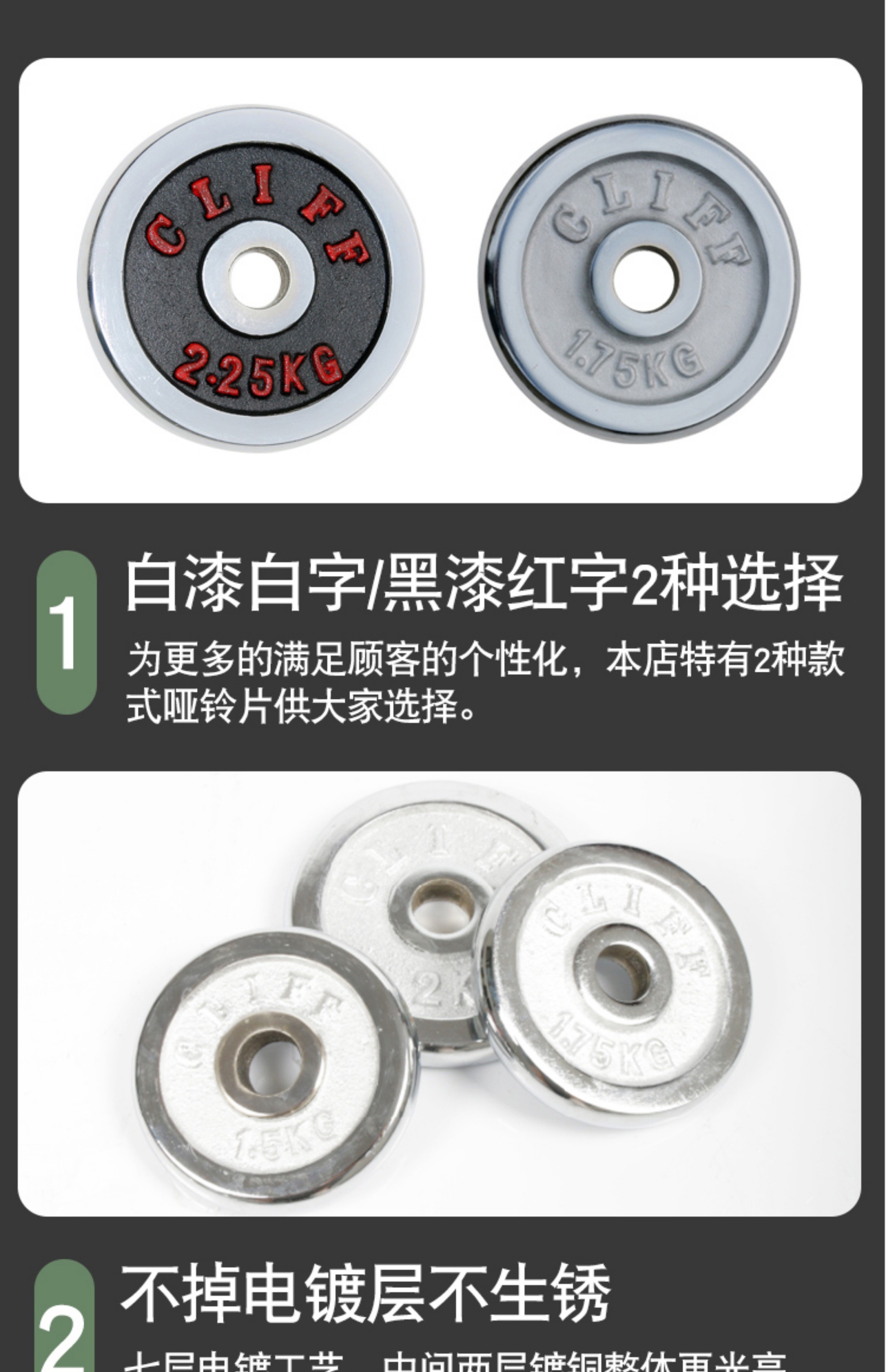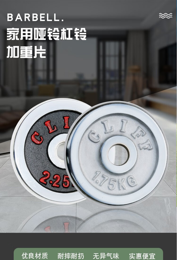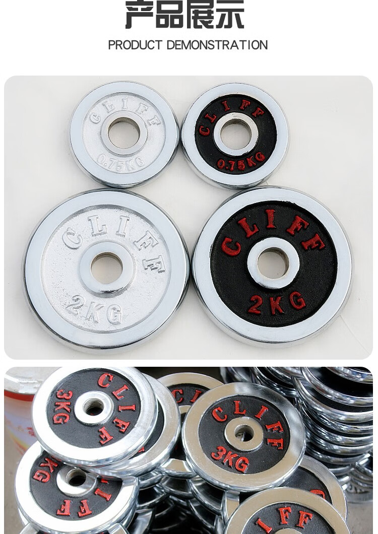 Electroplated dumbbell plate cast iron small hole barbell bar general household men's fitness equipment 1KG*2 pieces white piece