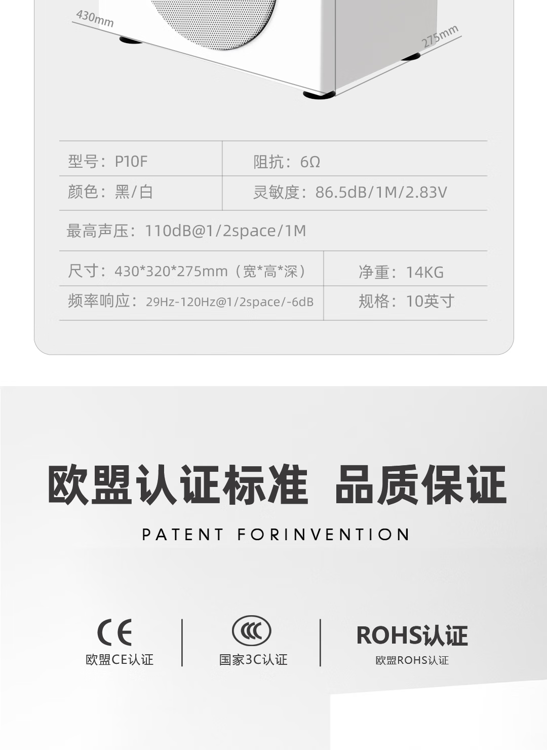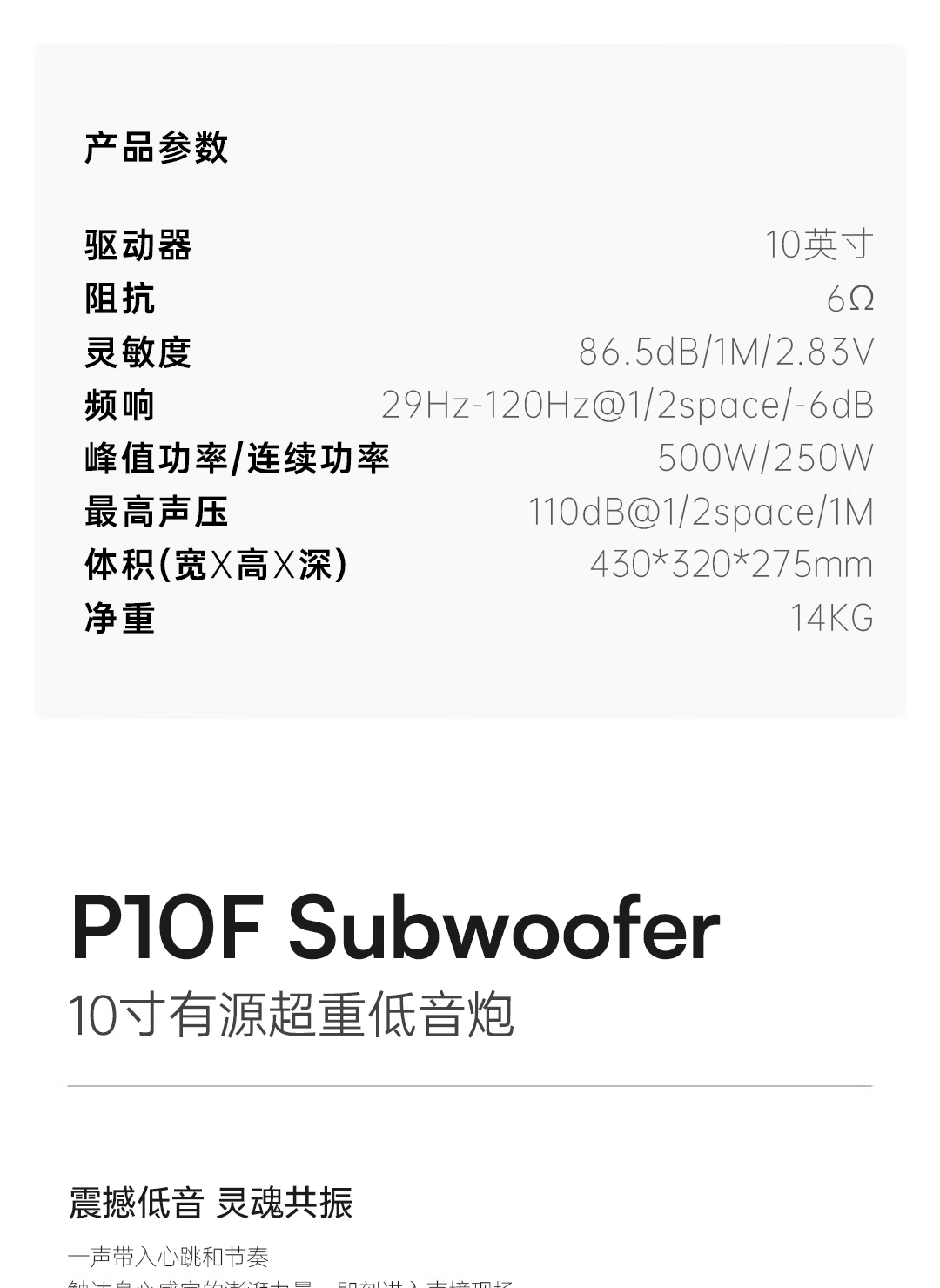Weilisheng P8F/P10F active super-sensing subwoofer speaker for home home theater K entertainment high-power subwoofer P10F-white