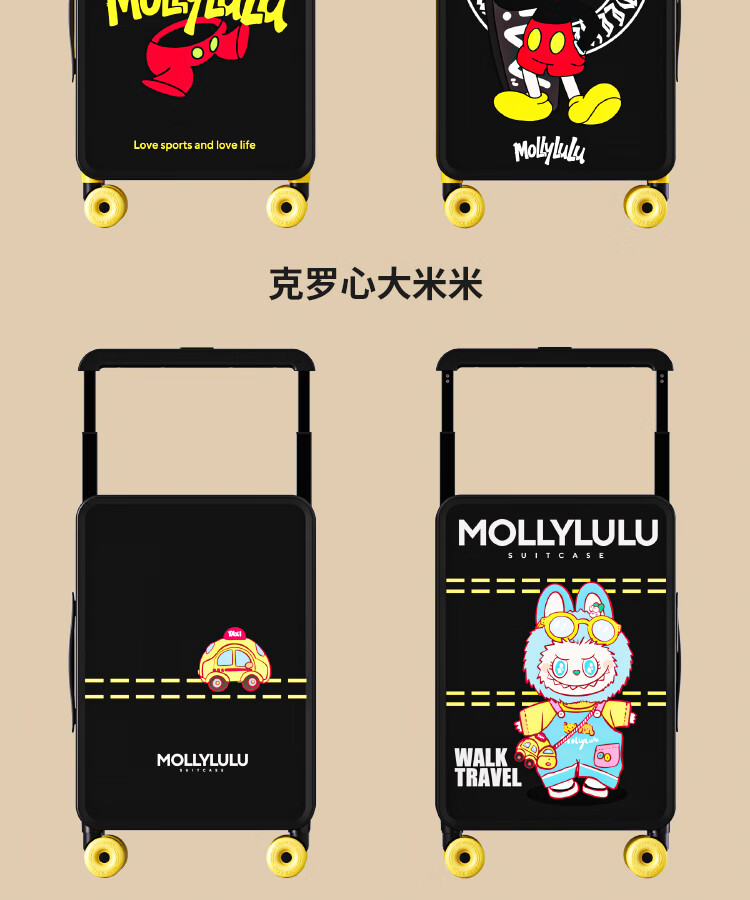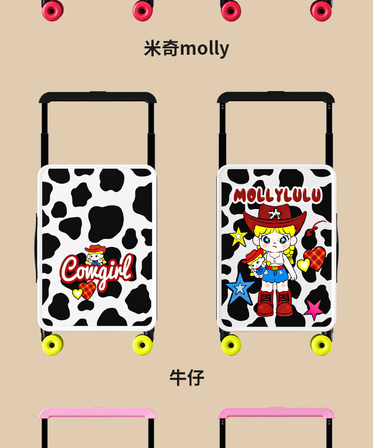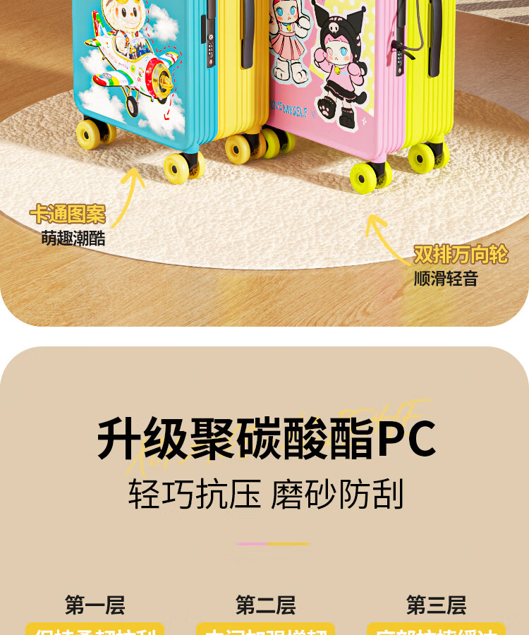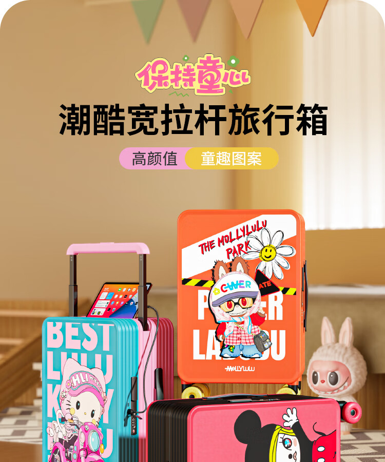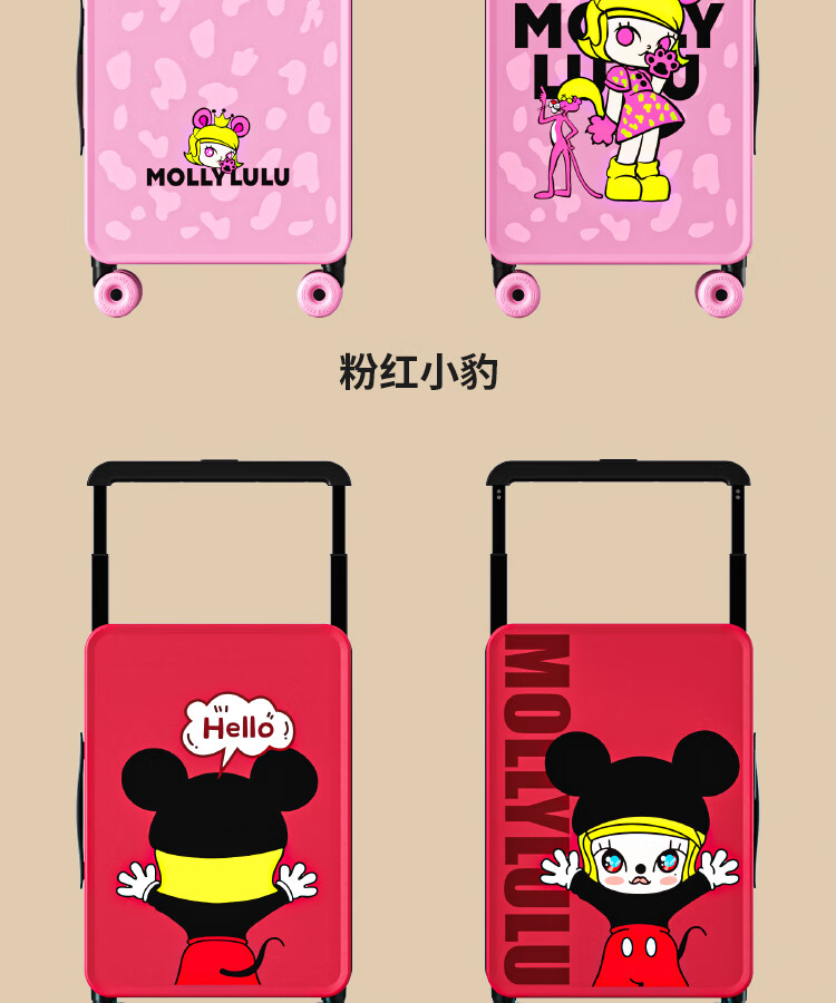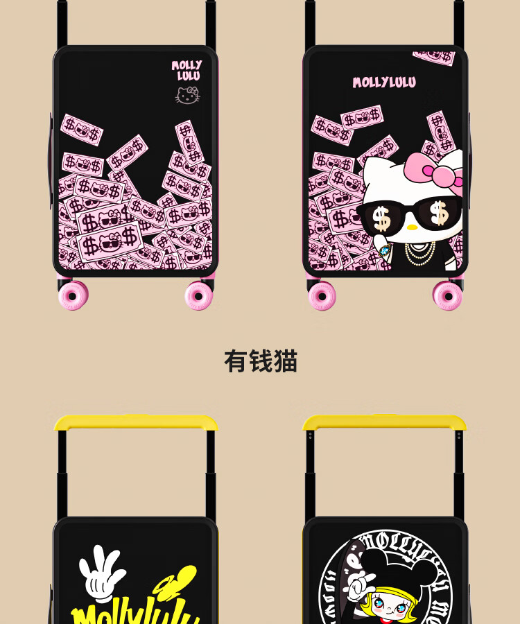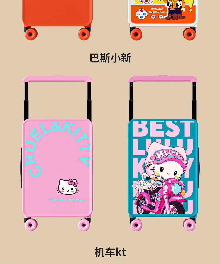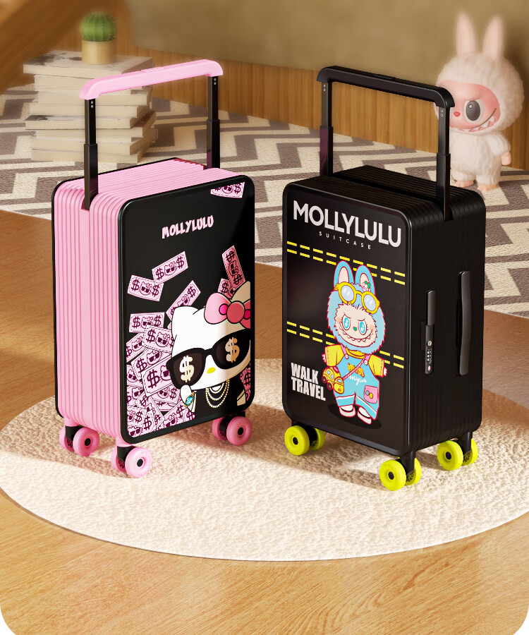 Bamboo mink suitcase with wide trolley cartoon pull trolley suitcase women's high-looking boarding code box large capacity suitcase Motorcycle KT-trendy high-end series 20 inches - boarding suitcase/short-distance/business trip