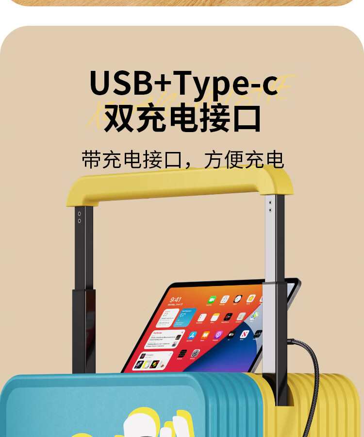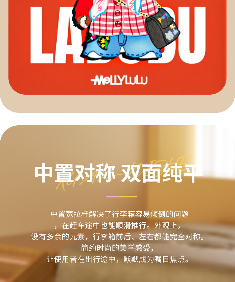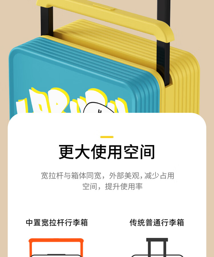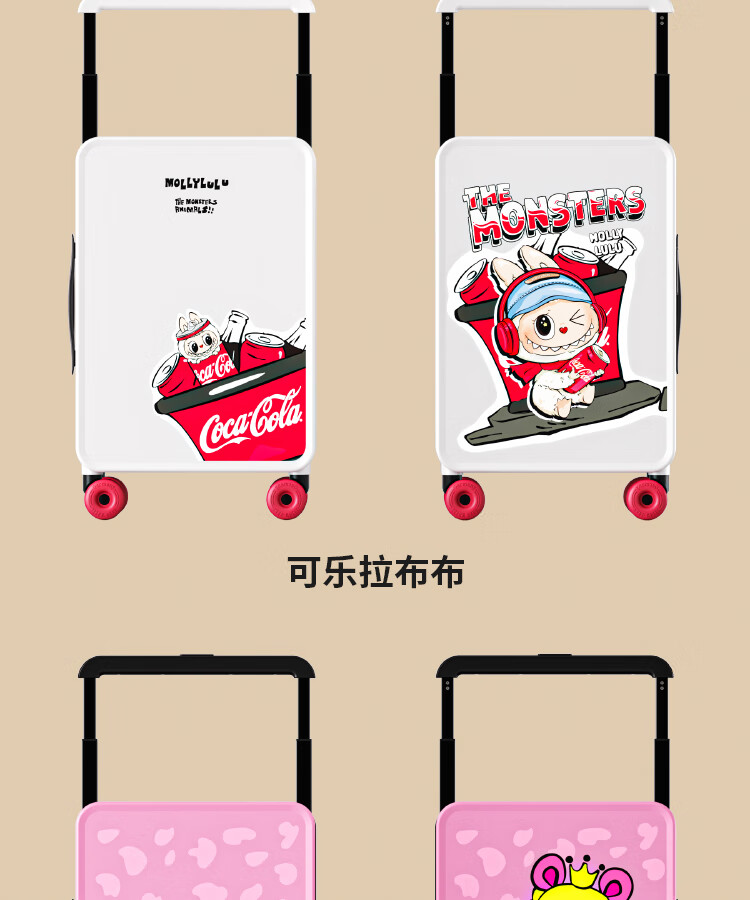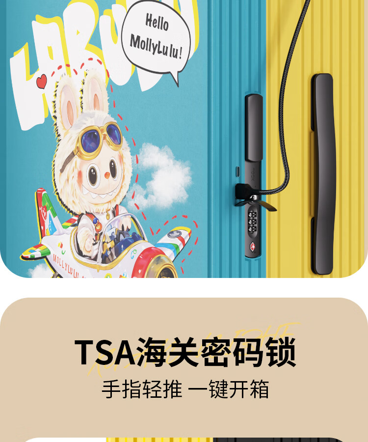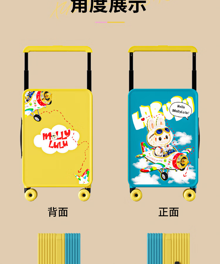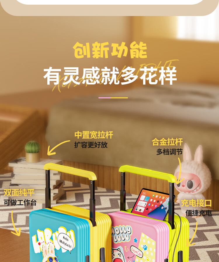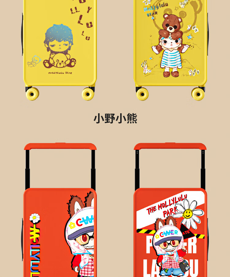Bamboo mink suitcase with wide trolley cartoon pull trolley suitcase women's high-looking boarding code box large capacity suitcase Motorcycle KT-trendy high-end series 20 inches - boarding suitcase/short-distance/business trip