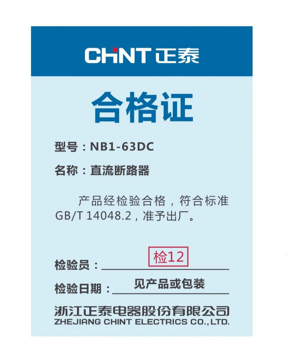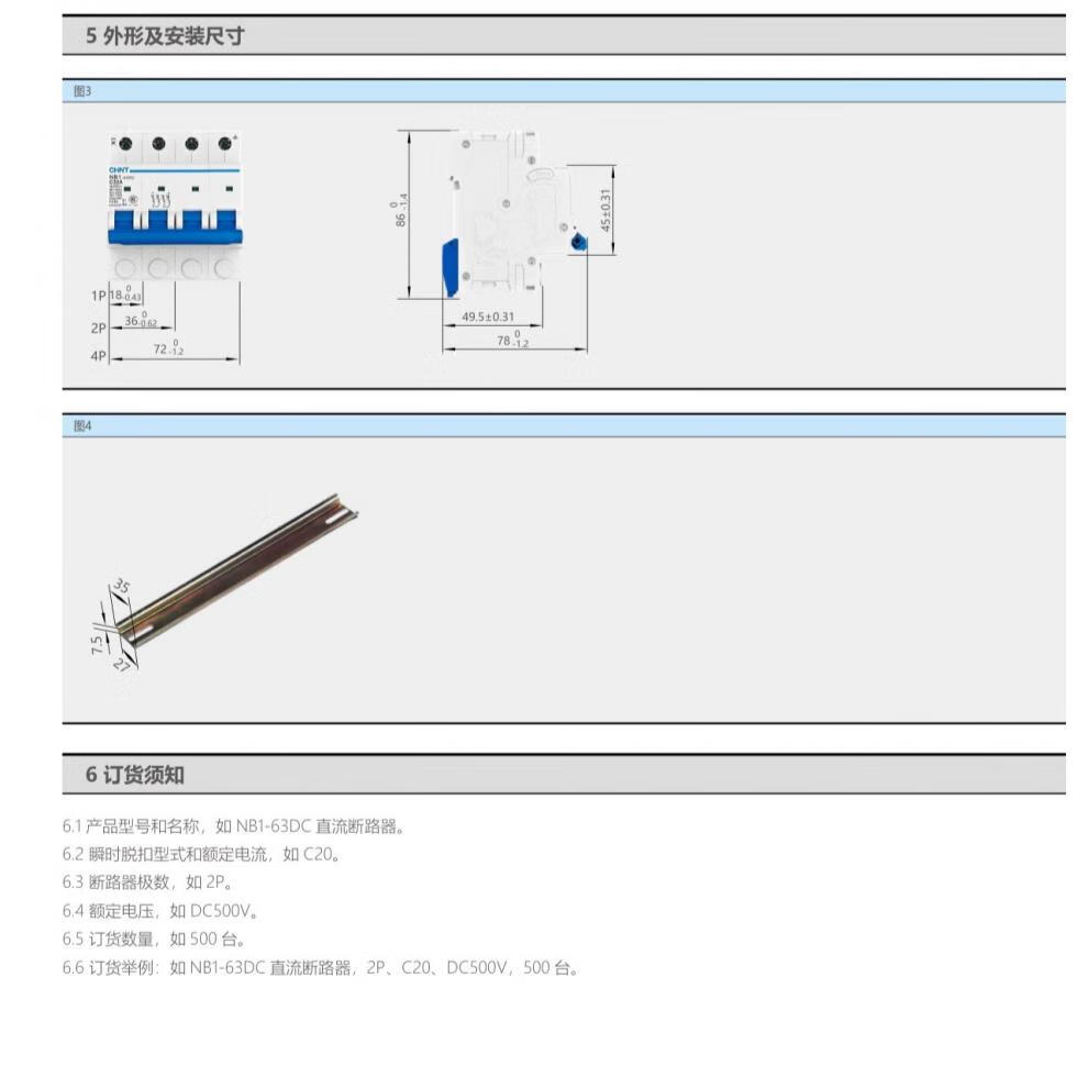 Chint DC circuit breaker NB1-63DC DC circuit breaker 1P 2P 4P photovoltaic dedicated DC500V 1000V 2PDC500V 32A