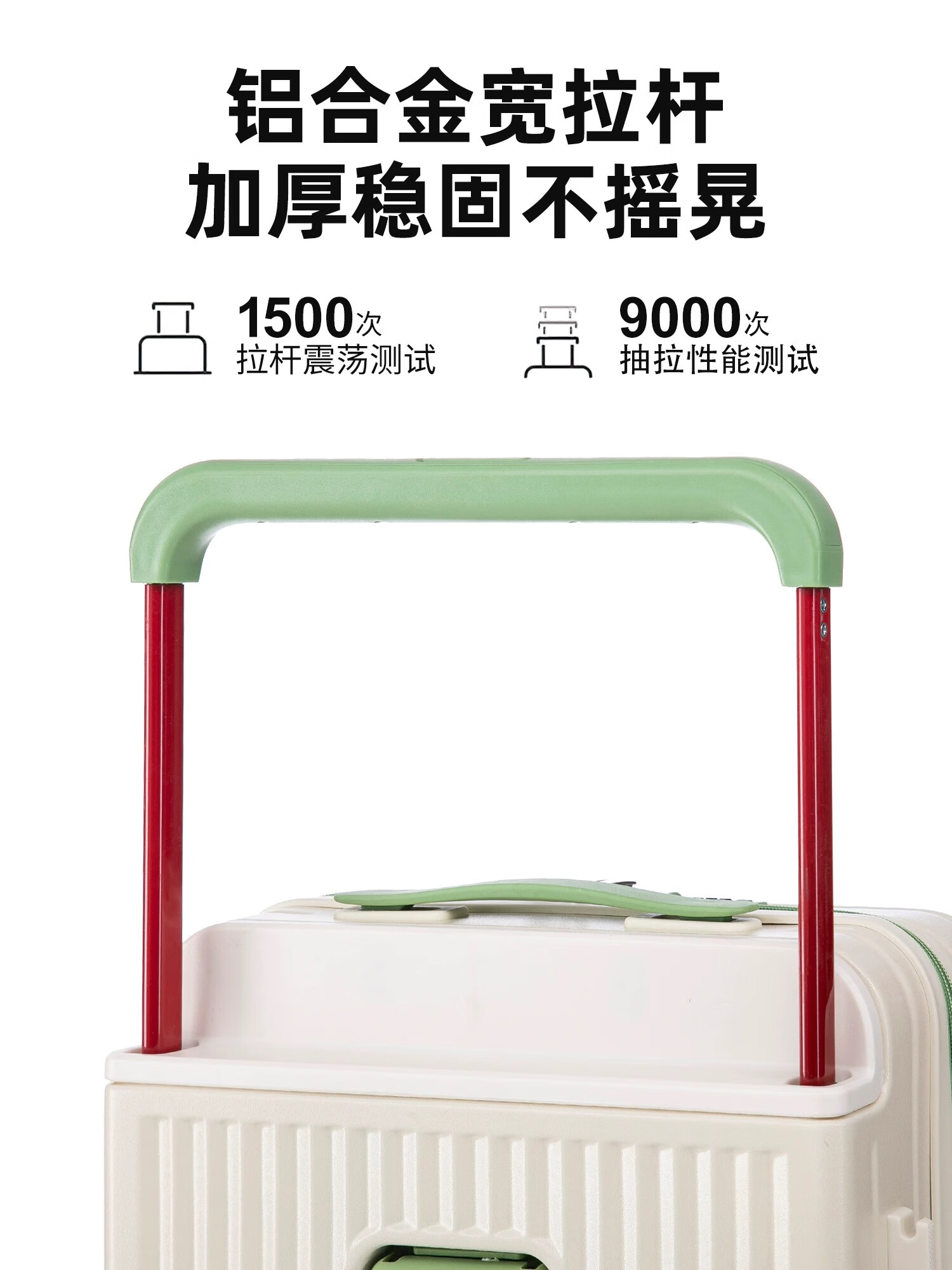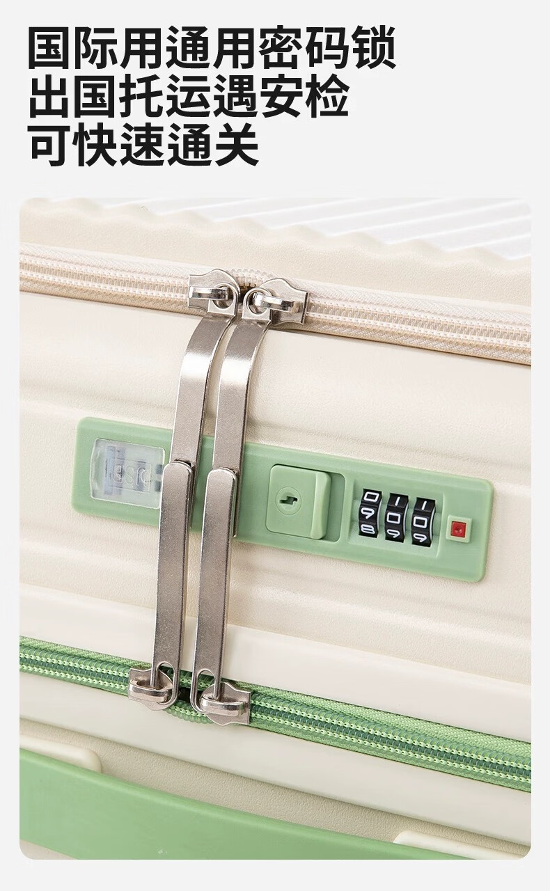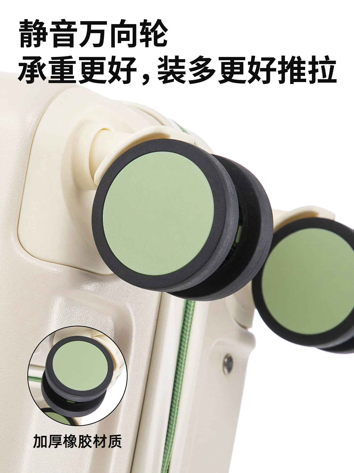 Boarding suitcase 2026 new student side opening wide trolley travel male and female boarding password box trolley suitcase off-white with green 20 inches