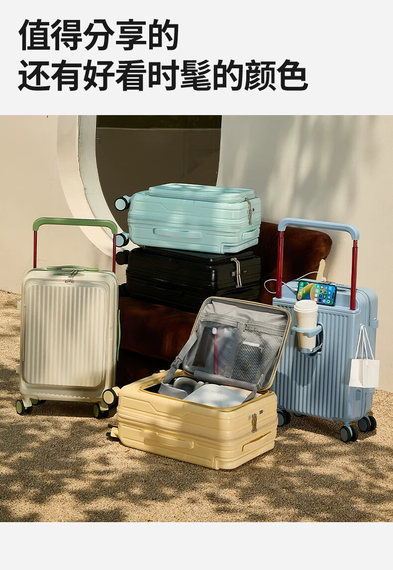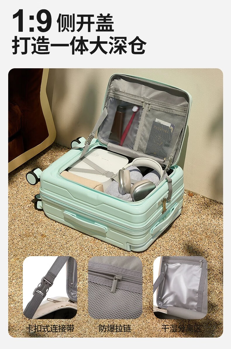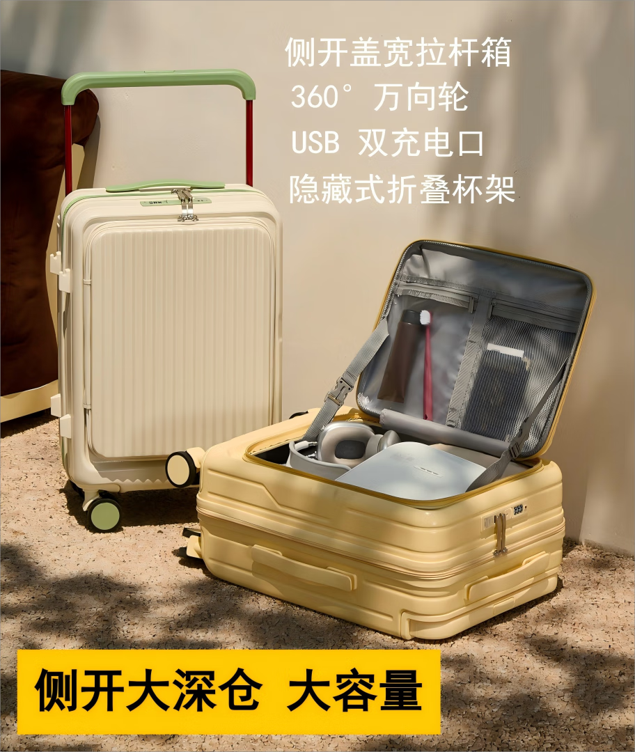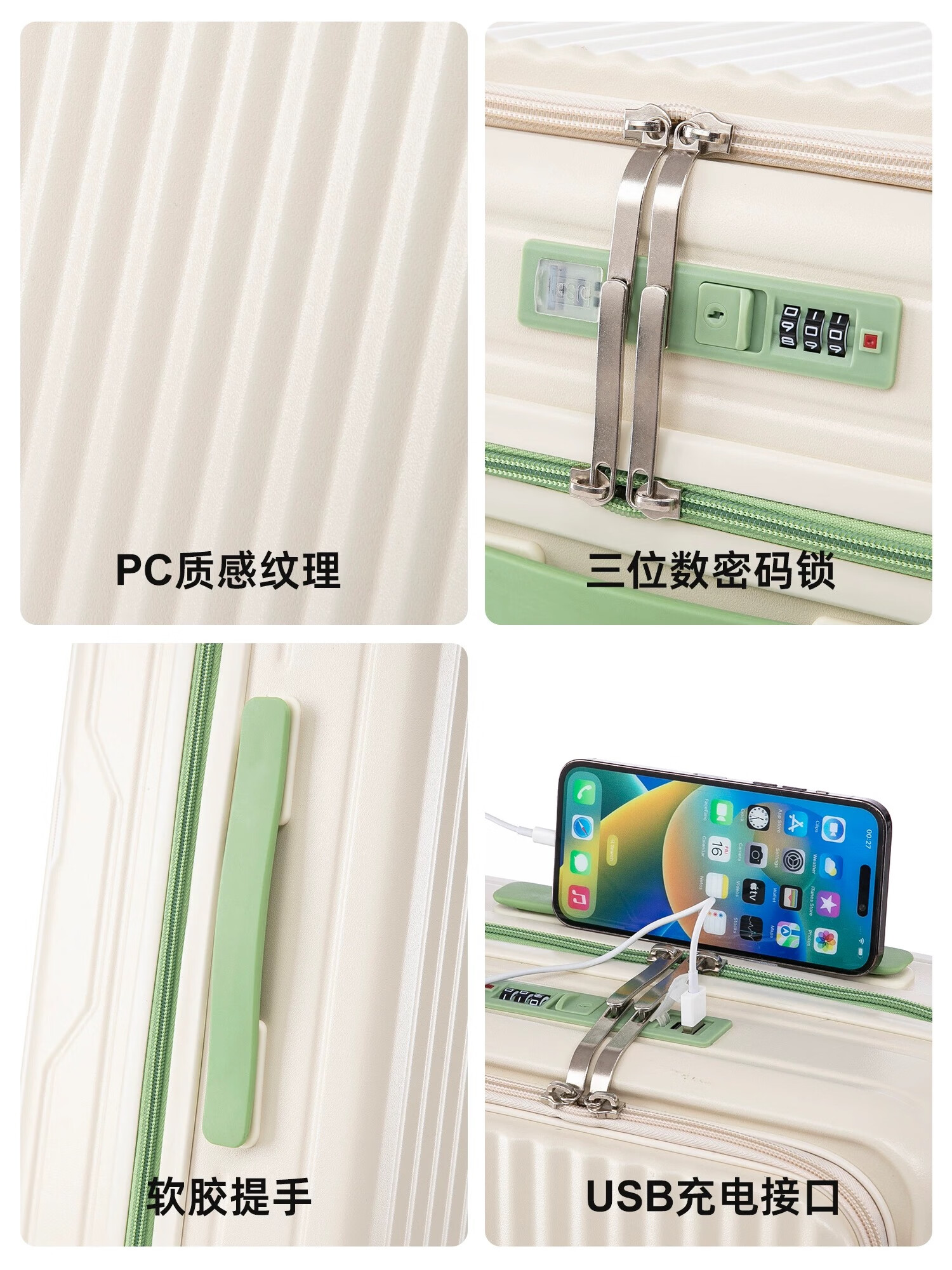 Boarding suitcase 2026 new student side opening wide trolley travel male and female boarding password box trolley suitcase off-white with green 20 inches