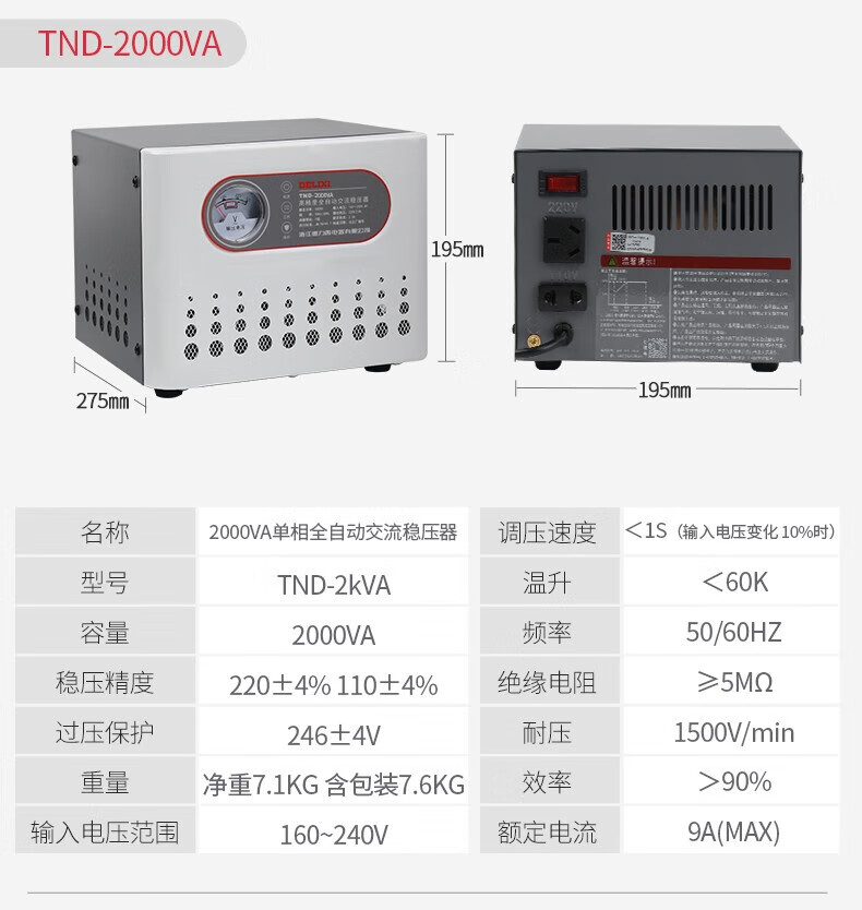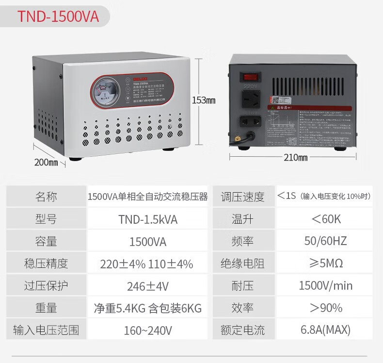 Delixi Electrical Voltage Regulator TND220V single-phase fully automatic regulated power supply 0.5KW (500VA)