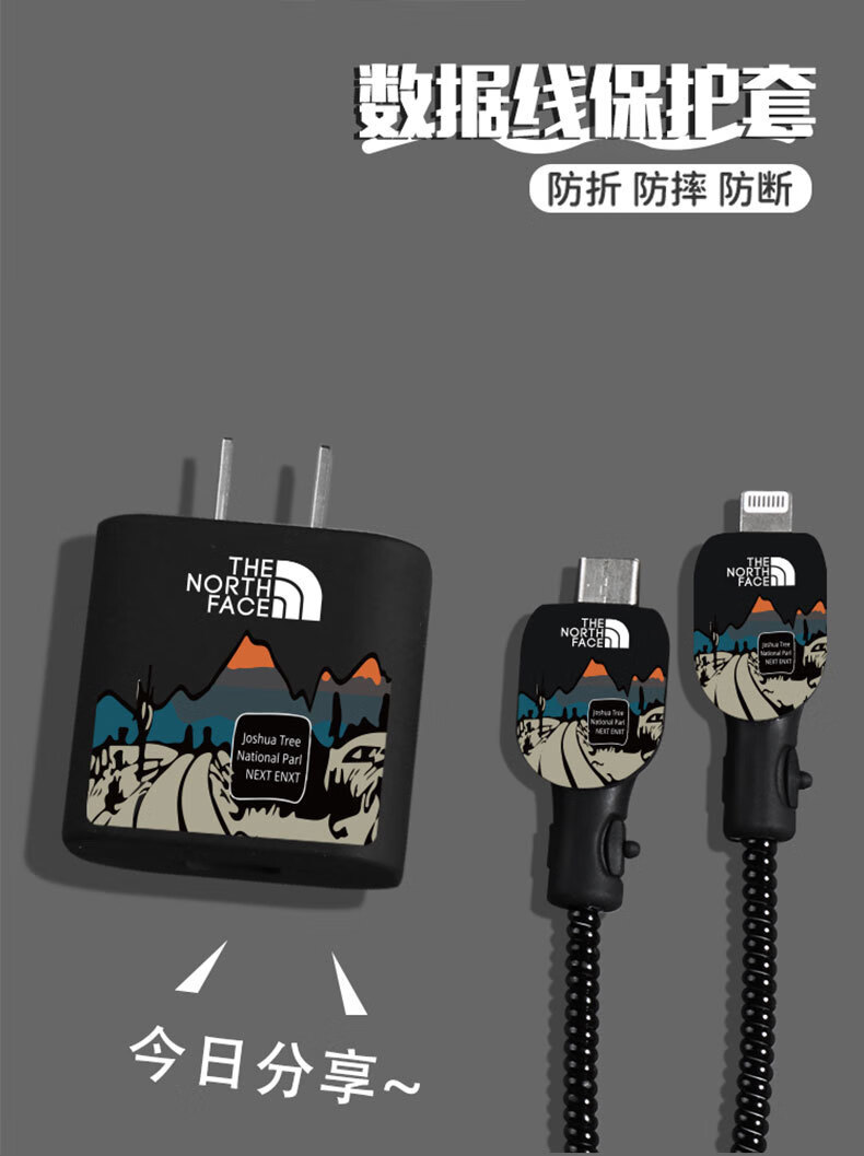 Umipa is suitable for Apple 16 data cable protective cover 20w13/14 charger protective cover iPhone15pro anti-break Apple 20w protective cover printing black back 1.6 meters winding cable