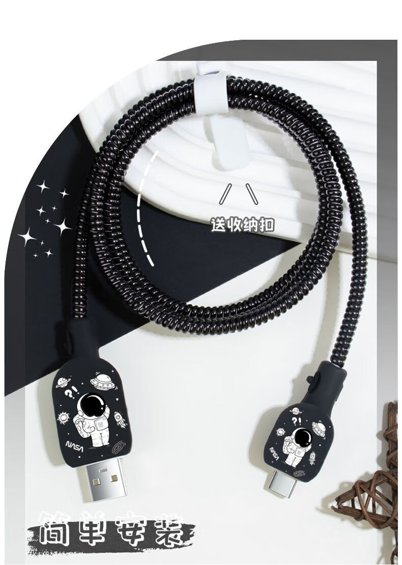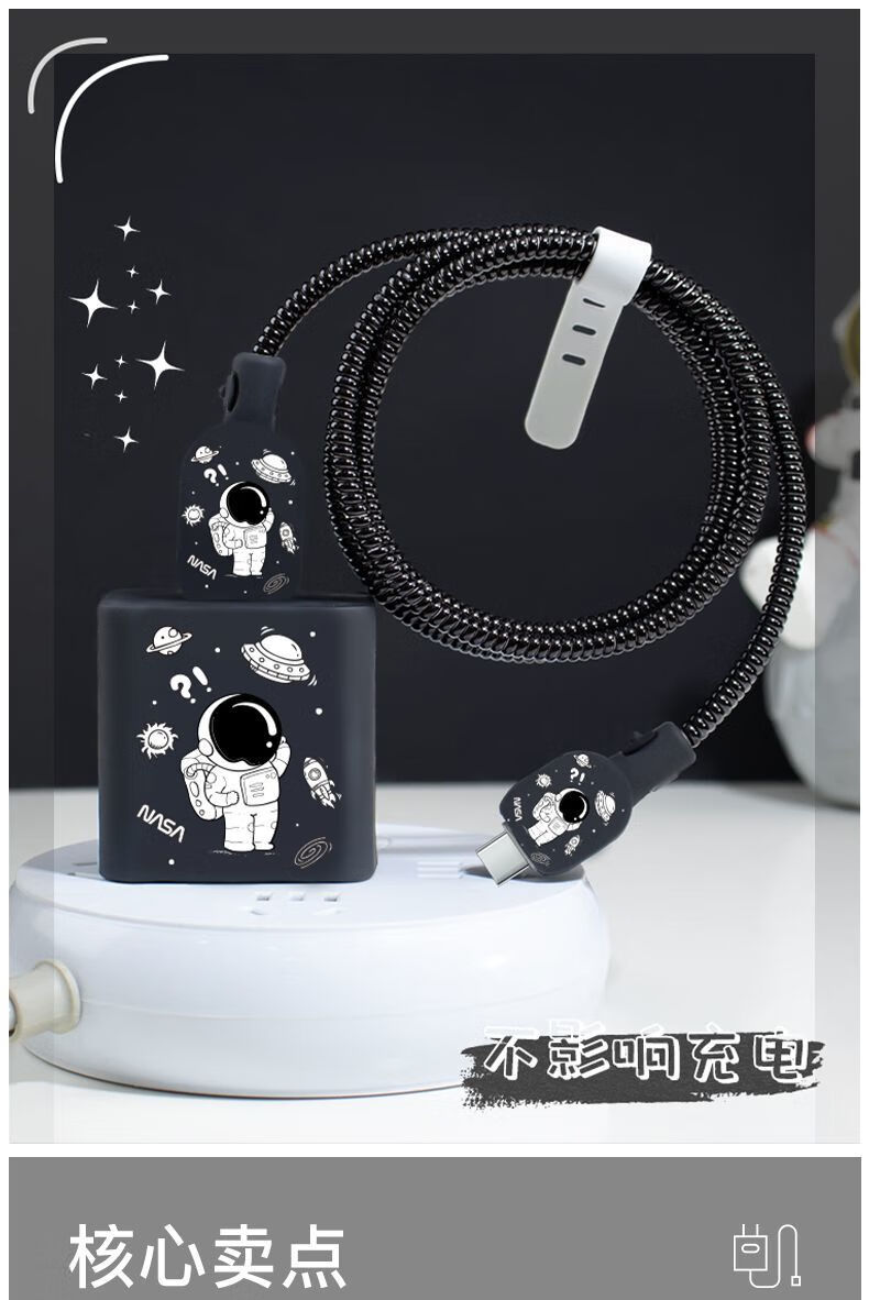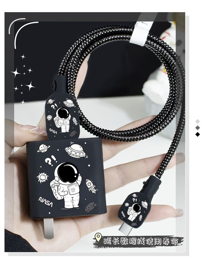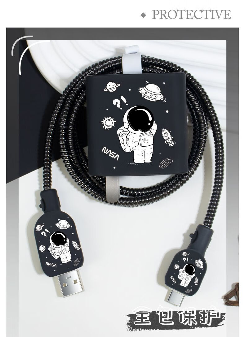Umipa is suitable for Huawei 100W fast charging head data cable cover Magic4 charger Honor 70pro protective cover mobile phone case Huawei 100w protective cover printed version black astronaut 1.6 meters winding cable