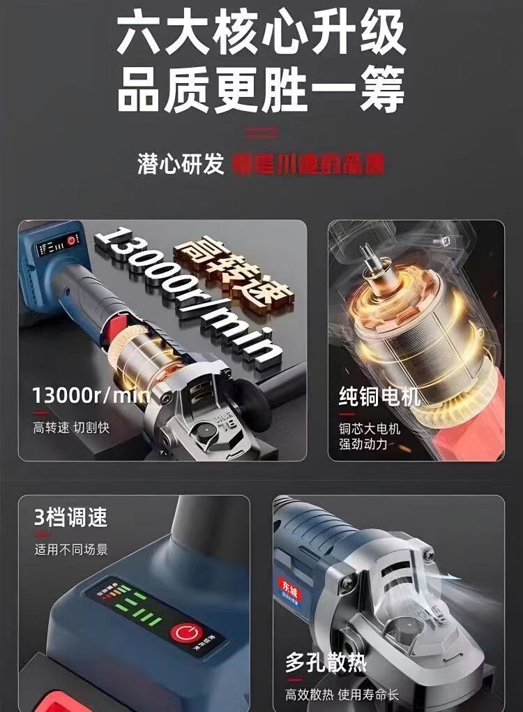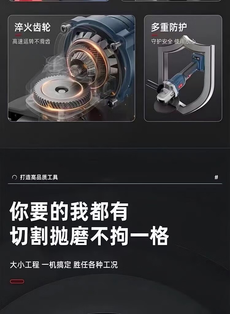 Angle grinder mechanism electric high-power brushless rechargeable lithium battery cutting machine multi-function polishing machine polishing machine pure copper brushless 8.0AH 2 batteries 1 charge complete set