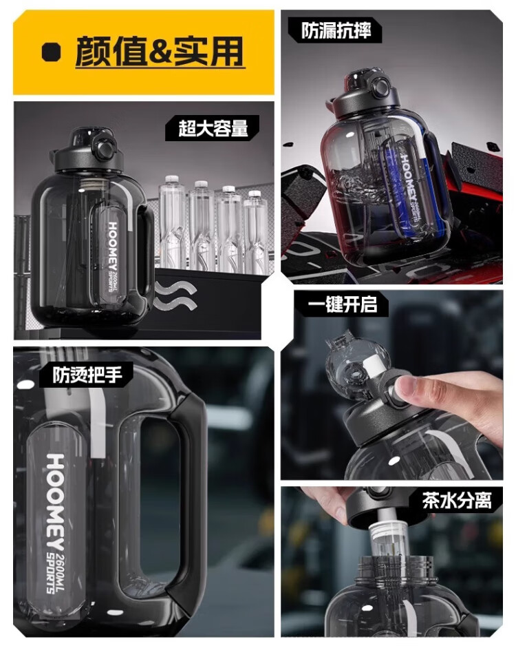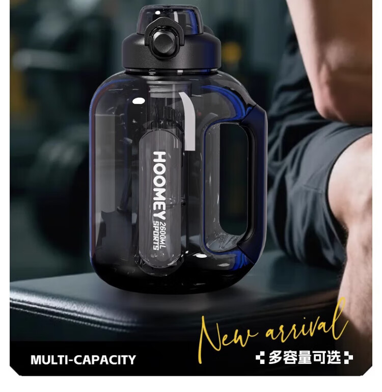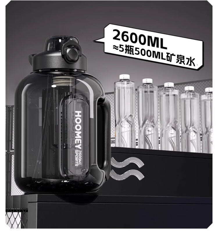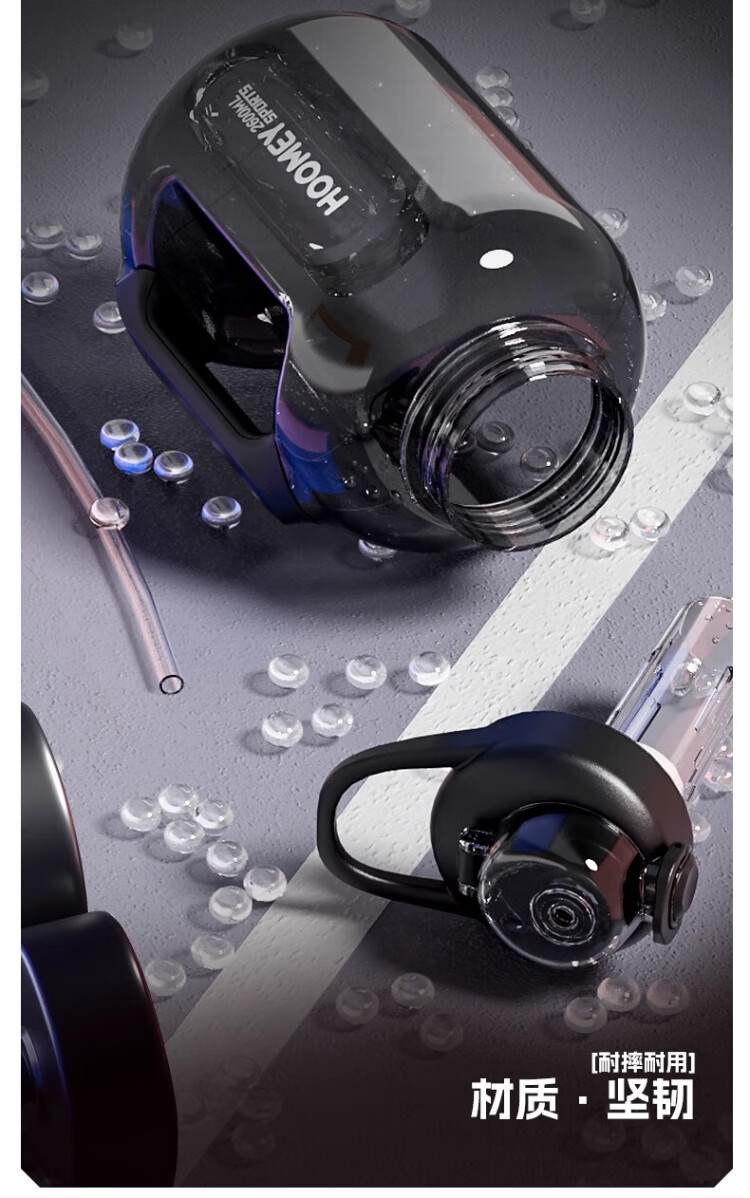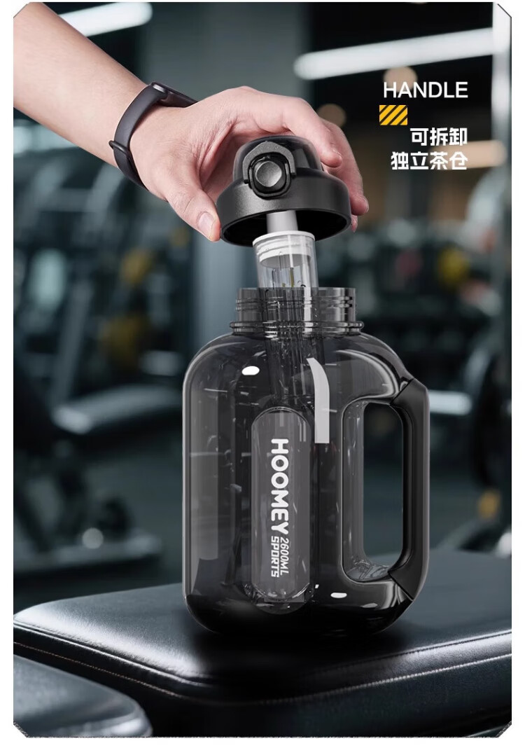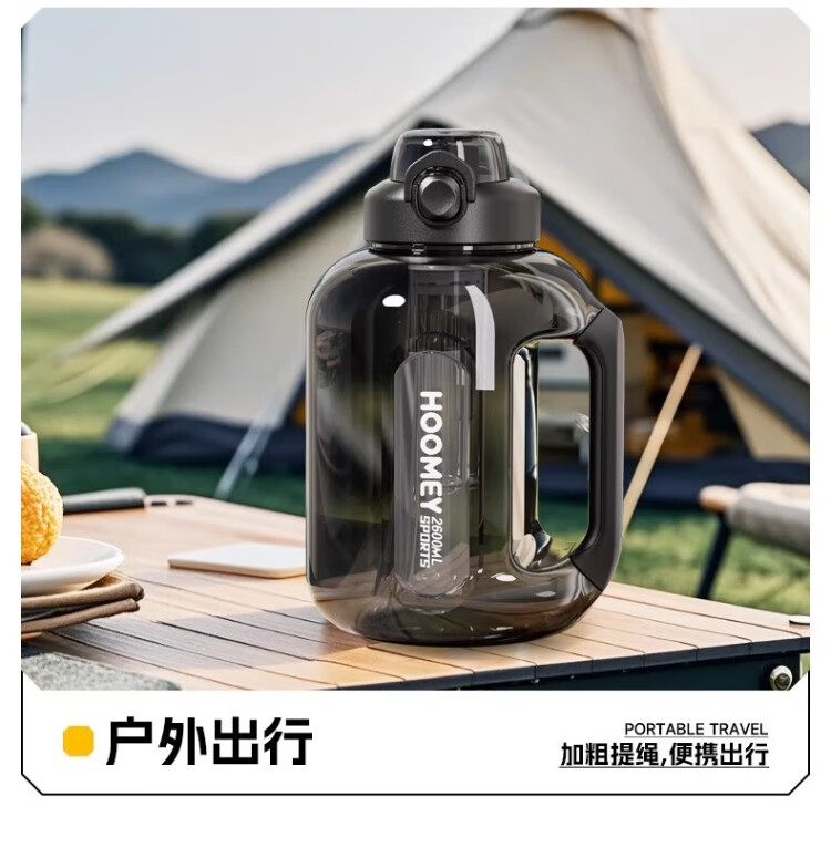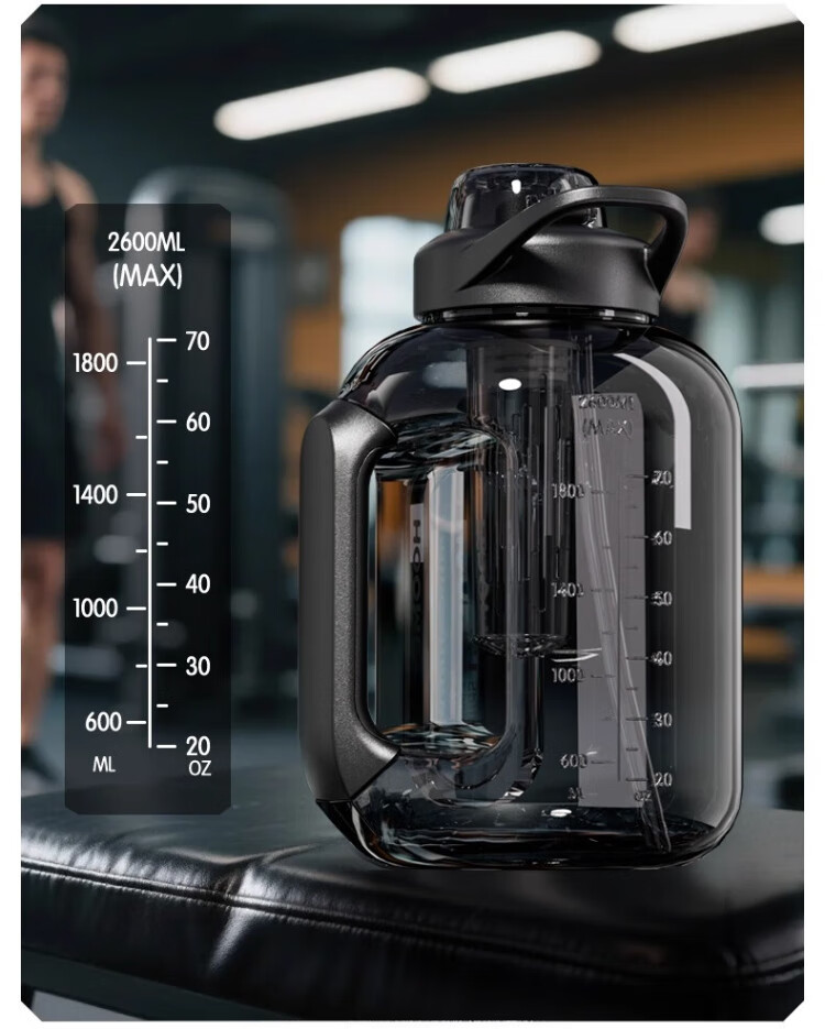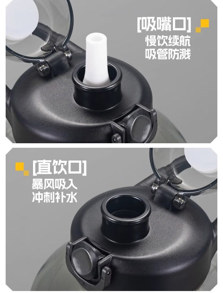 Dear large capacity tritan pot belly cup kettle for men and women straw sports water cup large plastic cup ton bucket black 1.8L (tritan can boil water straw tea warehouse