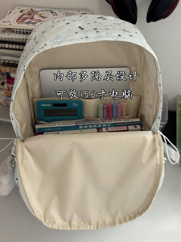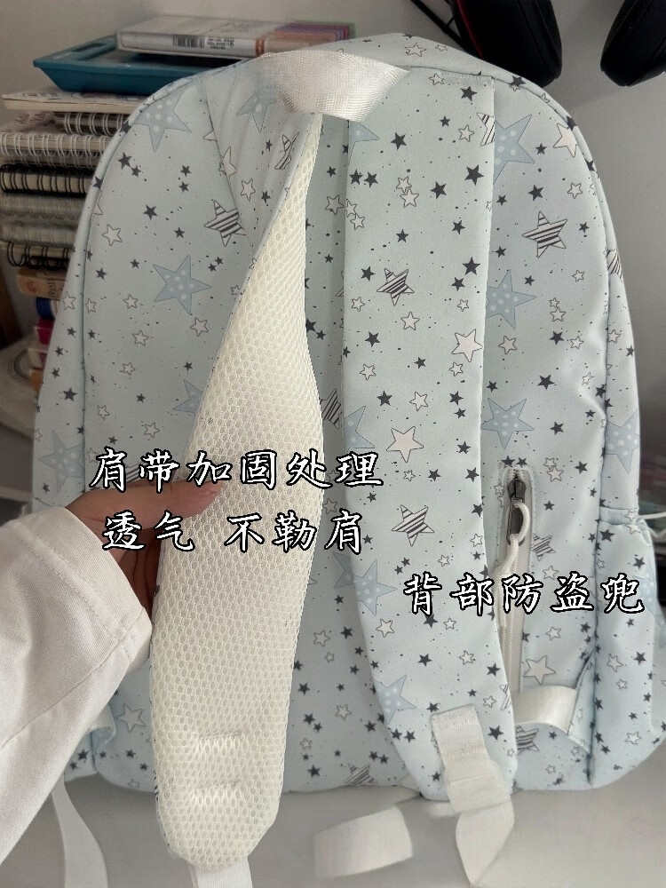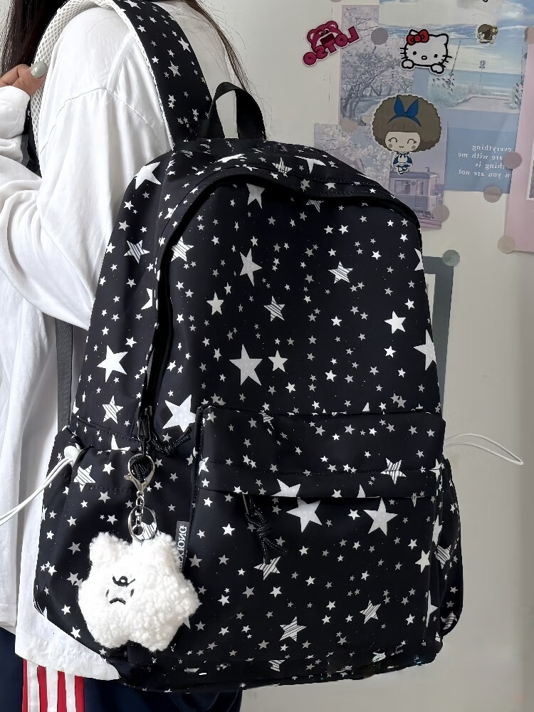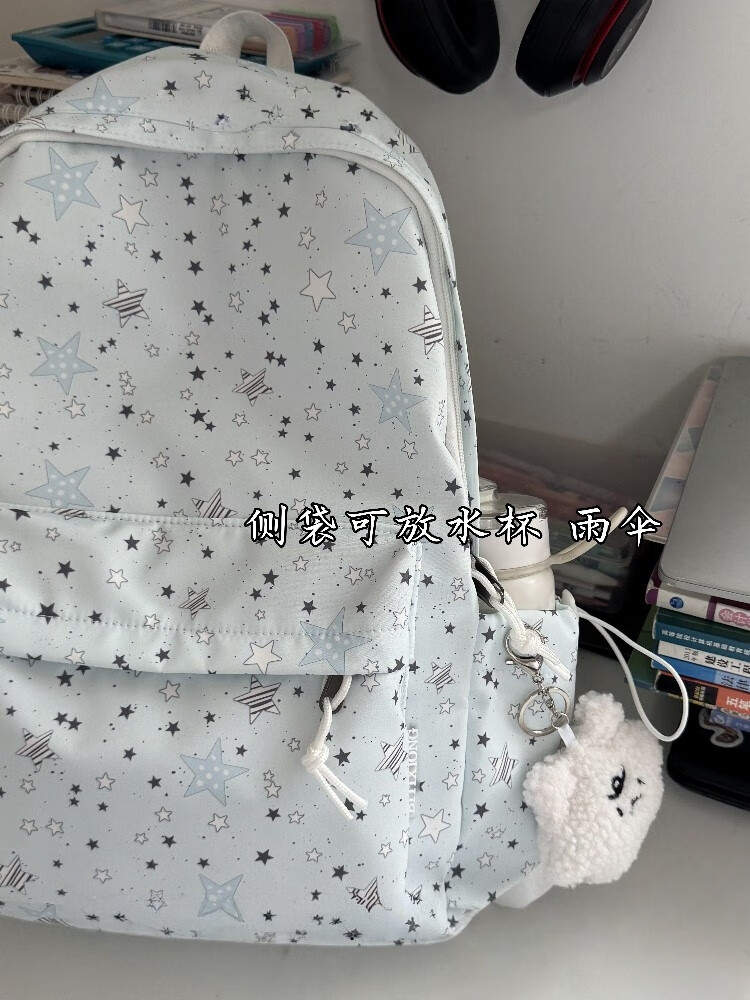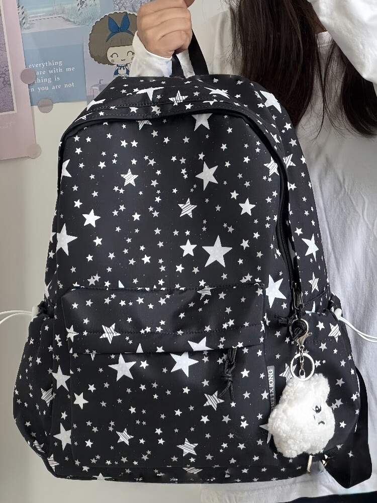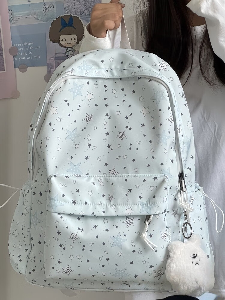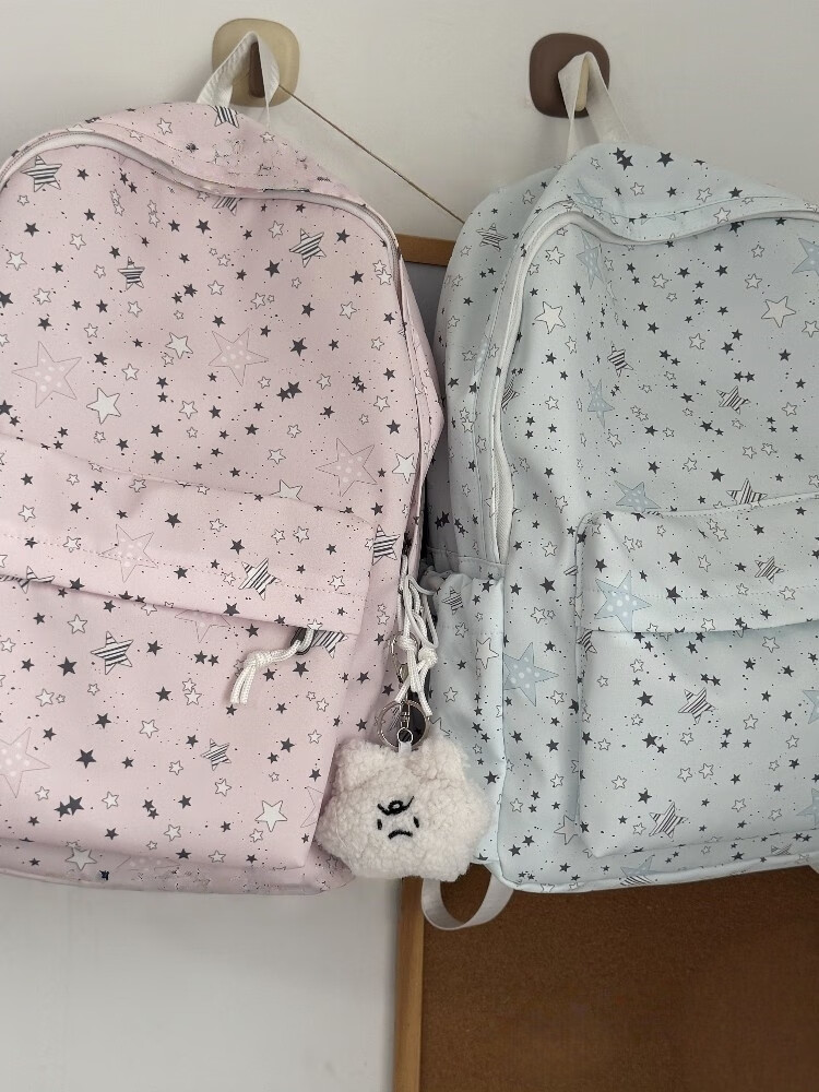 Zinke schoolbag, junior high school girl, high-looking star print, Korean style niche ins backpack, high school student computer bag, white (with fat cloud pendant)