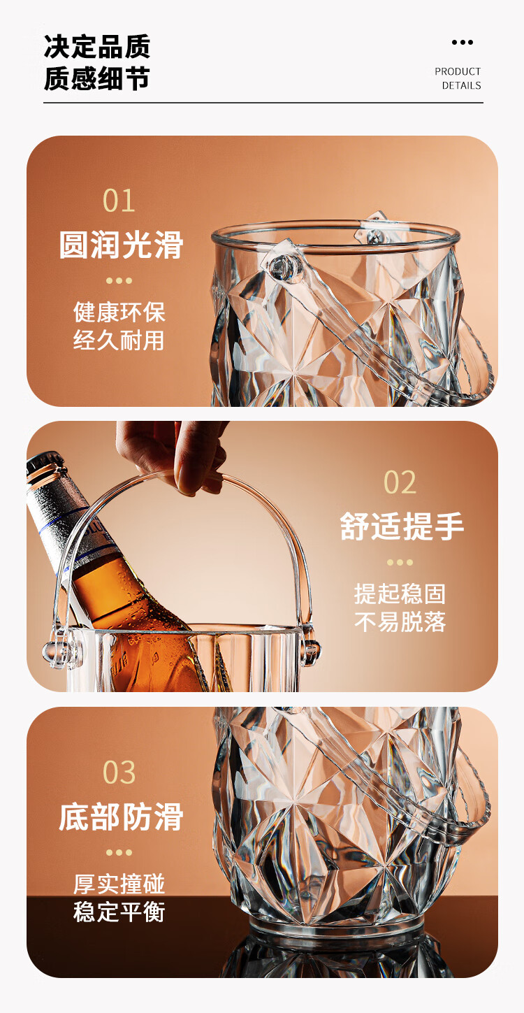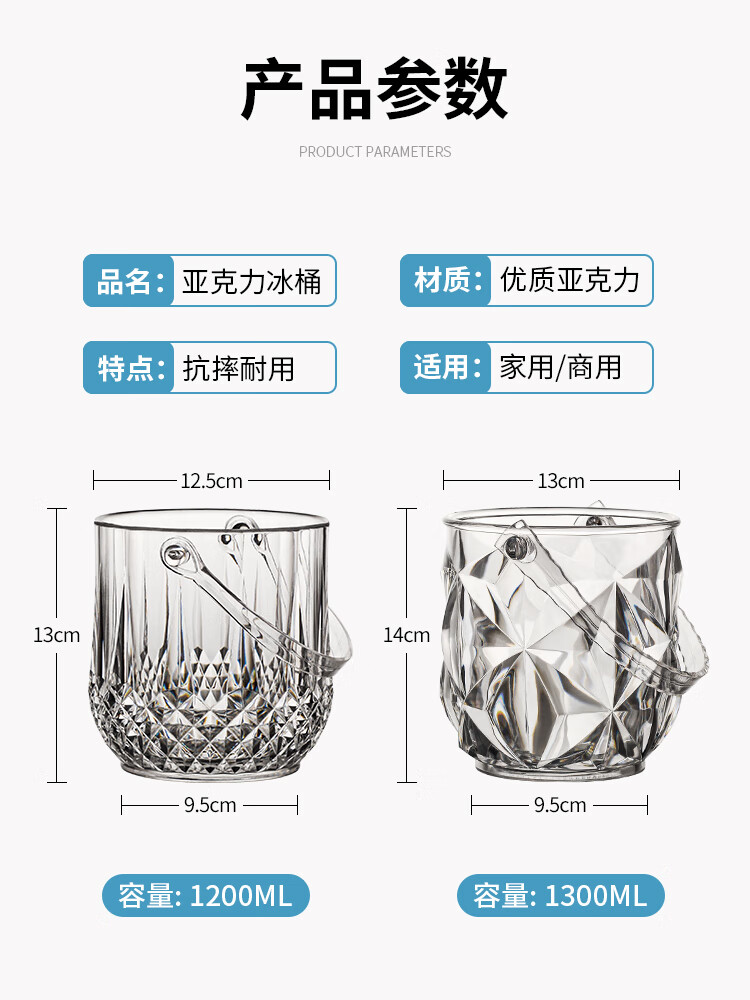 Zhifeng ice bucket bar ktv high-looking household commercial acrylic small ice bucket beer bucket ice bucket internet celebrity thickened ice bucket crystal model 1 + ice clip