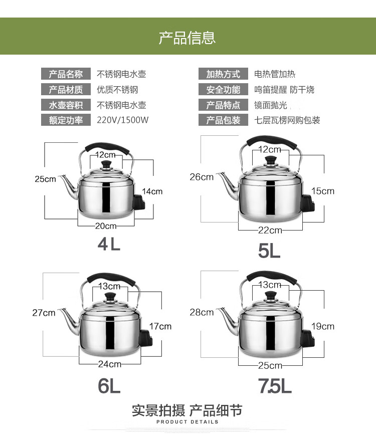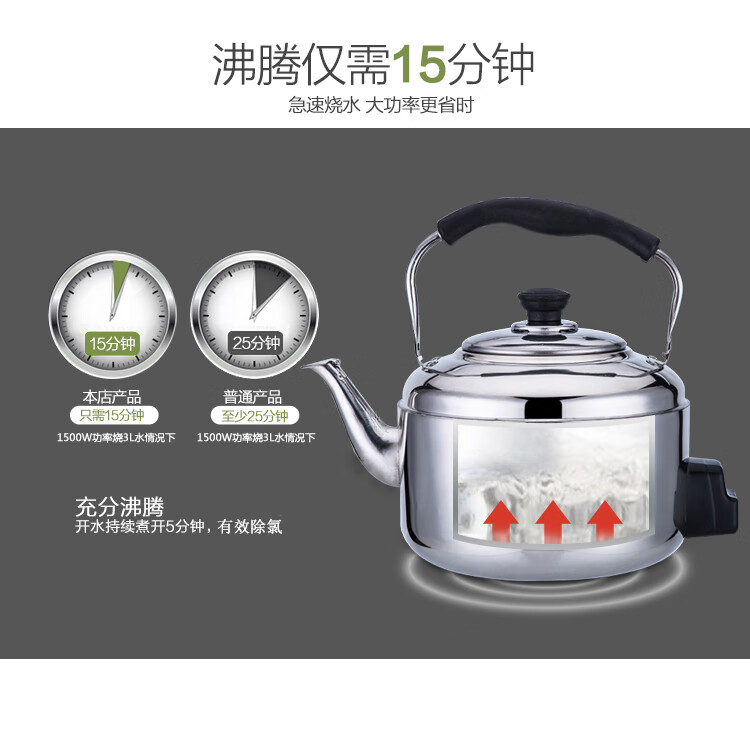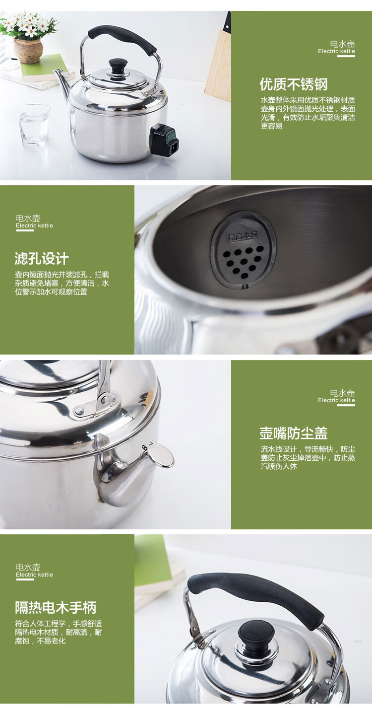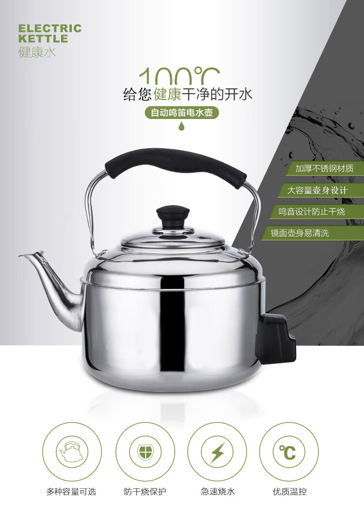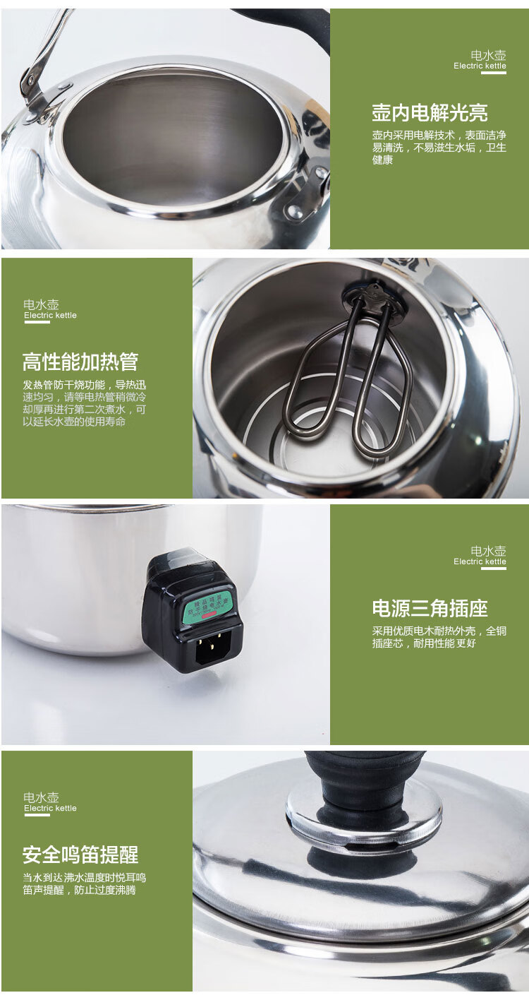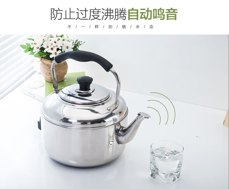 Fat Donglai's same model 304 stainless steel electric kettle large capacity anti-dry boiling kettle electric kettle whistle electric tea kettle 4L-10 liters extra thick (95CN wire 6L