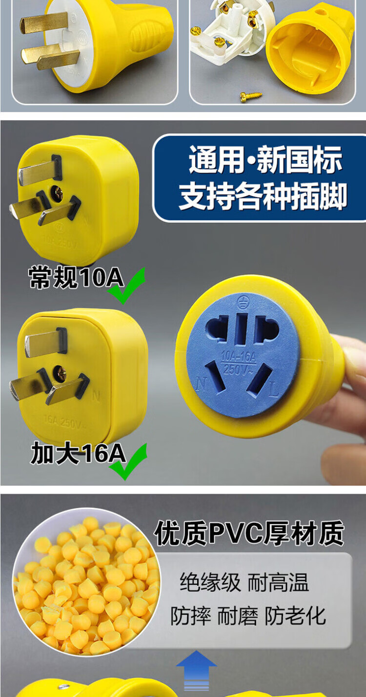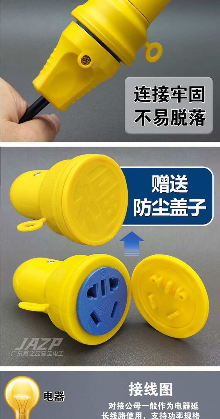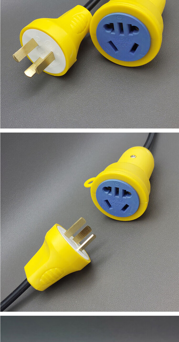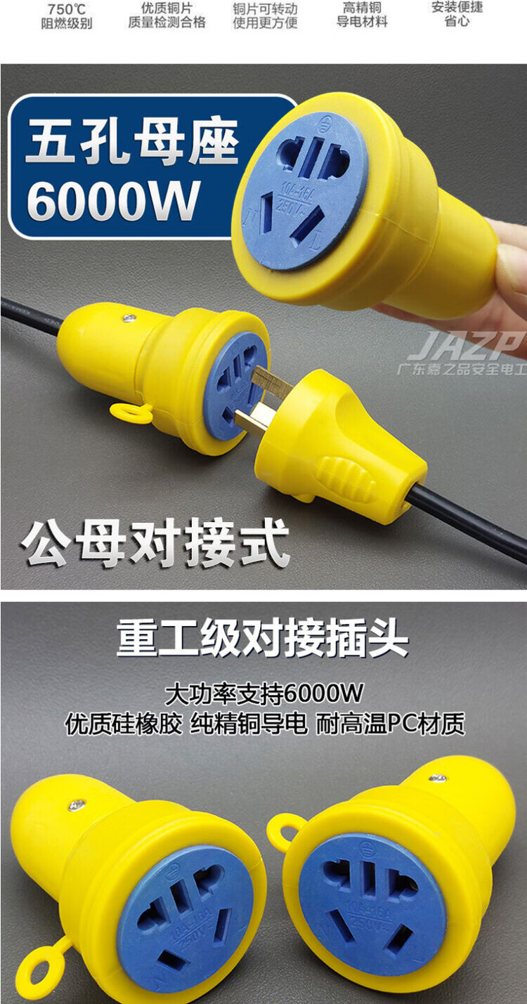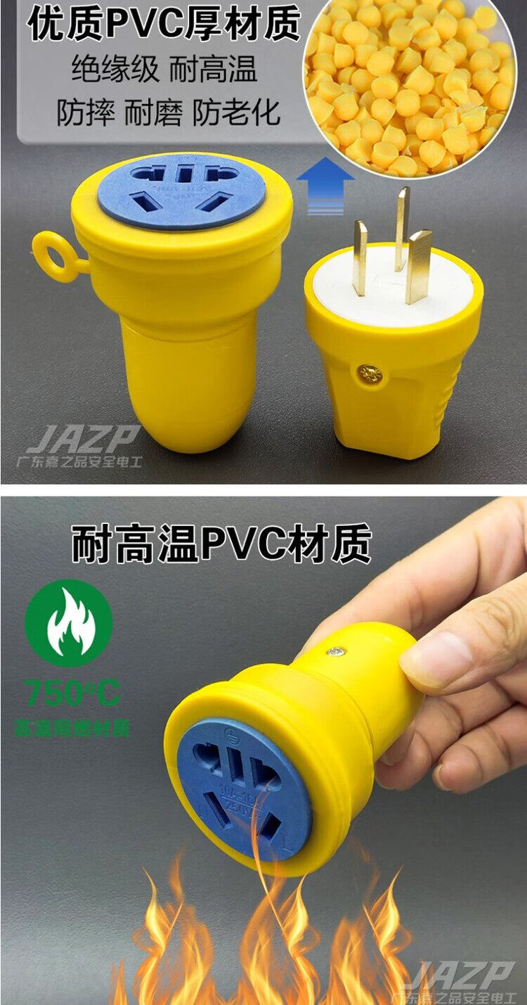 Quick connector male and female socket positive 6000W three-pin plug 16A three-hole female plug butt assembly plug extension cord plastic coated + pure copper + high power 16A universal female head one
