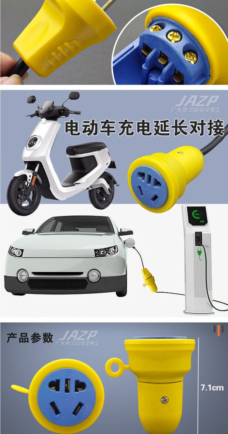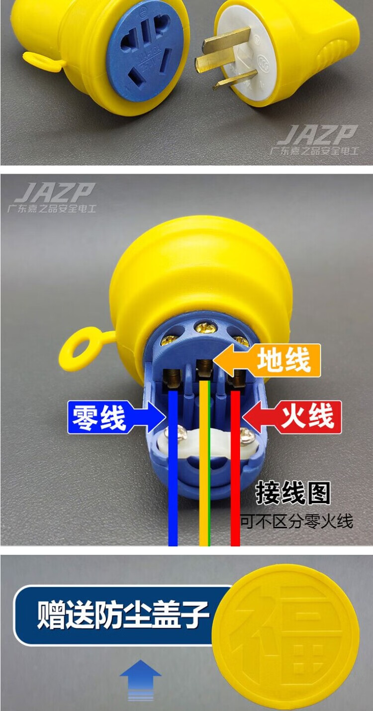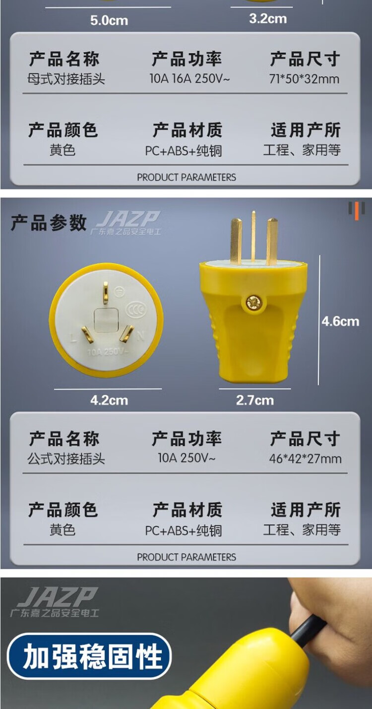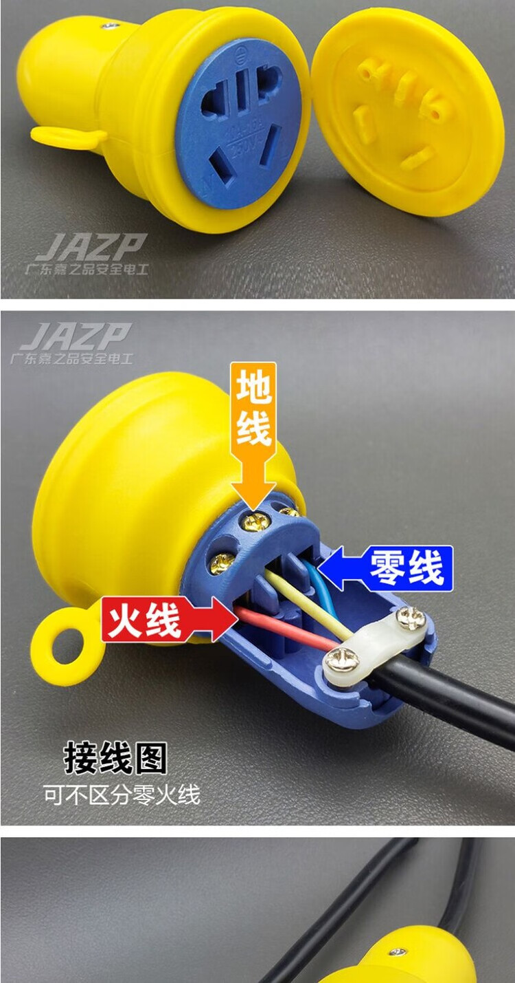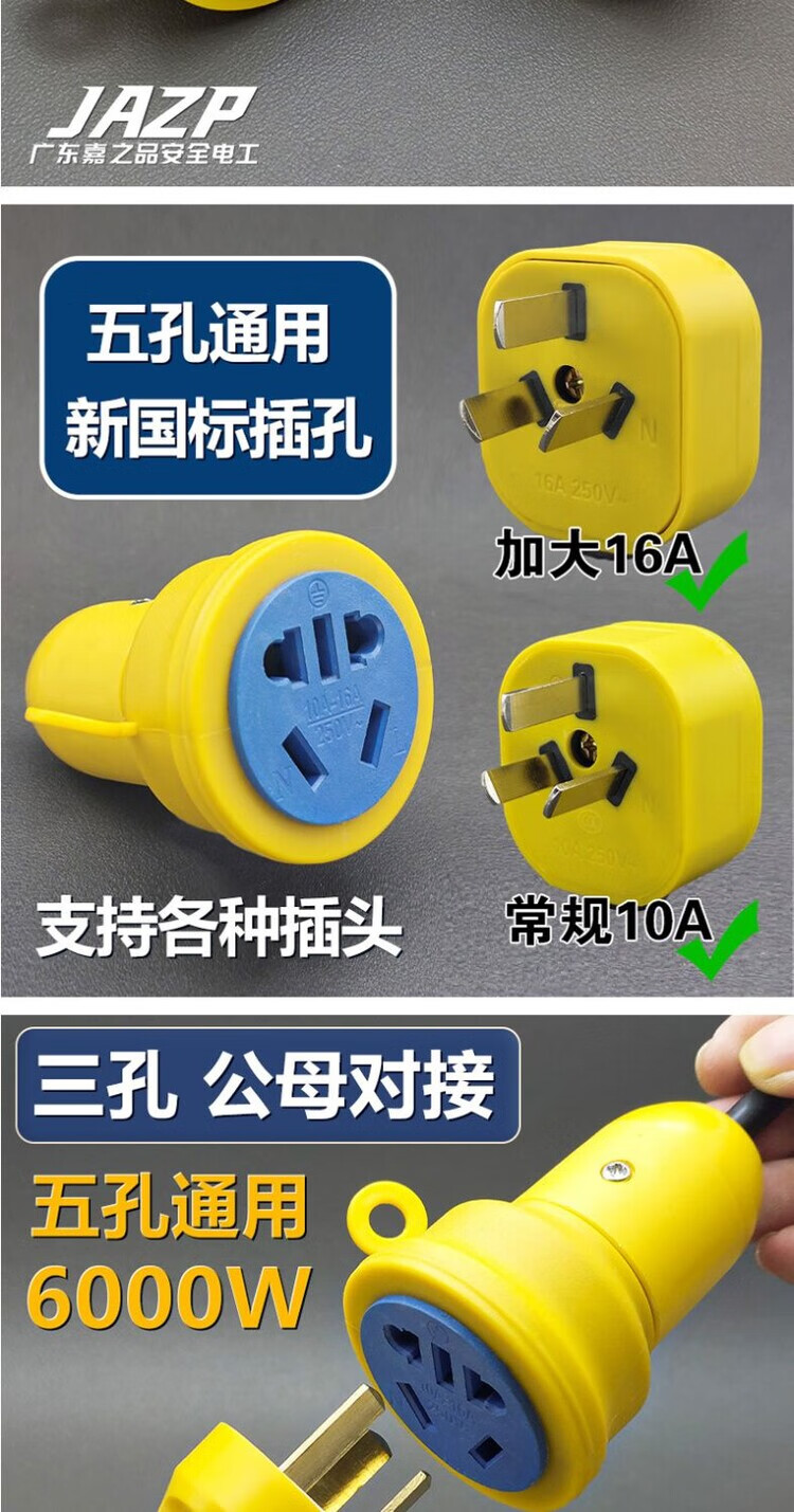 Quick connector male and female socket positive 6000W three-pin plug 16A three-hole female plug butt assembly plug extension cord plastic coated + pure copper + high power 16A universal female head one