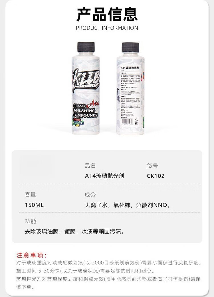 Klcb degreasing film car glass polishing powder upgrade oxidized oil film coating water stain slight scratch polishing liquid glass degreasing film agent 150ML +1 sponge wipe