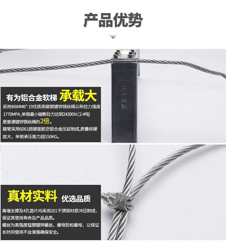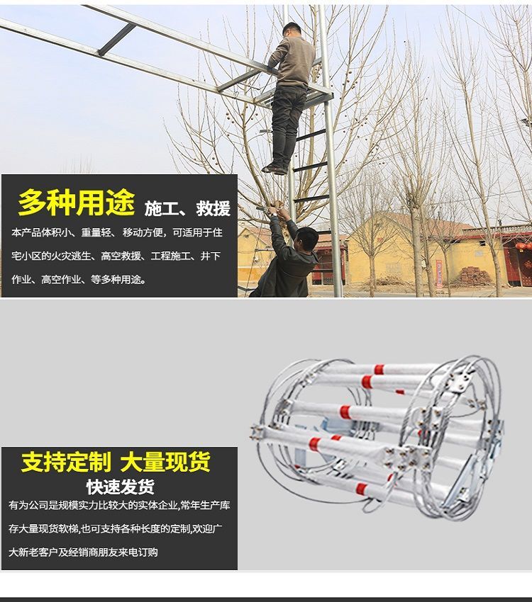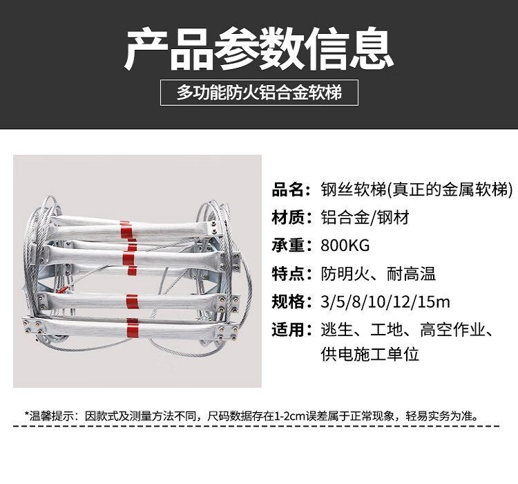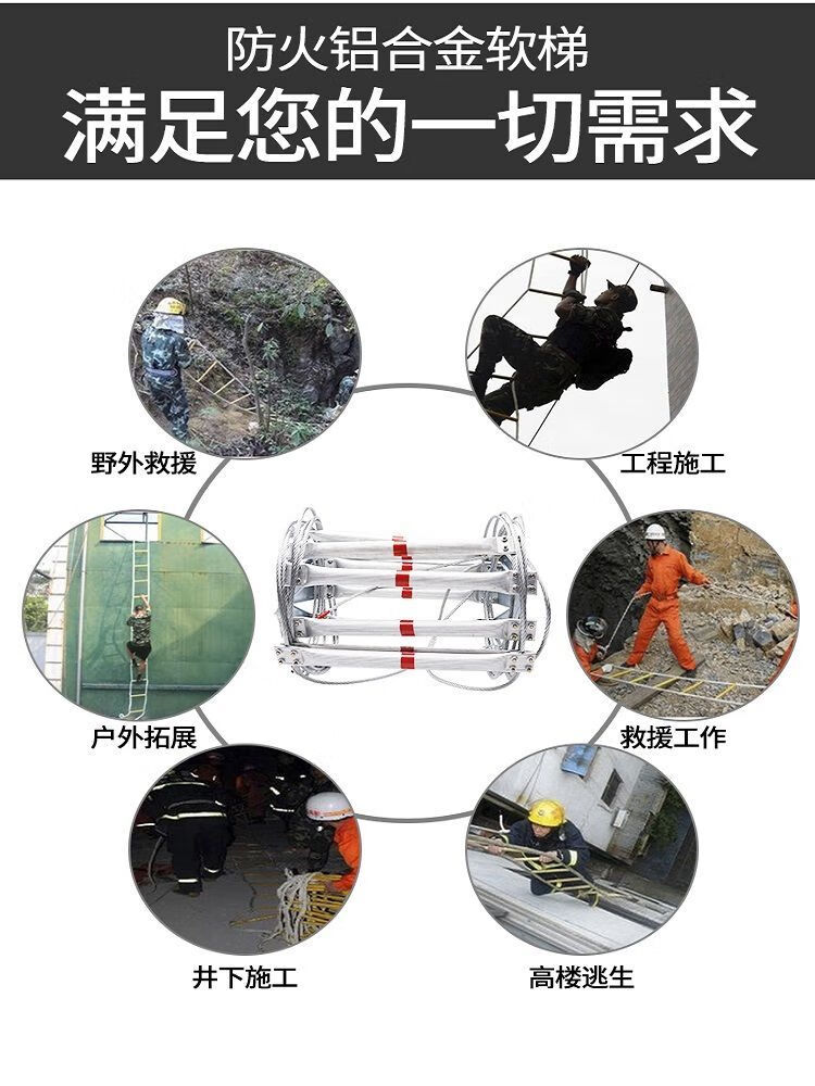 Soft ladder rope ladder fire escape ladder aluminum alloy household lifesaving ladder climbing ladder wire rope aluminum alloy step distance 30 cm soft ladder wall punch-free large hook